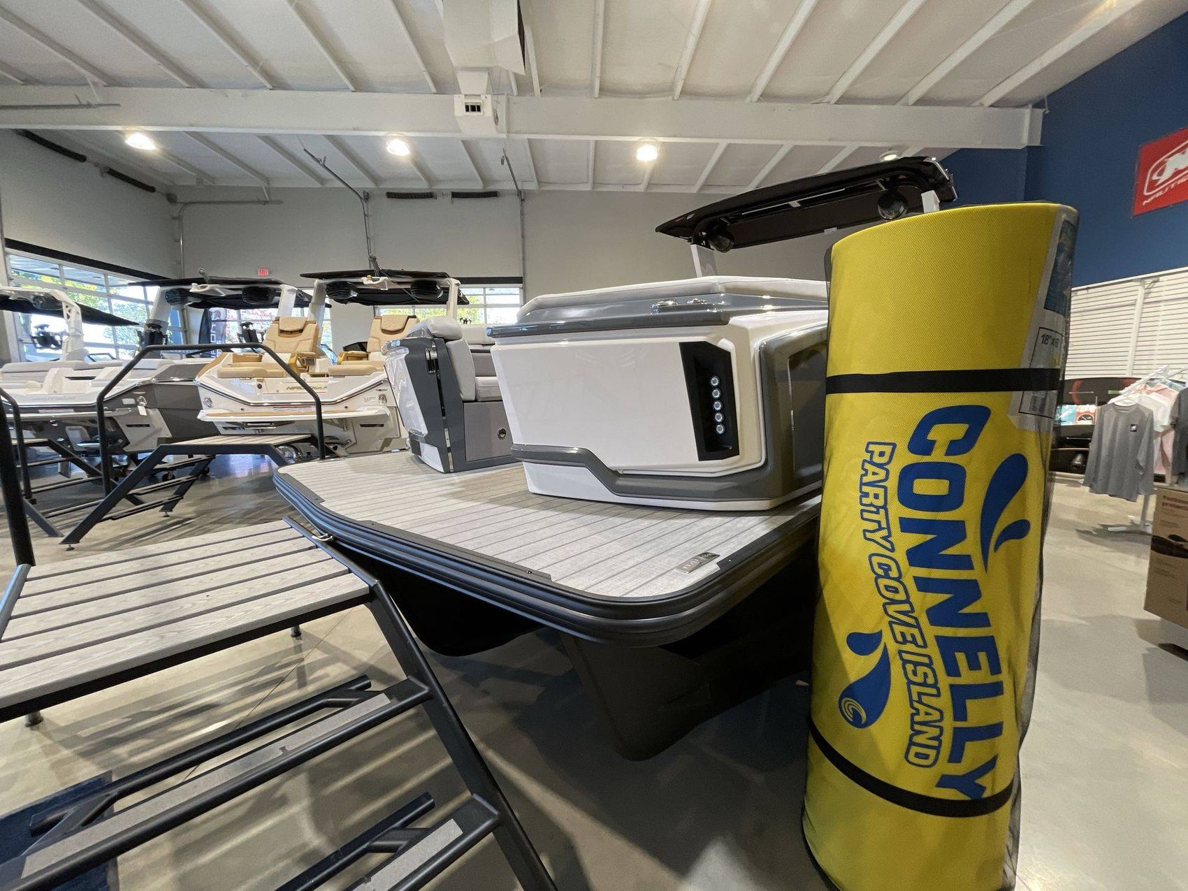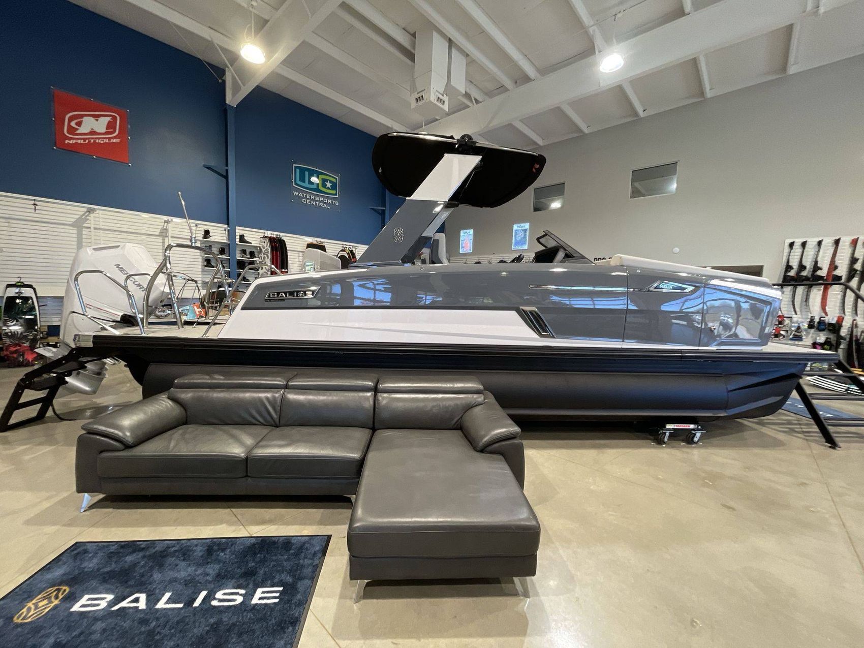 REST OF THE PREMIUM FEATURES: The boat also includes a Dark Grey Interior, Cordova Cooler, four Phender Pros, a Black Doggie/Trash Can Combo Unit, Teak Slate Flooring, Balise SST Ski Tow with Fender Holders, RGB Courtesy Lights, Cooled Cup Holders, Oscalati Ambience Lights, and a Balise Custom Mooring Cover, all aimed at enhancing your boating experience to the maximum level.