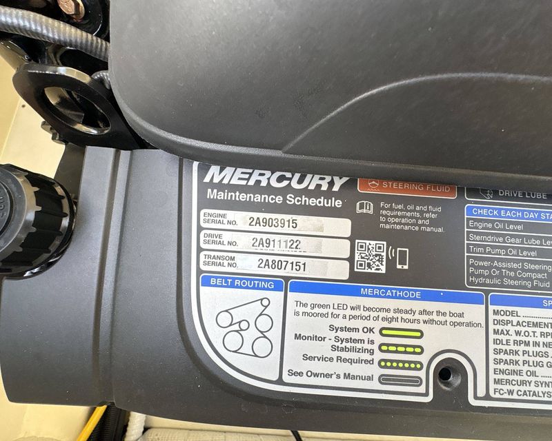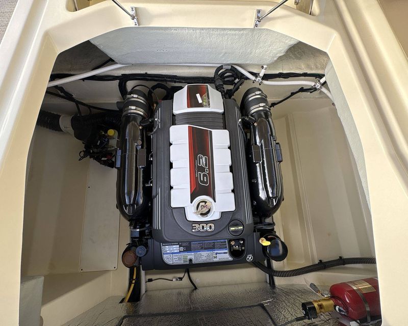 Experience enhanced safety and comfort with our optional upgrades which include: an Automatic Fire Extinguisher, a Comfortable Cockpit Filler Cushion, a Mooring Cover in Navy color, a Second Garmin 943 Display for the Digital Helm Dual, a Dual Battery Tray & Switch, fine quality Woven Seagrass - Pebble Flooring, a manual swim step equipped Swim Platform, and Trim Tabs with Indicators.