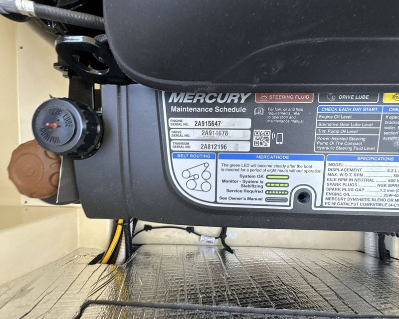 Engine: The boat is powered by a Mercury V8 6.2L engine, delivering a thrilling 350 HP and B3 DTS technology.