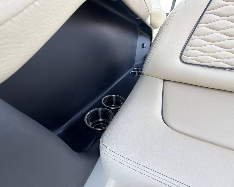 For a better user experience, the boat includes Dual Garmin 943 Display with CC User Interface & C Zone Switching, and Fender Clips (4). Flooring is done in a luxurious Woven Seagrass - Chestnut pattern.