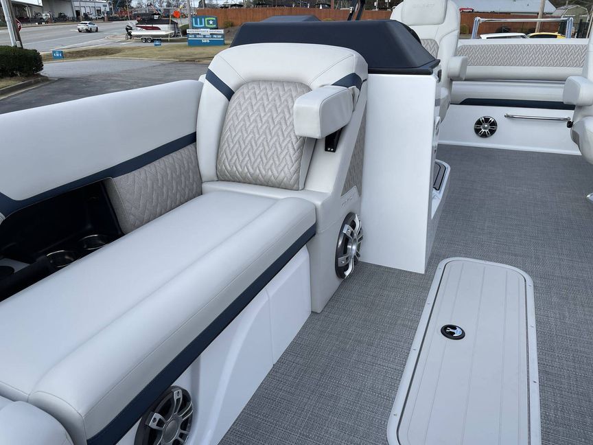 The Pre-Rig - Mercury Mechanical along with GPS - Simrad NSX - 9" ensures your voyages are safe and precise. The Audio Package - Premium provides top-notch entertainment, and the Exterior Light Package (RGB) adds a vibrant illumination to the boat.
