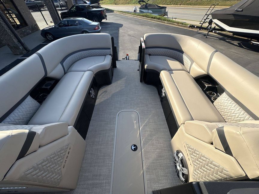 Embarking on an adventure onboard the Crest Caribbean 230SLS is unlike any other. This luxury pontoon boat features outstanding performance, exceptional style, and cutting-edge features designed to boost your water sport adventures and offer an unforgettable experience.