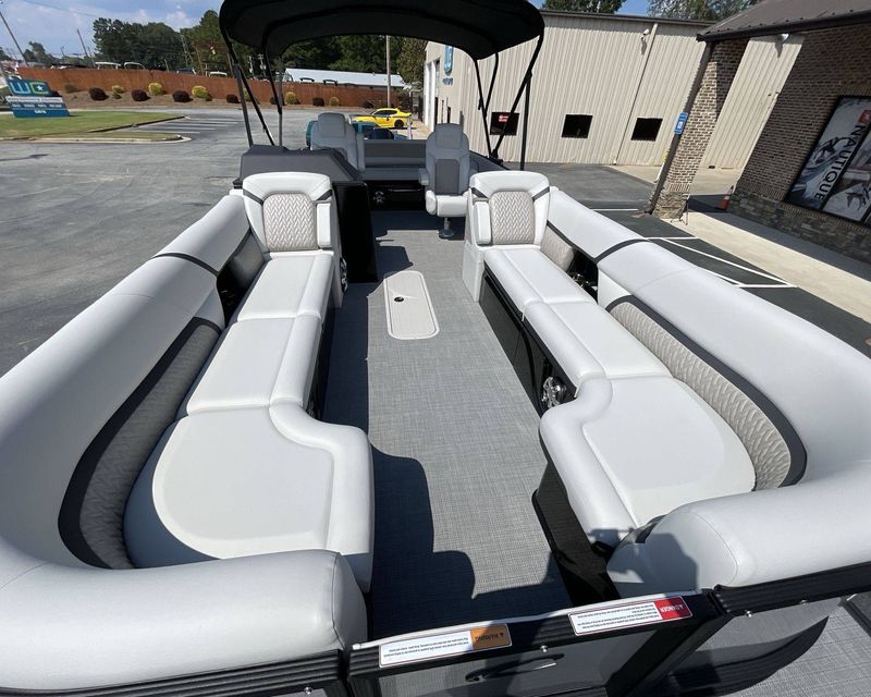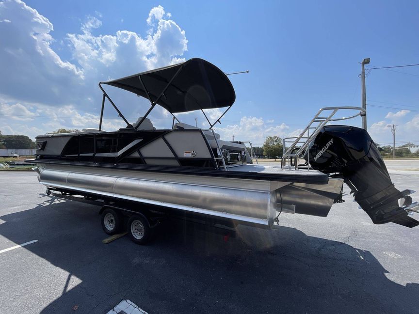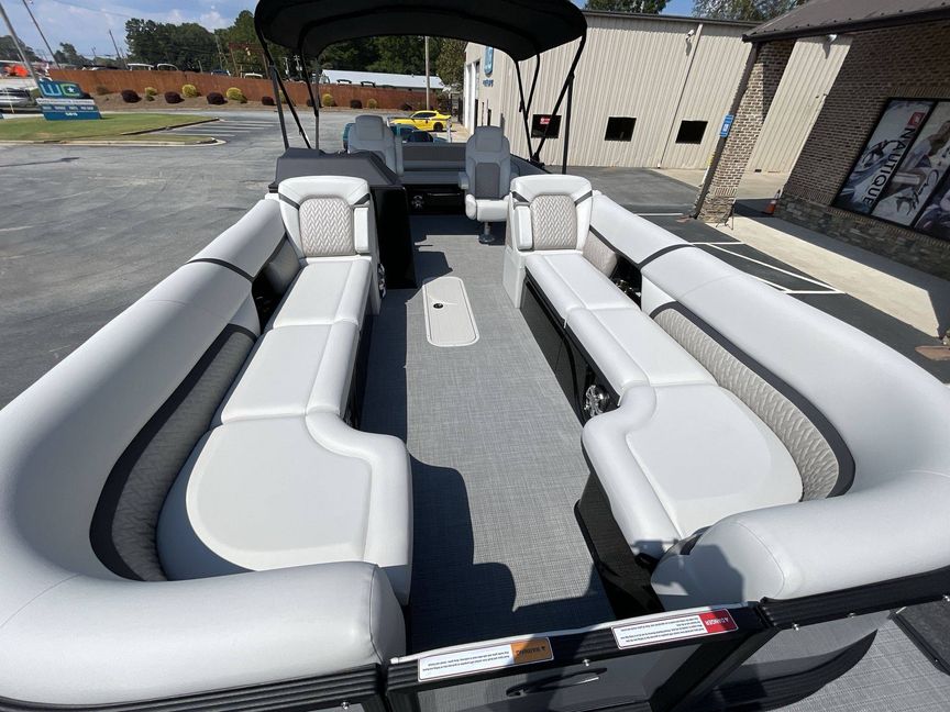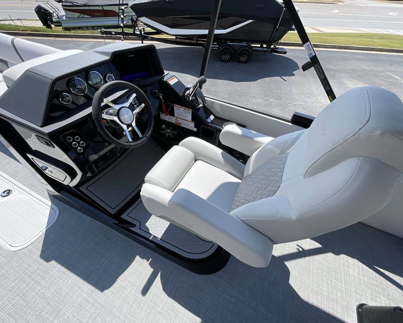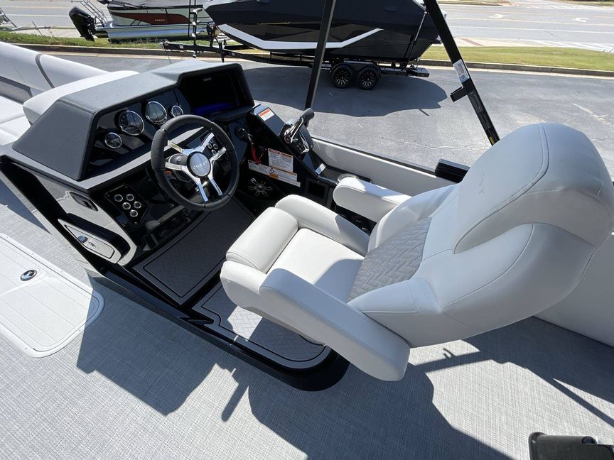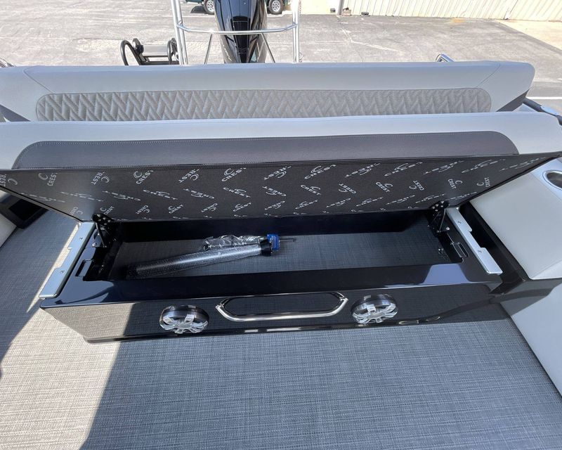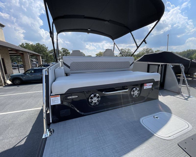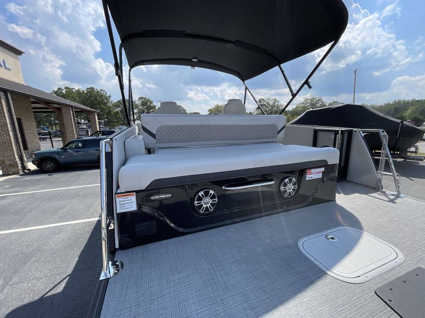 The 2026 Caribbean 250 SLS is built with three-tube construction for optimal balance and stability, and hydraulic power-assist steering that provides effortless navigation. The boat features silver metallic fence panels that are not only stylish but also instantly add a modern appeal to the boat. The black metallic accent panel and fiberglass fence panels in black contribute to its luxurious aesthetic.