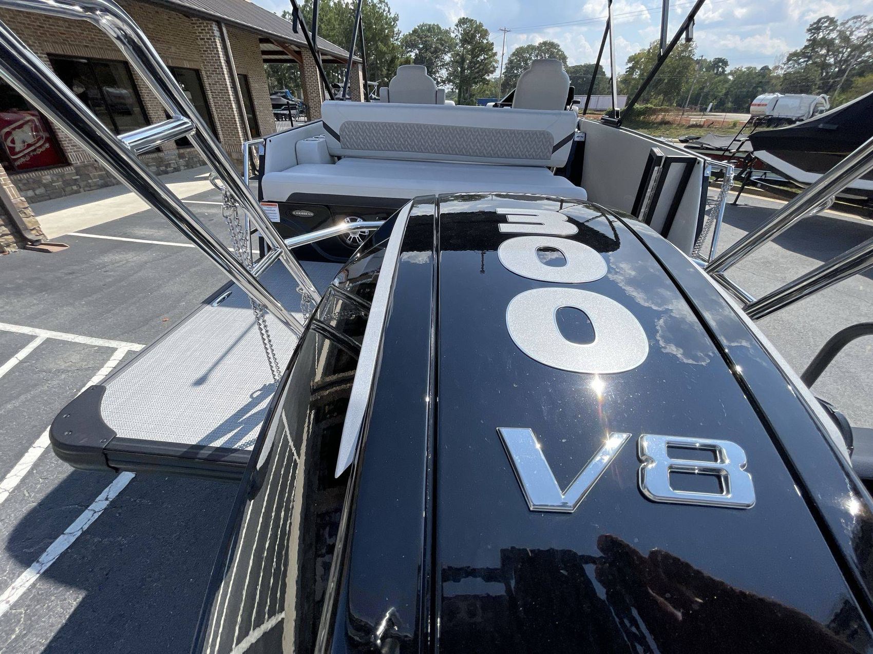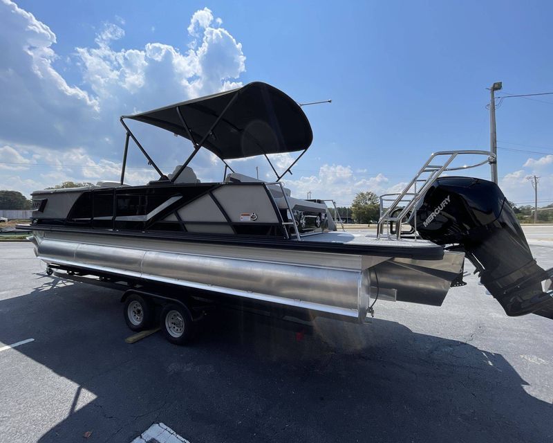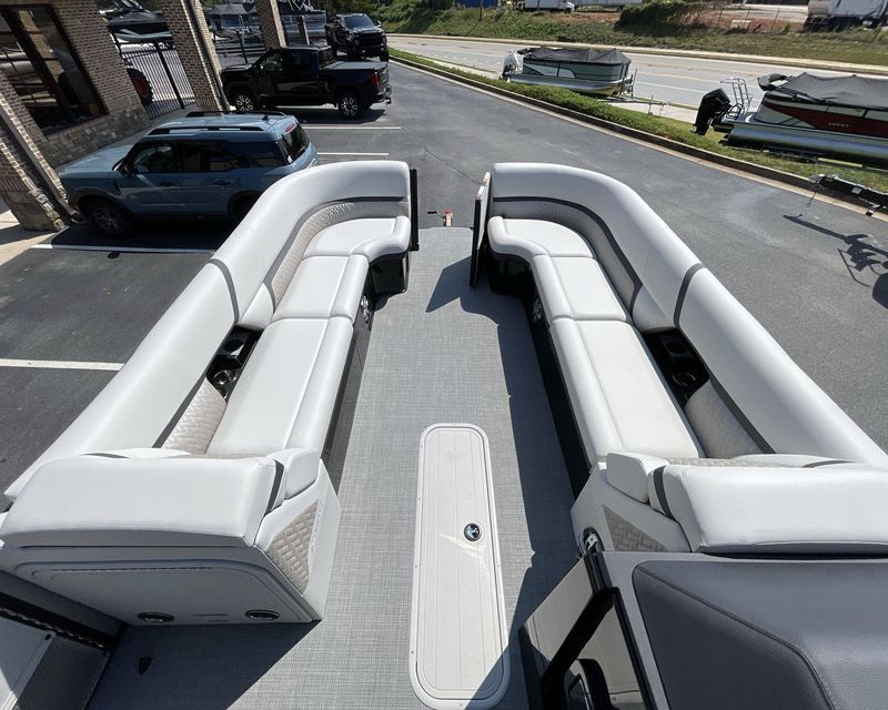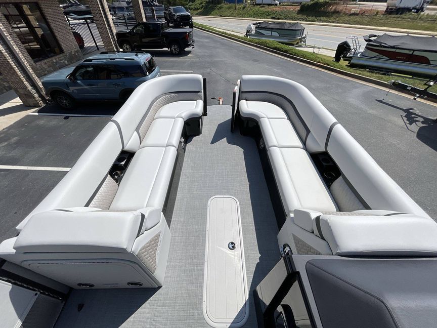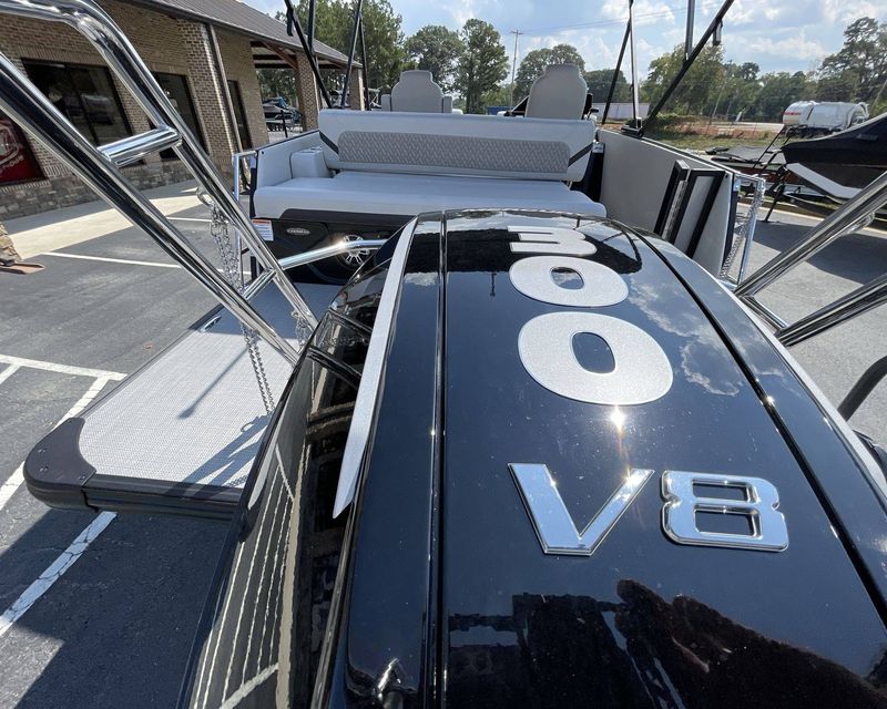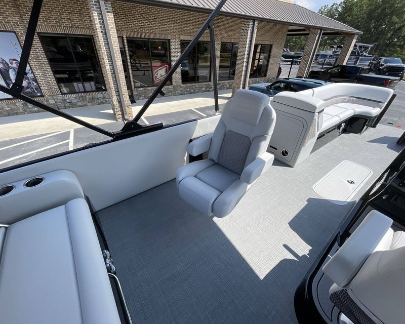 The 2026 Caribbean 250 SLS is built with three-tube construction for optimal balance and stability, and hydraulic power-assist steering that provides effortless navigation. The boat features silver metallic fence panels that are not only stylish but also instantly add a modern appeal to the boat. The black metallic accent panel and fiberglass fence panels in black contribute to its luxurious aesthetic.