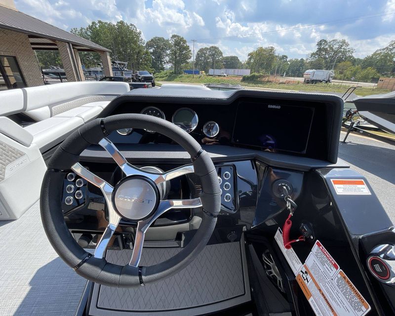 This boat comes loaded with many high-end features. It offers a premium audio package complete with transom remote for an immersive listening experience. The GPS Simrad NSX - 9" ensures easy and safe navigation.