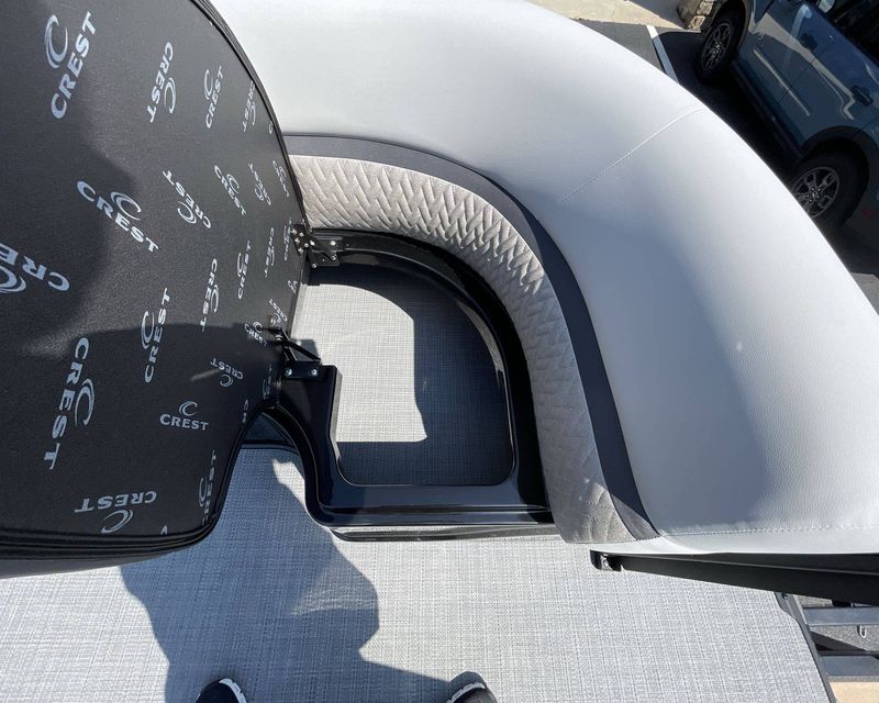The boat comes with a standard mooring cover with snaps to protect it from the elements. The deck trim & corner caps are powder coated for durability. It includes a premium tube & ski tow bar with flagpole for safety and convenience. Helm chair with flip up (2) ensures comfort during long boating hours.