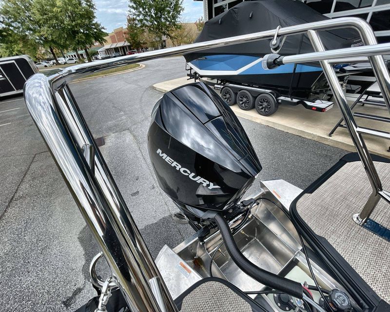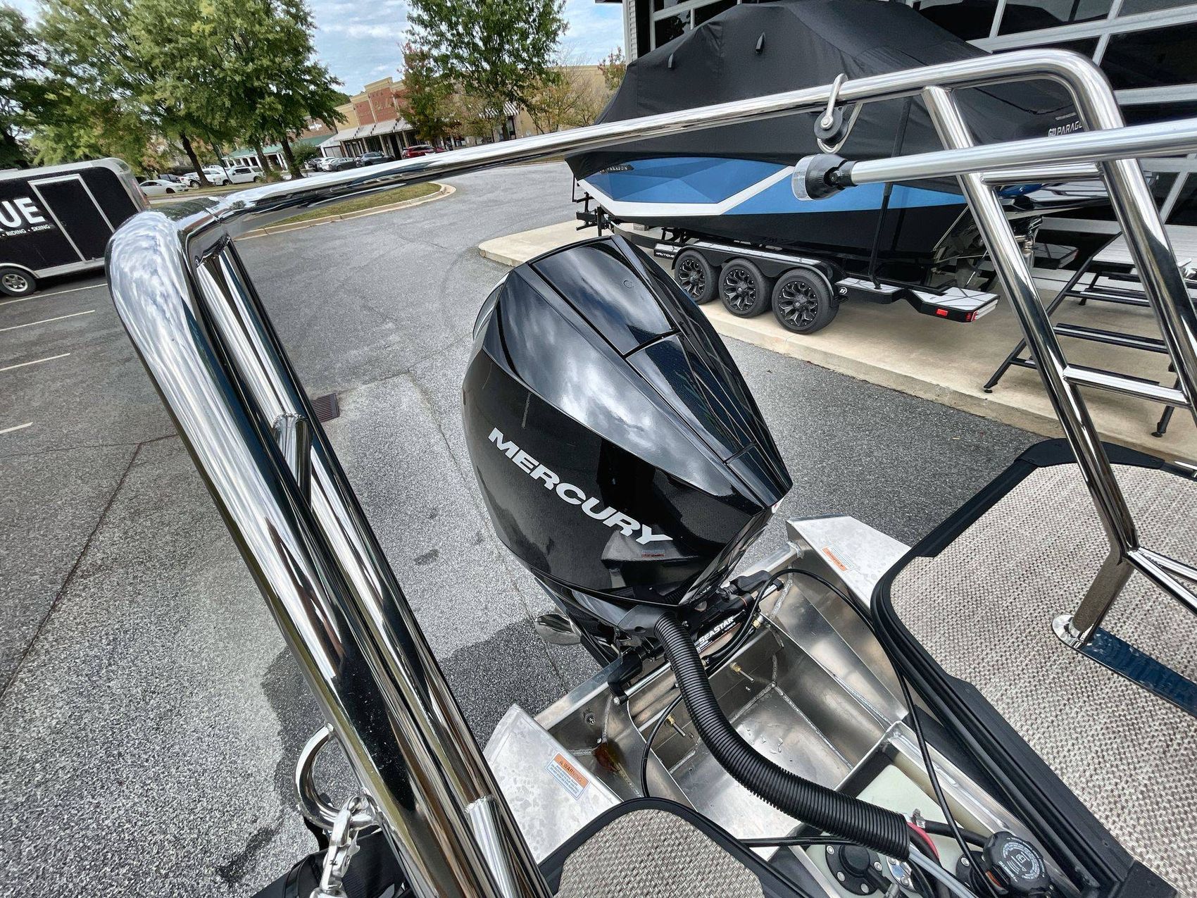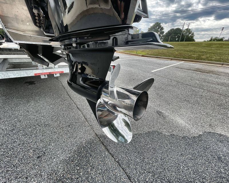Besides, the boat sports Blackout Badging and Logos, Premium Tube & Ski Tow Bar, Raised Helmstand and RGB Accent Lighting Package for underdeck and speakers. The boat is pre-rigged for Mercury, ready for all adventures.