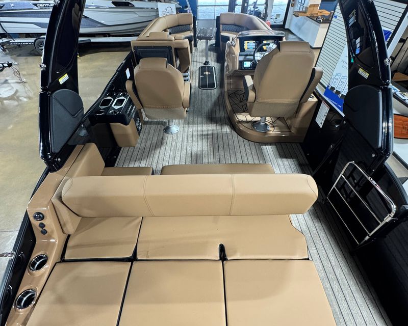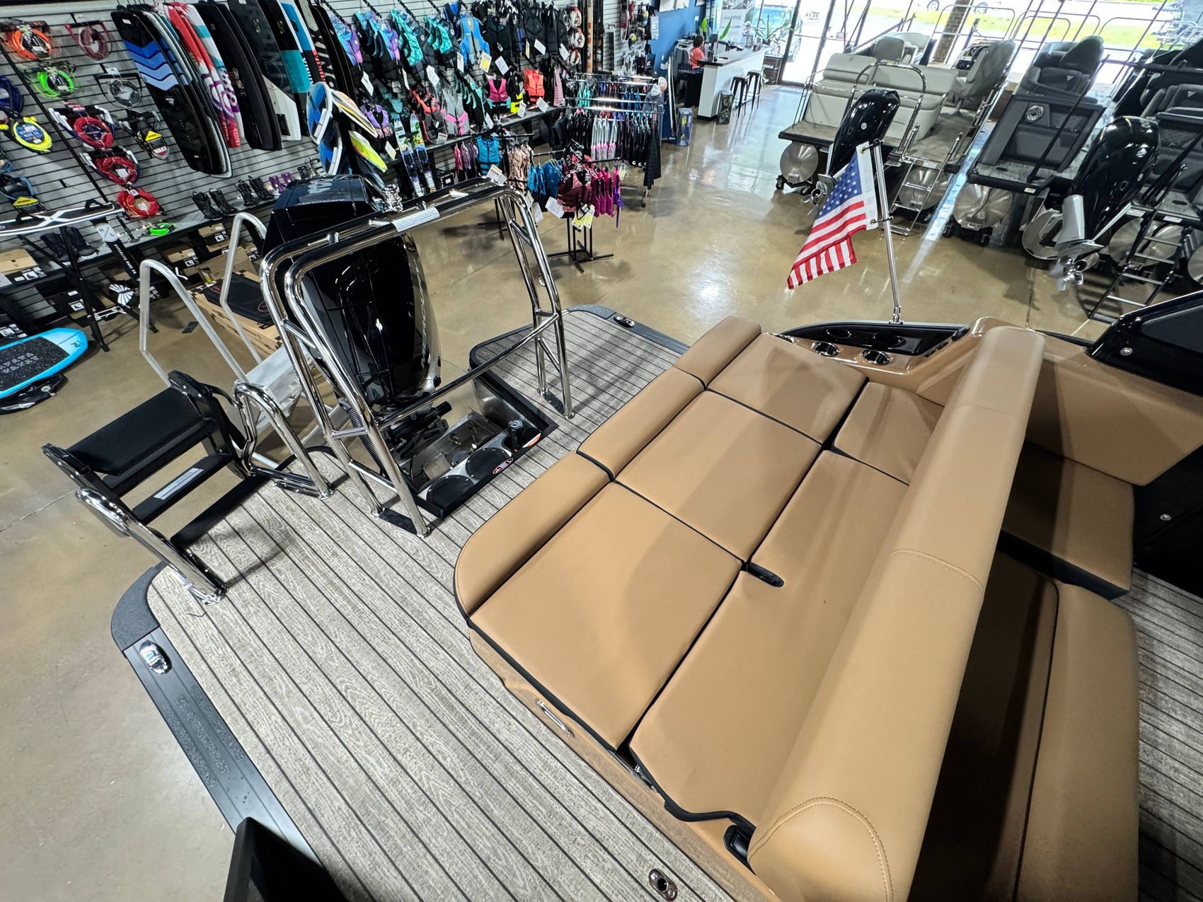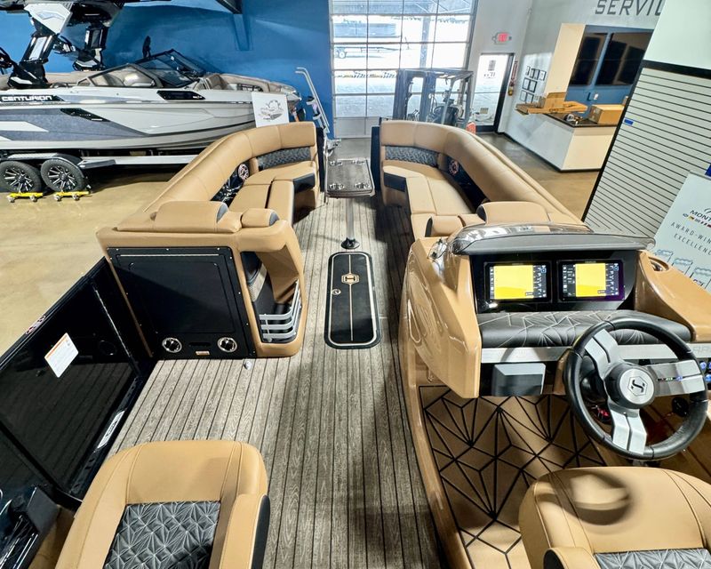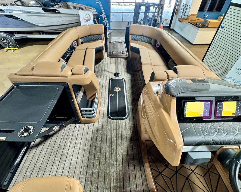 The interior is furnished with Cool Touch Chesnut Brown finish that exudes warmth and comfort, making you feel at home even while you're conquering the waves. The superior materials offer unequivocal durability while maintaining an upscale atmosphere.