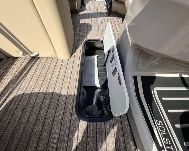With its sleek and stylish design, the 2026 Harris Solstice exudes a nautical charm that’s difficult to resist. Proudly showcasing a voluminous deck, comfortable seating arrangement, and an expansive lounging area, this magnificent boat iss a perfect reflection of luxury and class.