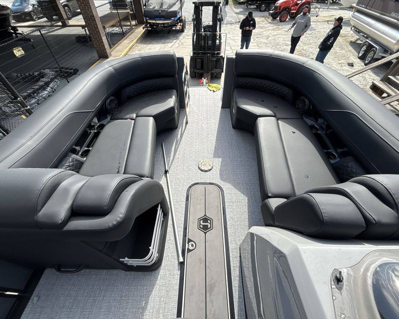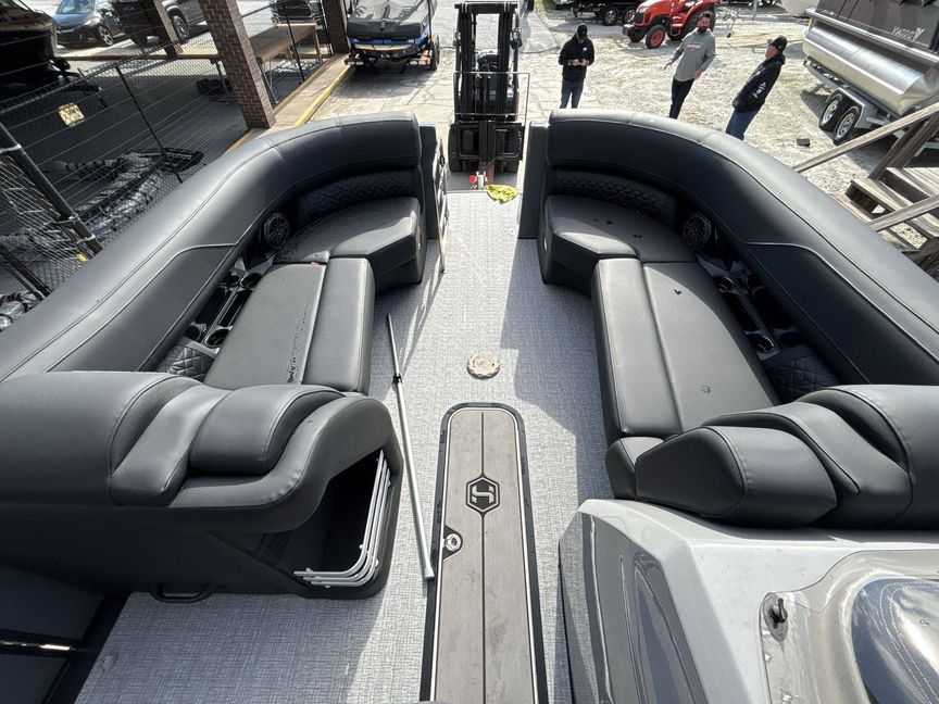 This stunning watercraft is equipped with a host of state-of-the-art features, including a 325 Chassis with 3 25" tubes and a 27" center tube with strakes and skin kit. It also sports a sleek black Ultra manual lift tower, enhancing both aesthetics and functionality. Onboard, you'll enjoy the elegant ambiance offered by a complete light package for the interior and exterior of the boat. Other essential features include a Lillipad Easy Step Ladder, a renowned Stainless Steel Ski Tow Bar, and a distinctive Stone Gray Woven Vinyl Flooring.