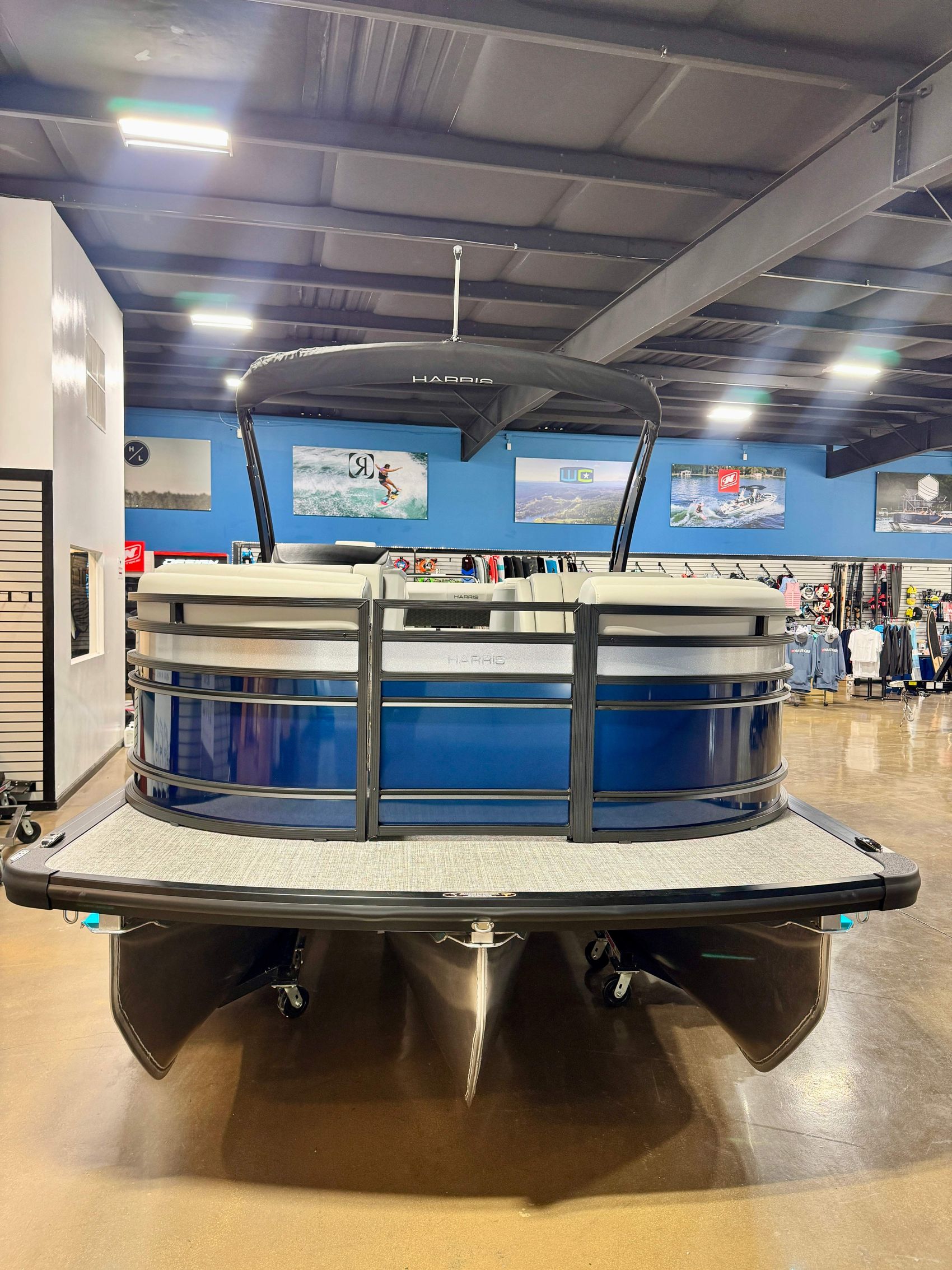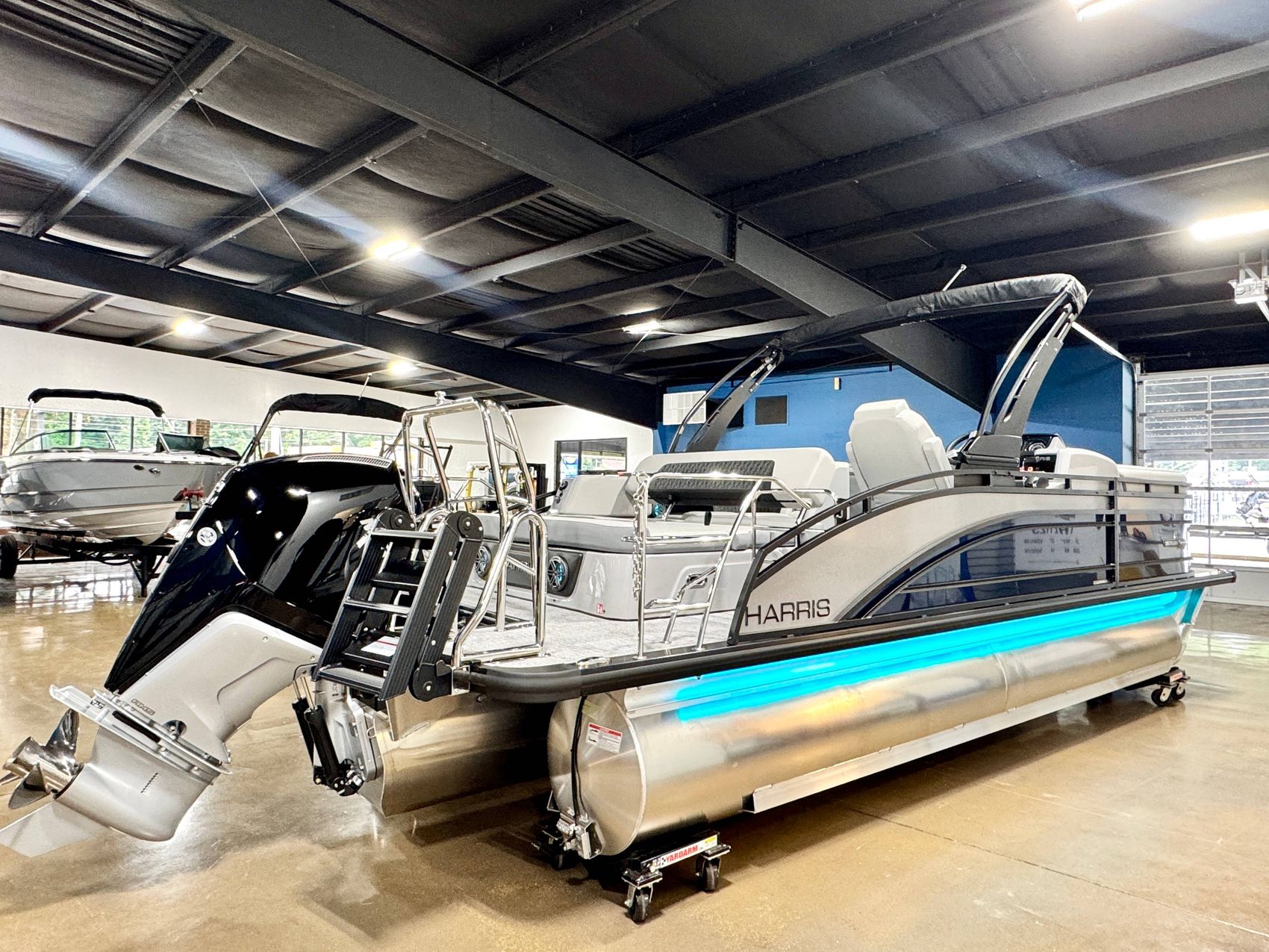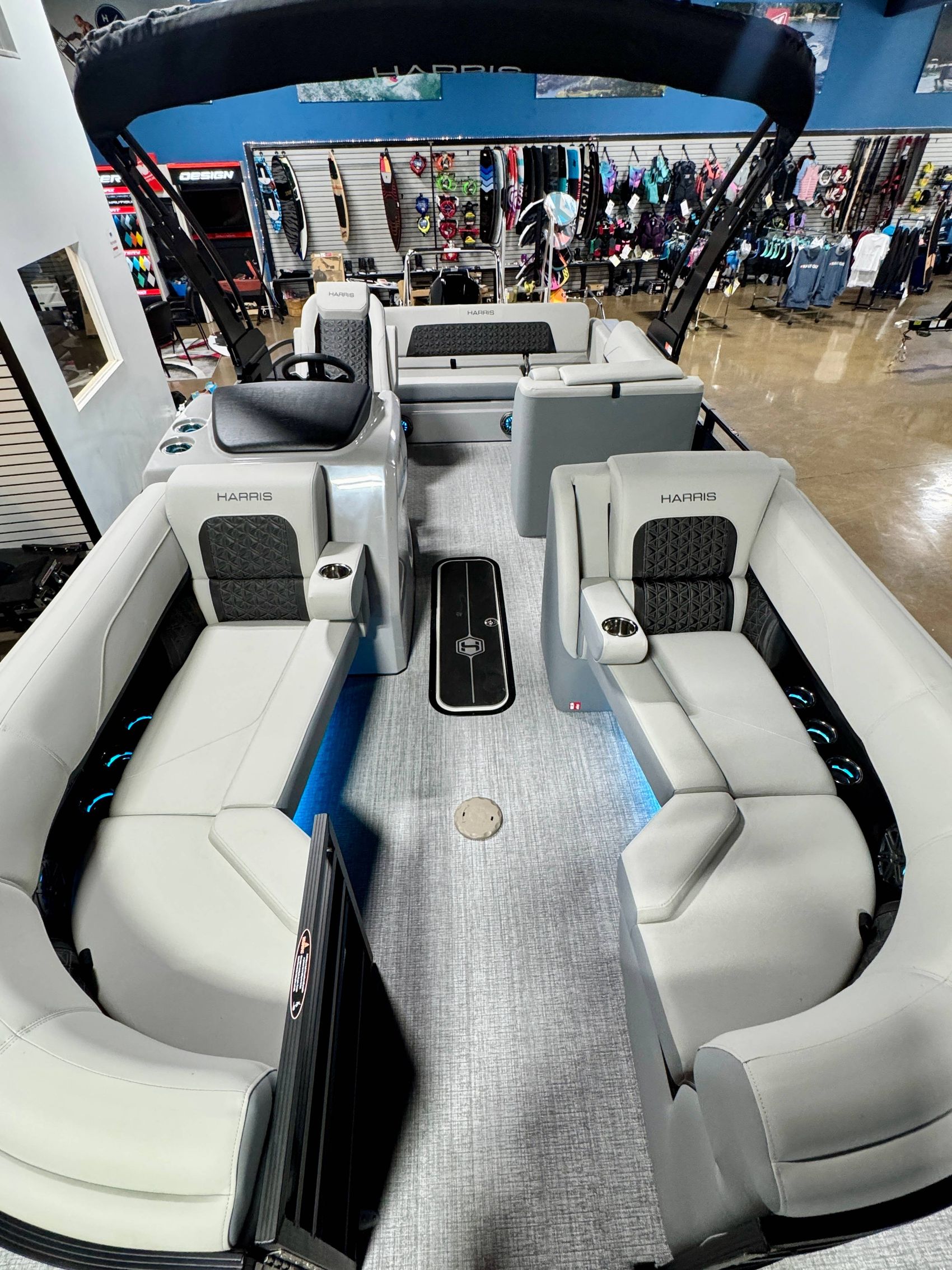 It features a robust and stylish Halo Power Tower with Bimini, perfect for offering shade on those sunny days, ensuring your comfort while you cruise.