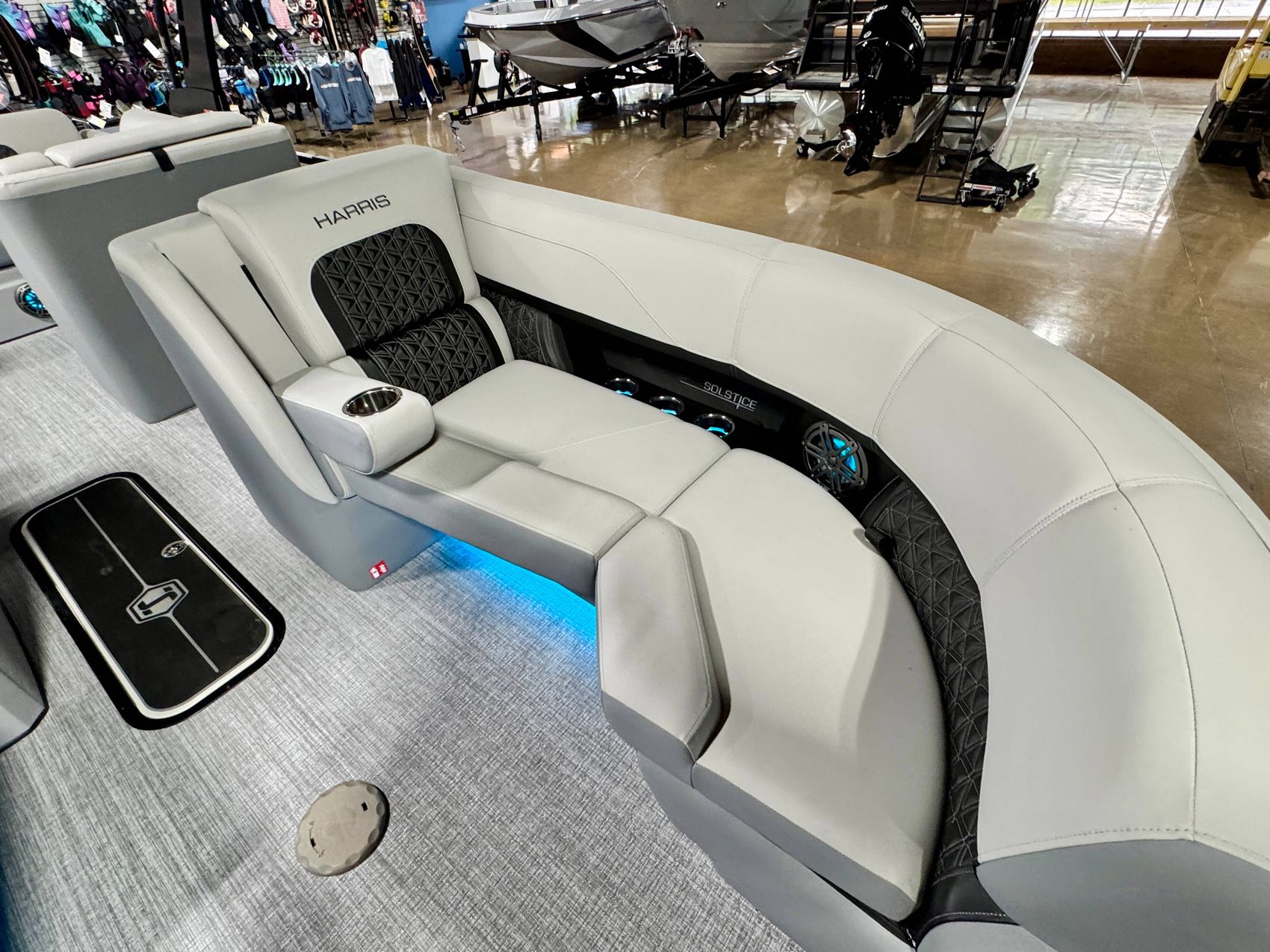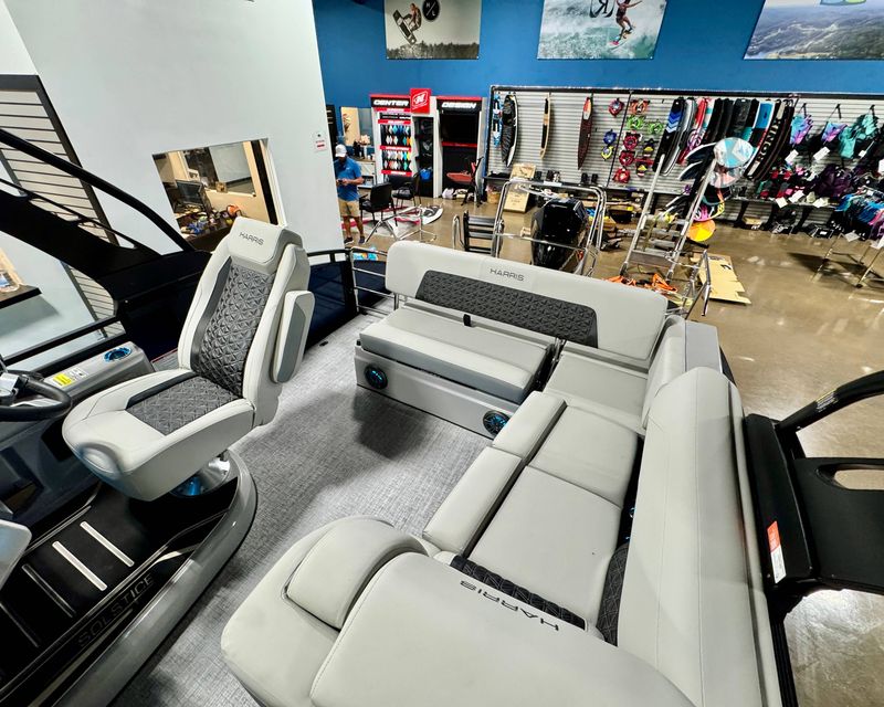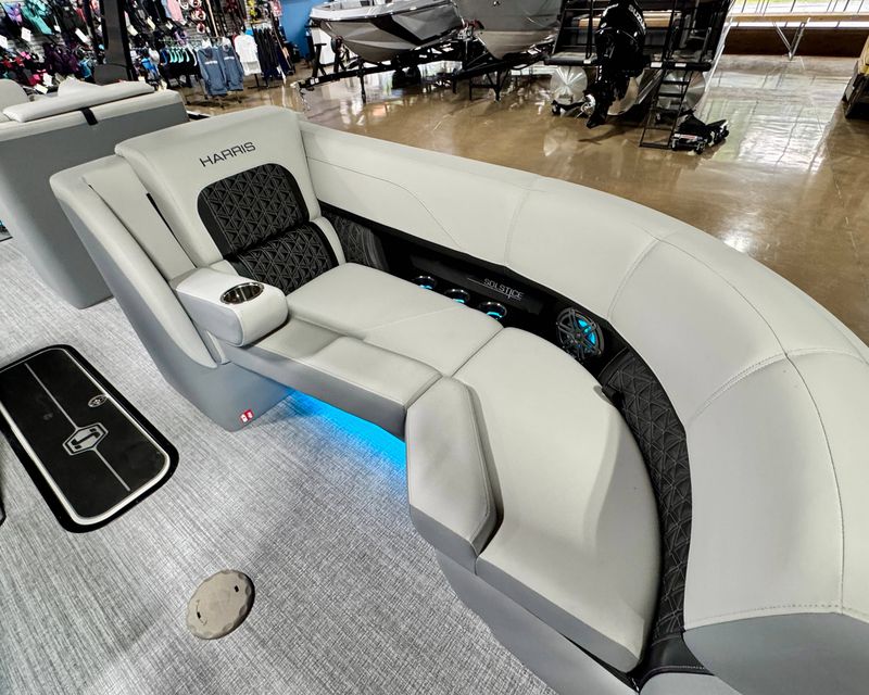 The 2026 Harris Solstice 230 is rigged with a high-performance, reliable, and efficient Mercury 250L engine. This ensures excellent propulsion, increased fuel efficiency, and a smooth, enjoyable ride.