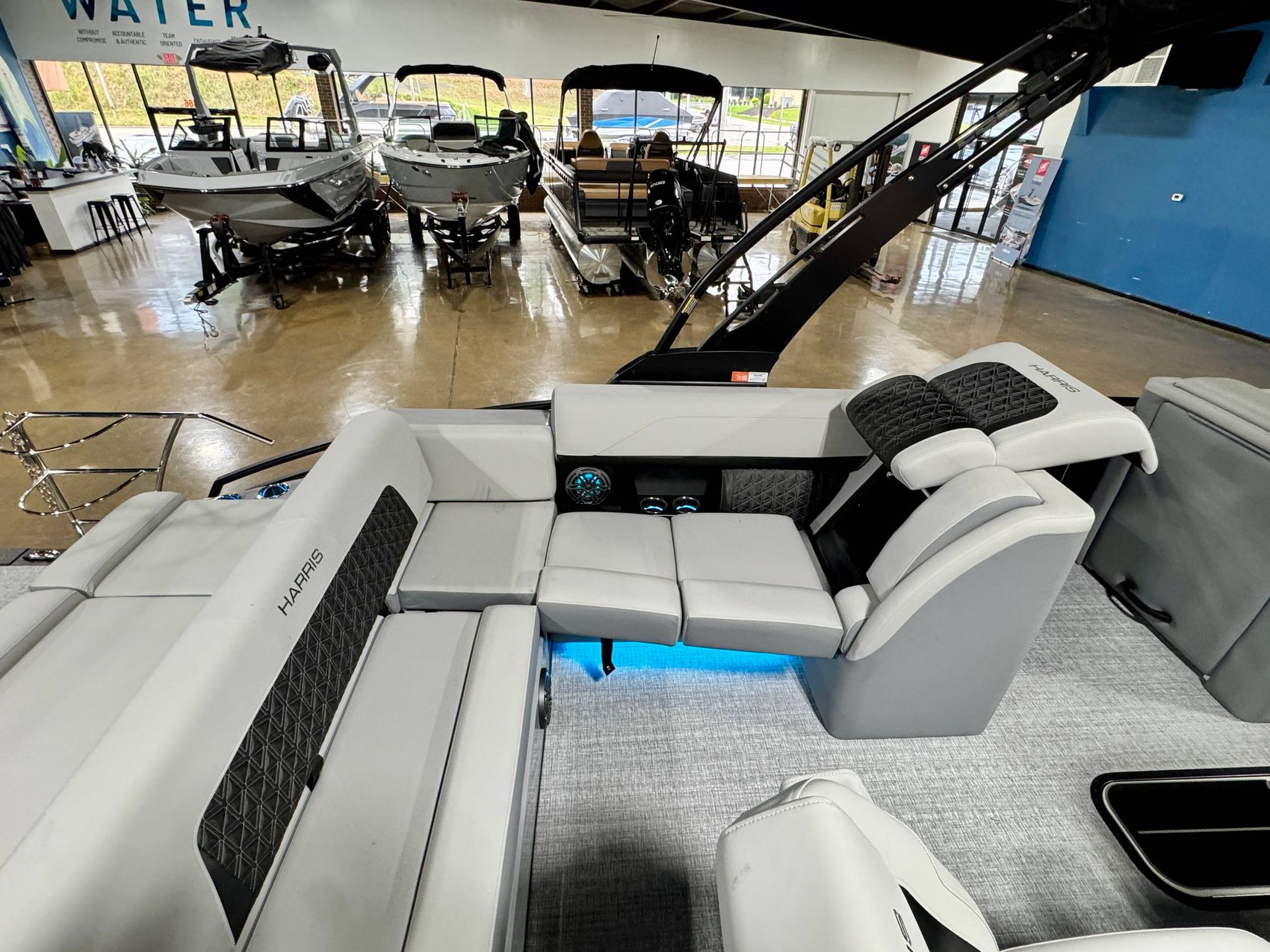 The boat features an innovative RGB Lighting Package, offering both interior and exterior lightings that bring a magical ambiance to your evening cruises.