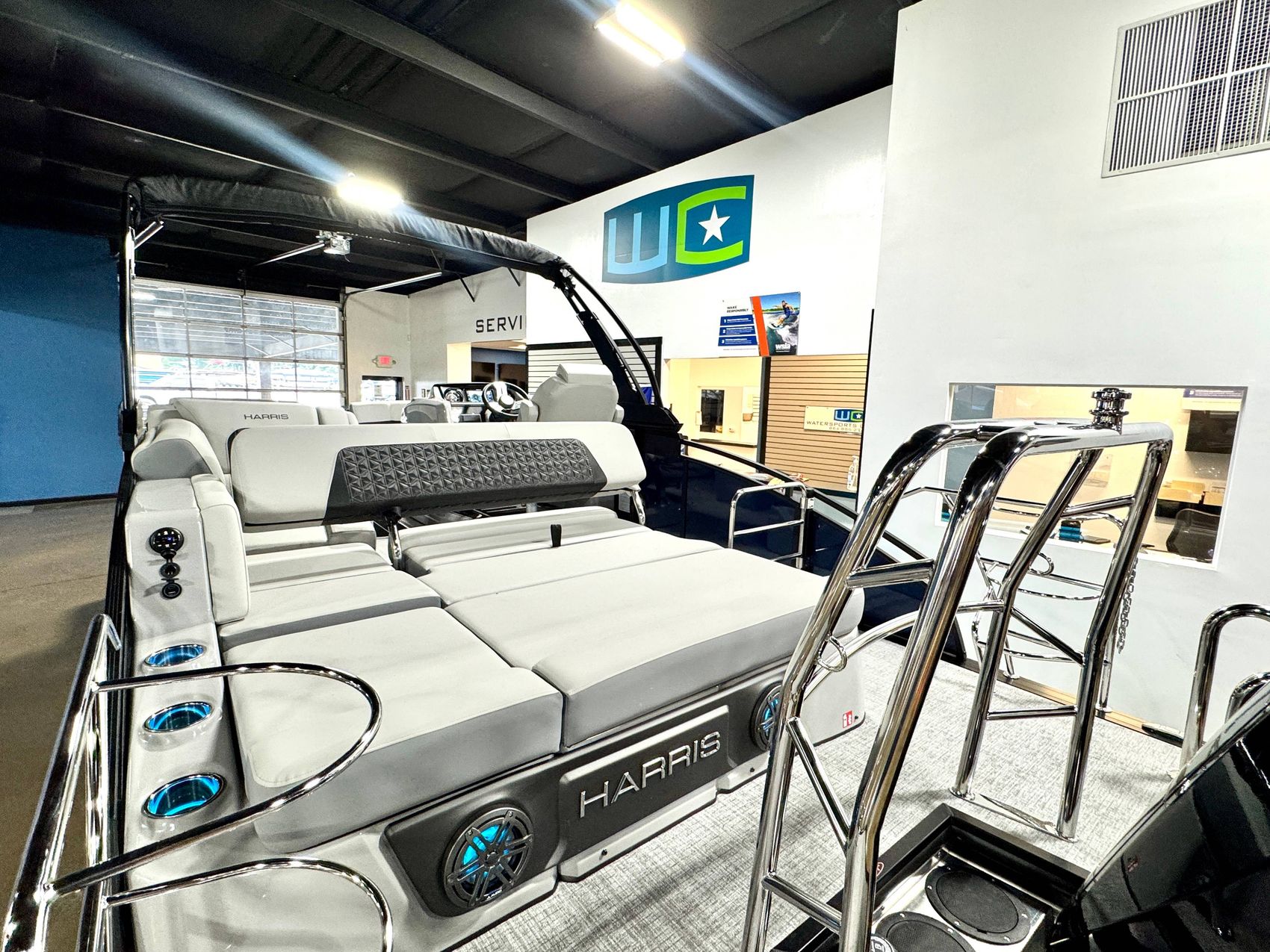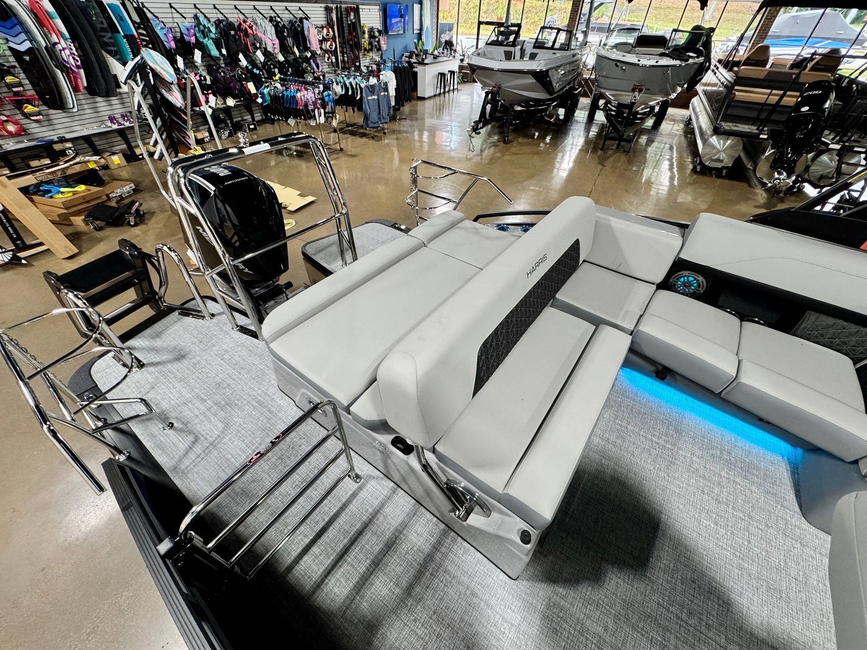 On the safety side, it features a Rail Safety System in the rear, designed to provide heightened security for onboard passengers, particularly when the boat is in motion.