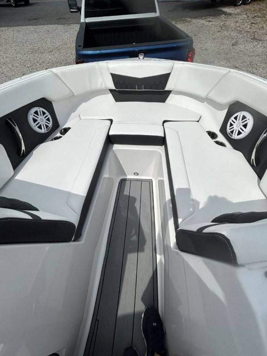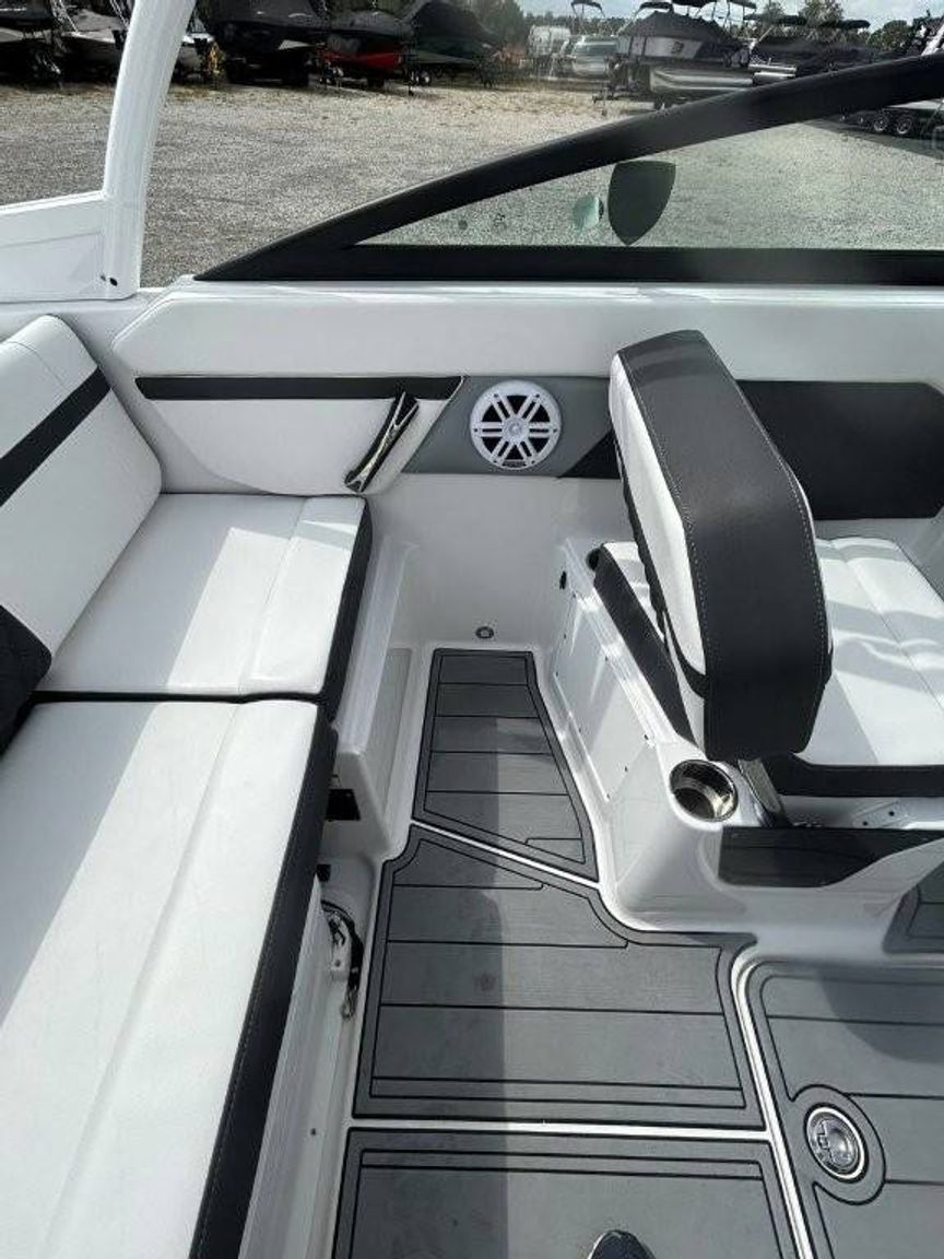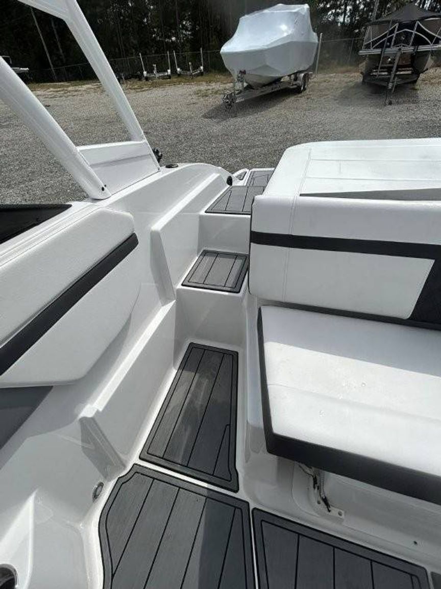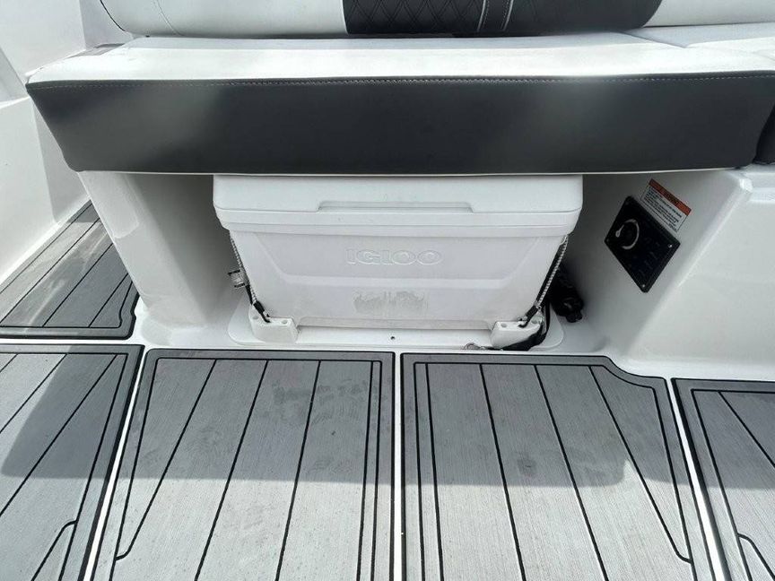 This boat boasts a sleek, modern design combined with luxurious features to offer both comfort and convenience. Enjoy the spacious seating area, enhanced helm controls, and an inbuilt bimini top for the perfect shade during sunny days. An integrated swim platform and a state-of-the-art sound system are additional features offering captivated entertainment on the water.