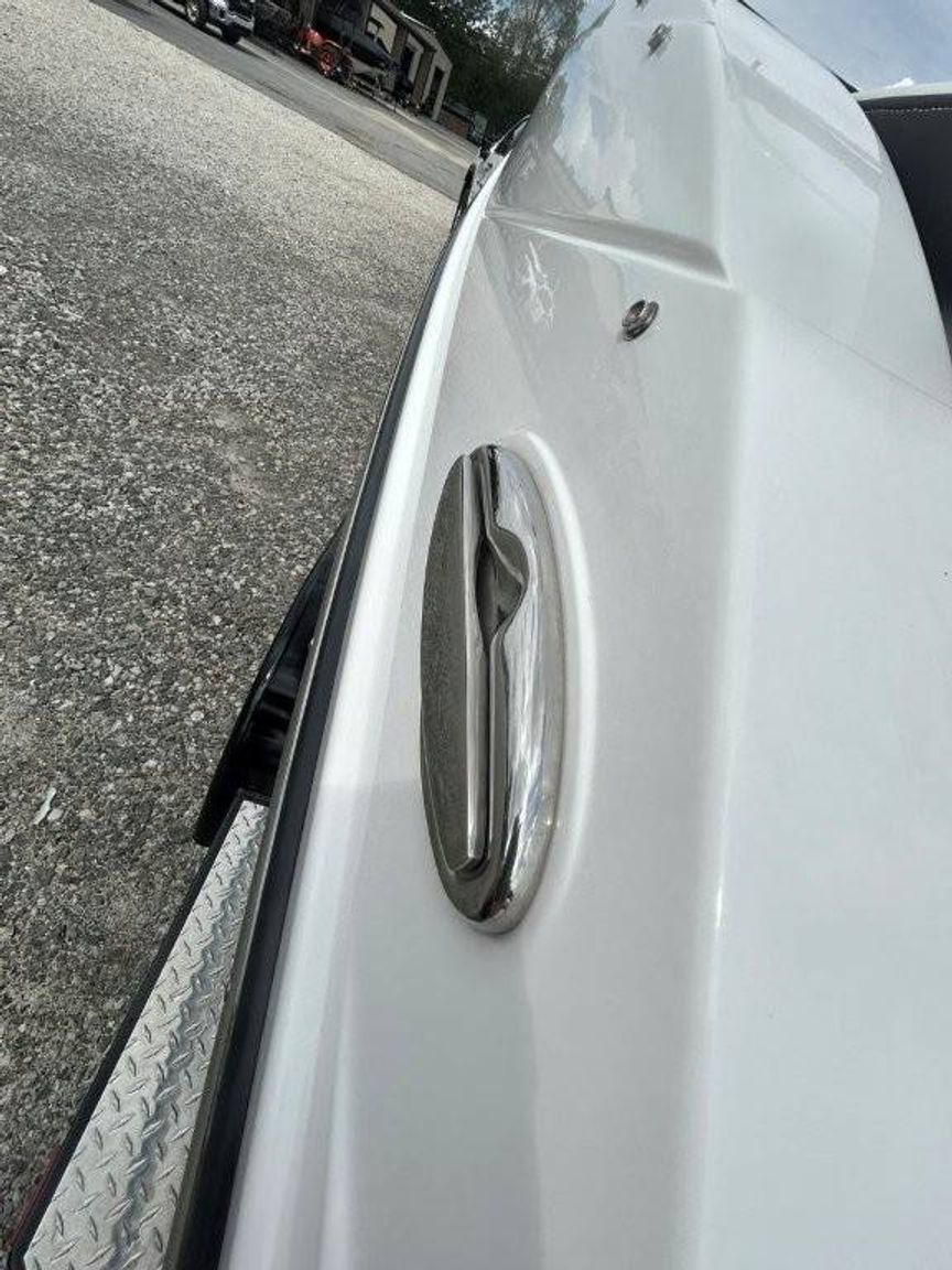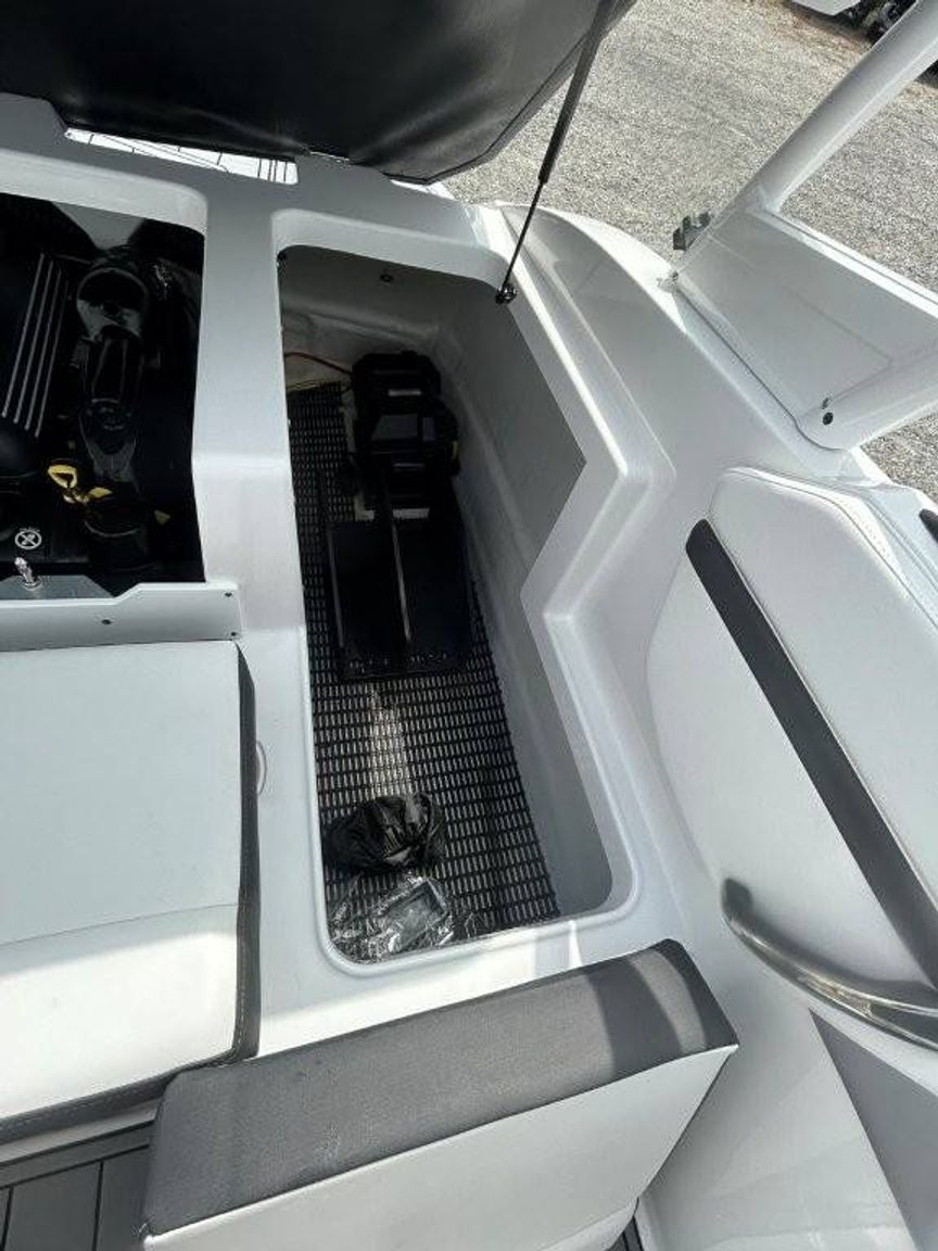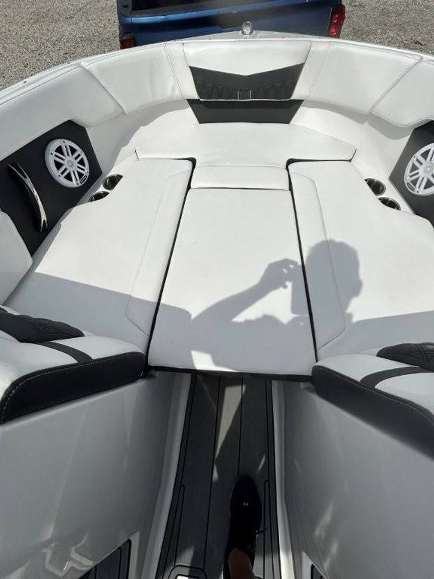 This boat boasts a sleek, modern design combined with luxurious features to offer both comfort and convenience. Enjoy the spacious seating area, enhanced helm controls, and an inbuilt bimini top for the perfect shade during sunny days. An integrated swim platform and a state-of-the-art sound system are additional features offering captivated entertainment on the water.