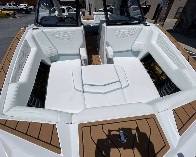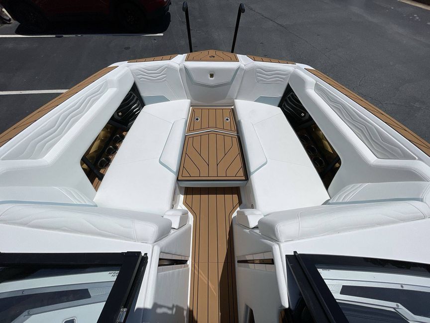 The boat is powered by a ZZ6 450HP - 6.2L Direct Injection engine, providing an ideal blend of power and efficiency for smooth and reliable performance.