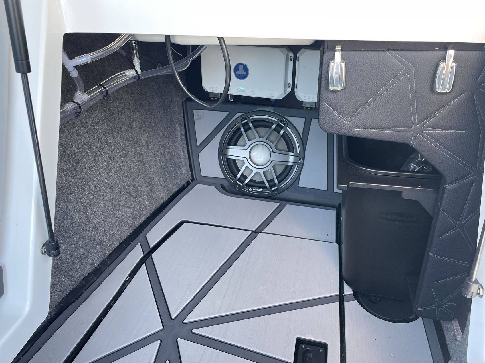 The boat flaunts Bright Hardware color package that perfectly compliments the overall look and aesthetics of the vessel.