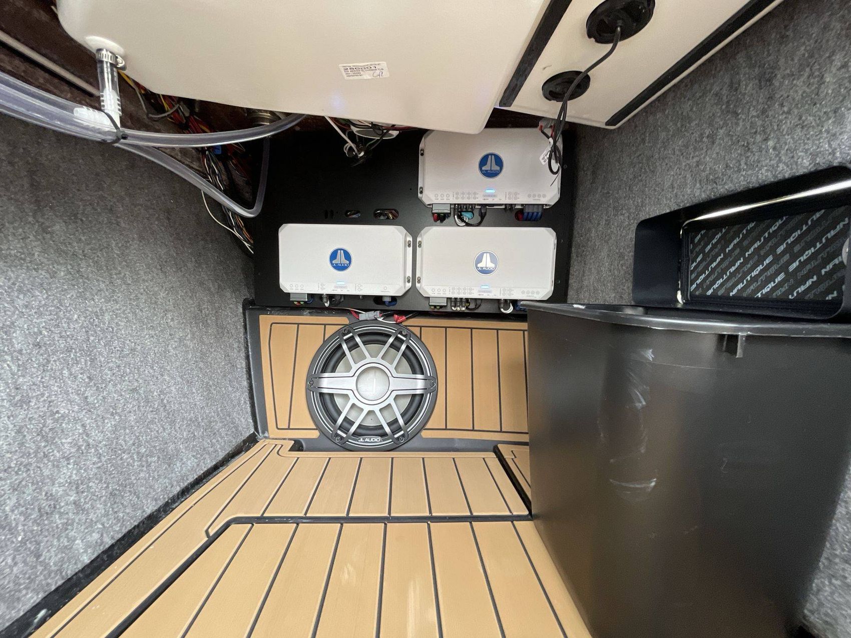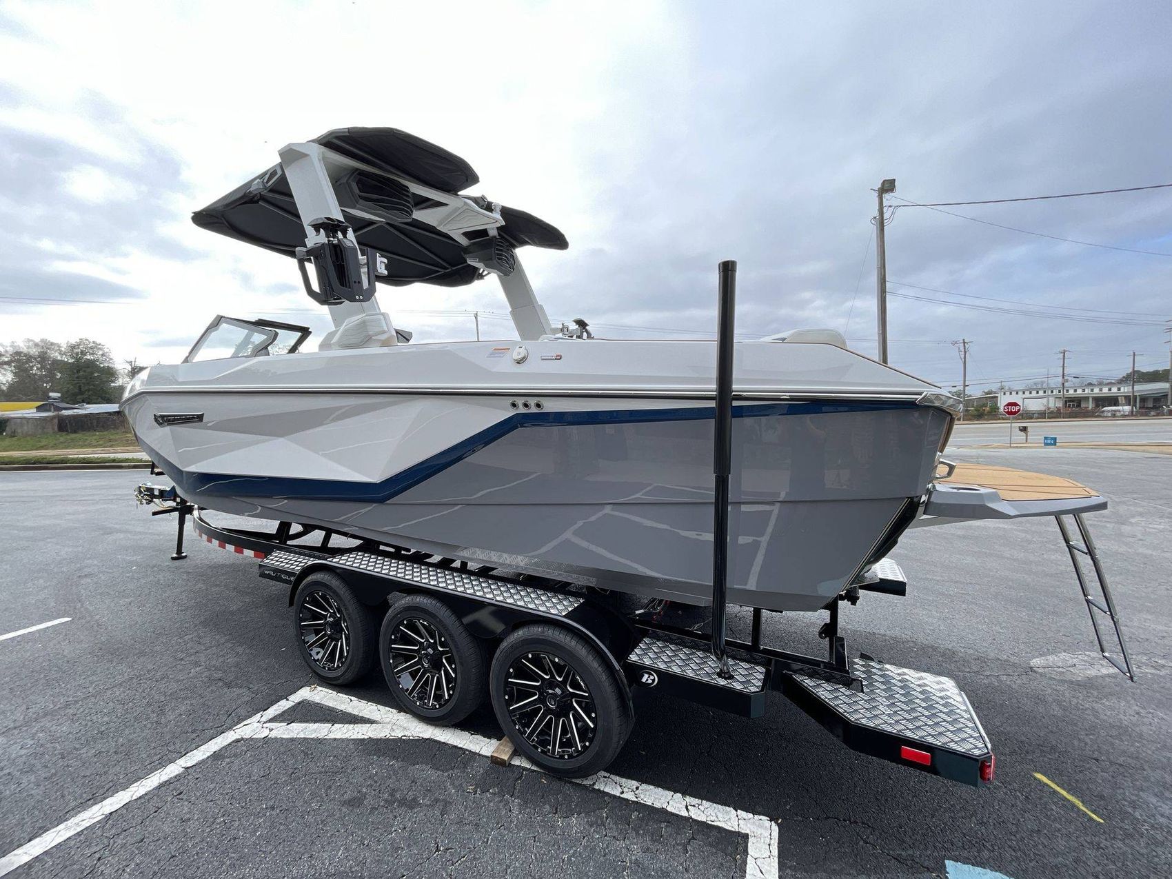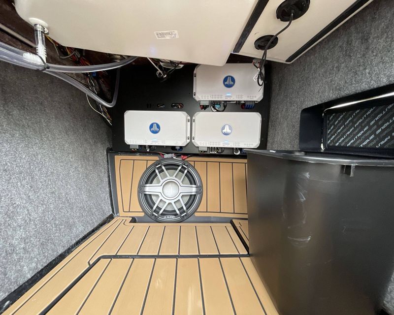 The onboard facilities include a Telescoping Flight Control Tower System and a Tower Prep Kit equipped with JL Audio M Series Studio (Pre-Wired 8 Channel Amp).