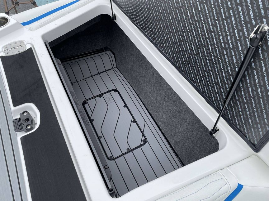 The boat features a Battery Maintenance System 110 ensuring the long life of the dual battery. Additionally, the boat comes with a Standard Towable/Mooring Cover that includes Anti-Pooling for both Standard and Actuated Towers.