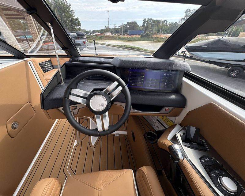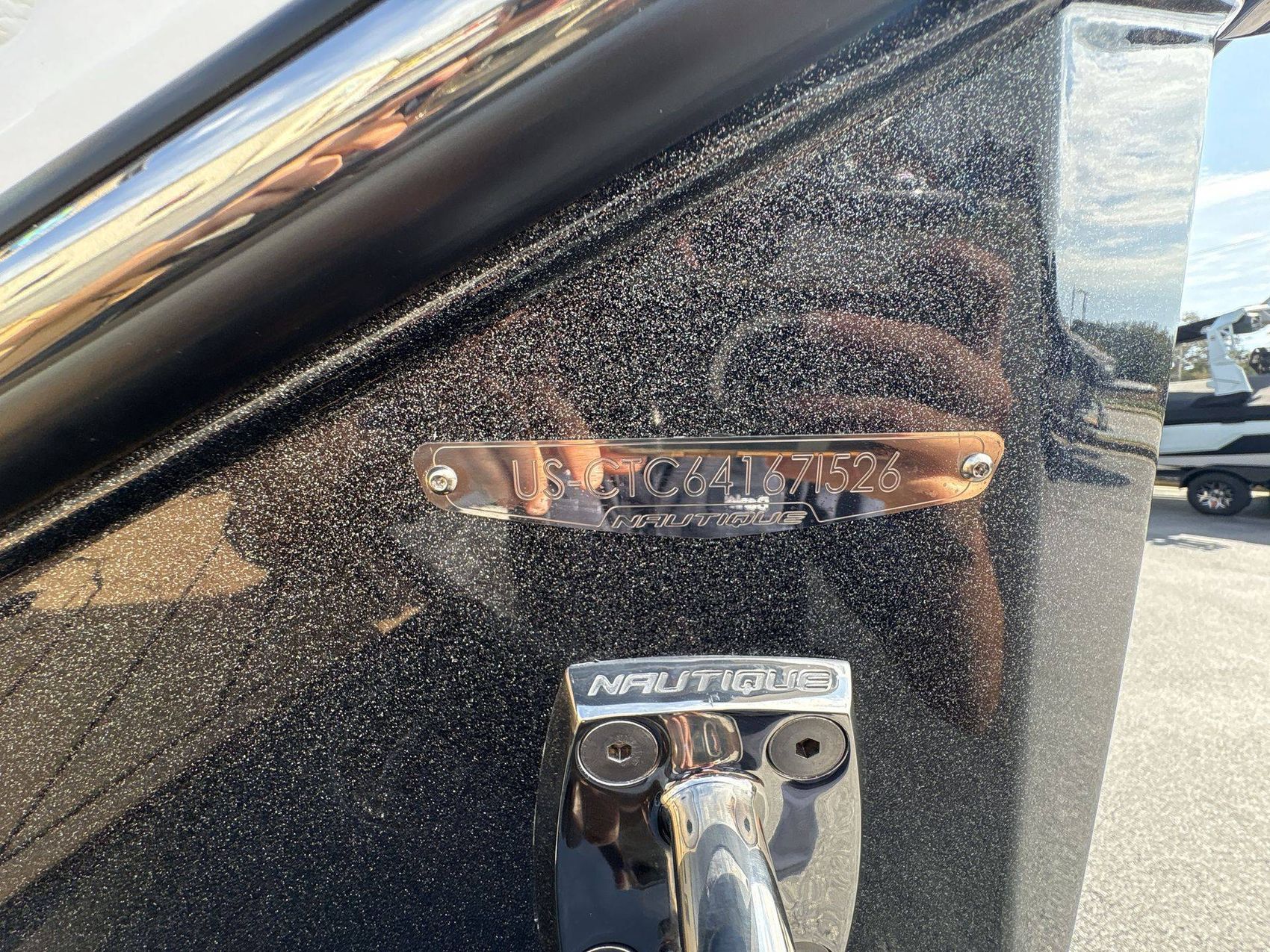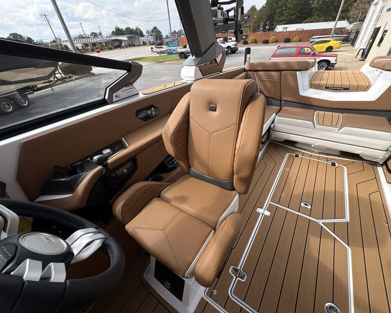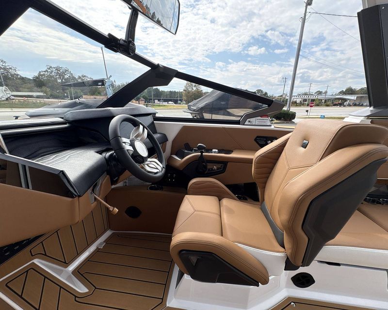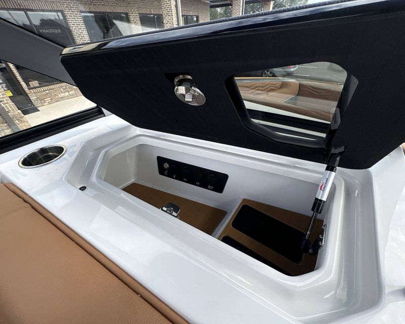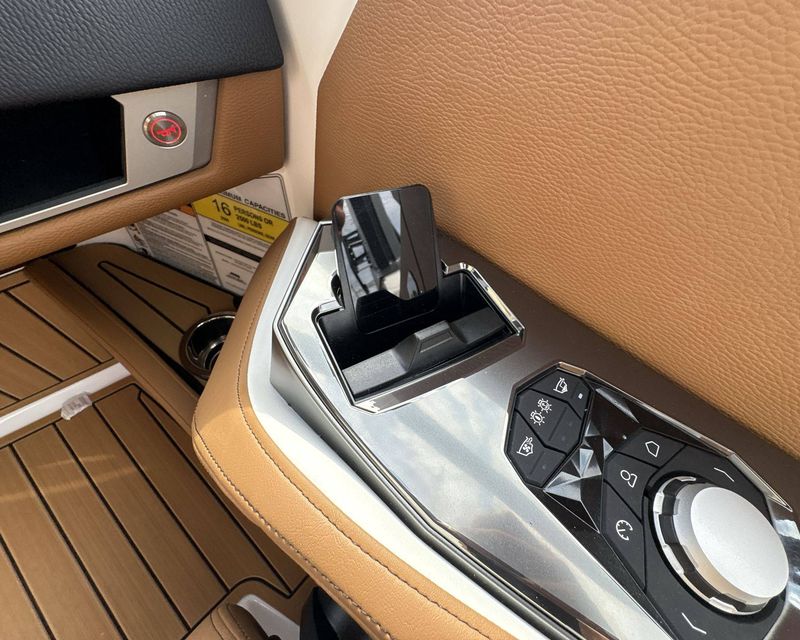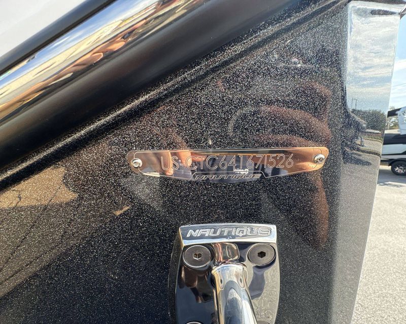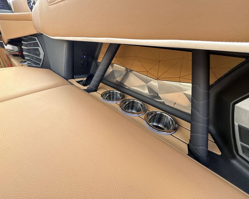 In addition to the standard features, the boat includes a host of optional extra features including an air pump inflator system, additional ballast of 1,200 lbs, a heater with defroster, enhanced courtesy lighting package, underwater lights, Nautique Integrated Steering Assist, and a tandem spoke leather steering wheel. Wireless chargers are available in magnetic, pockets and glovebox.