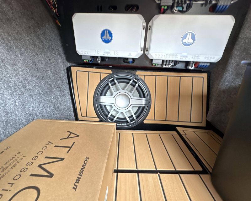 Prep Kit: The boat is fitted with a JL Audio M series studio prep kit, pre-wired for an 8 channel amplifier for your enjoyment.