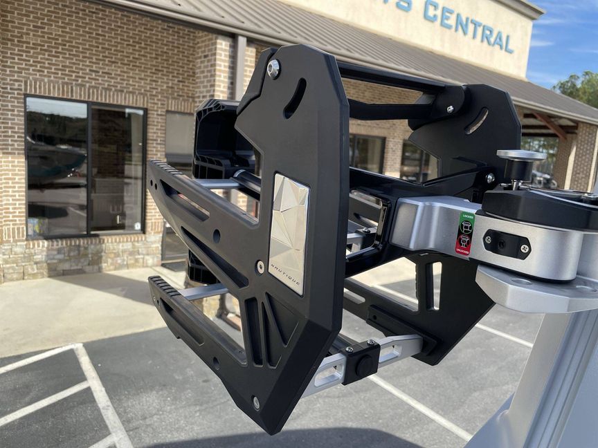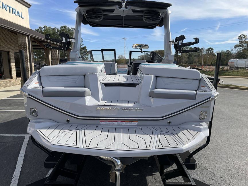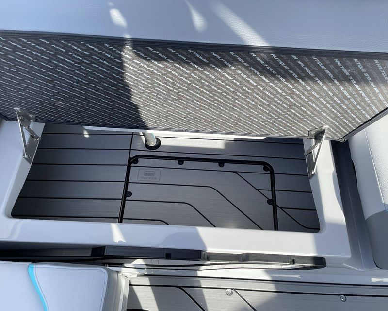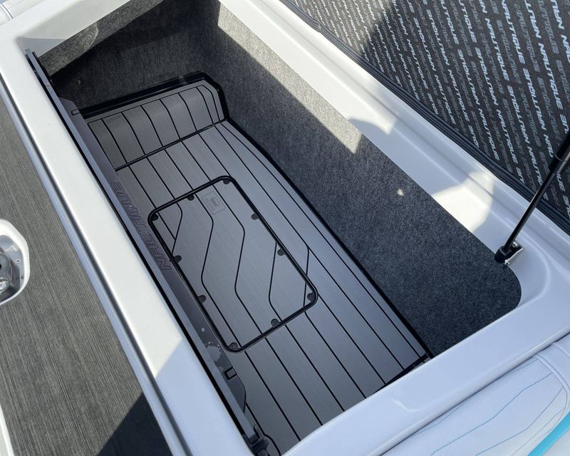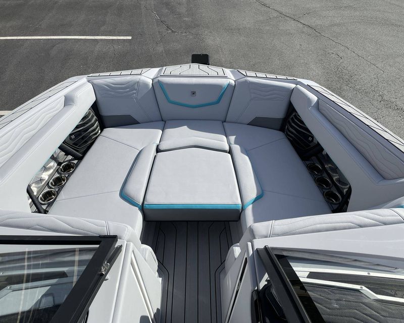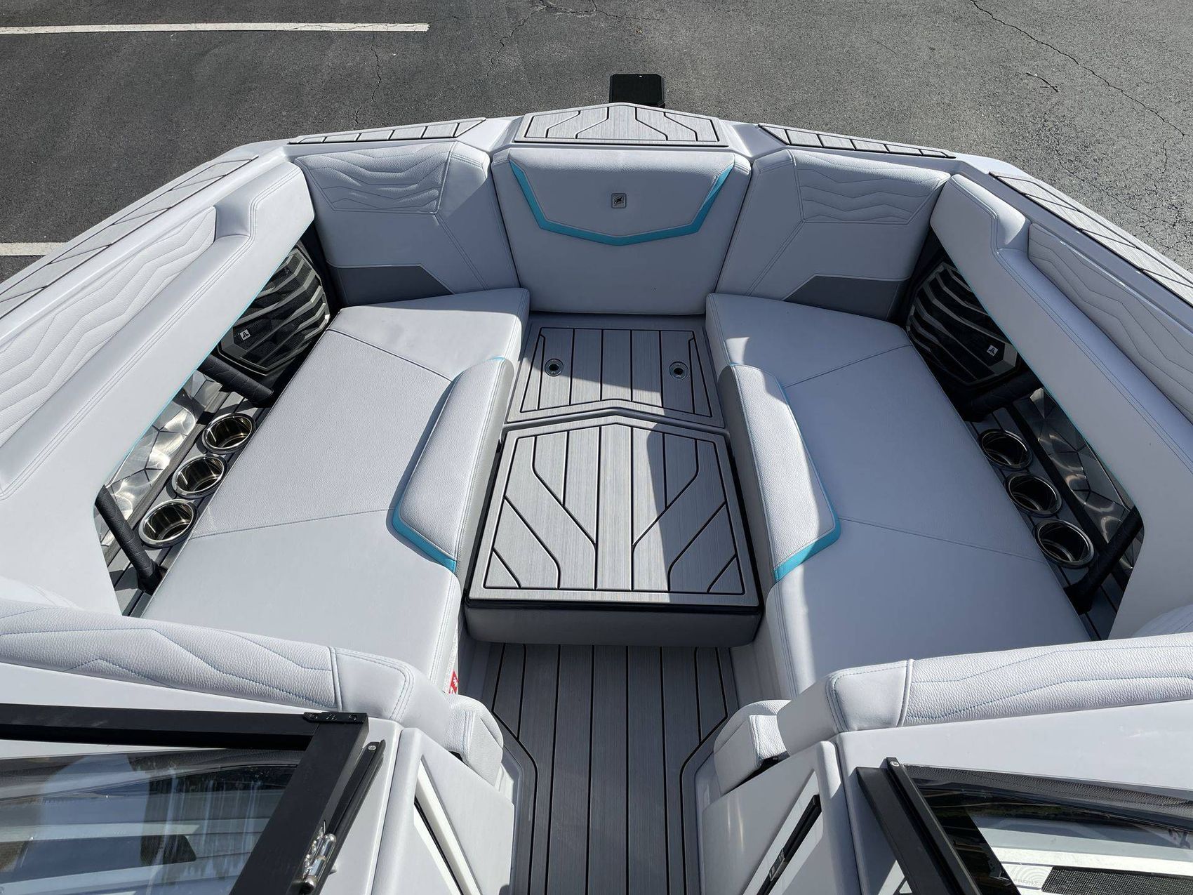Your comfort is our priority. This boat comes equipped with an additional 1,200lb ballast, a heater with defroster, an enhanced lighting package, underwater lights, a LINC Panoray Navionics map, a Nautique integrated steering assist, a tandem spoke leather steering wheel, and wireless chargers strategically placed in the pockets and glovebox.
