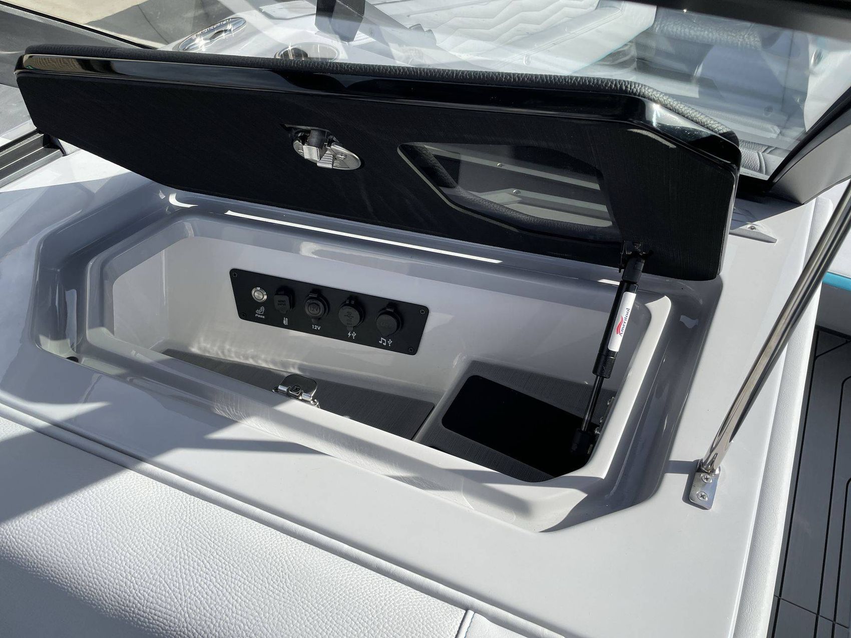Offering unrivaled comfort, the boat features retractable bow armrests, a bow filler cushion, and heated seating for the driver and passenger.