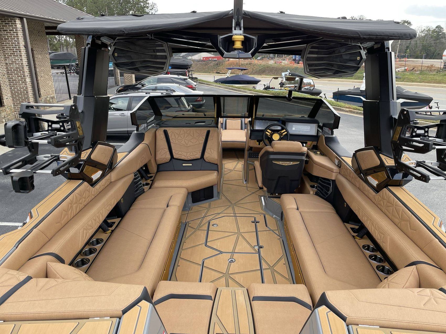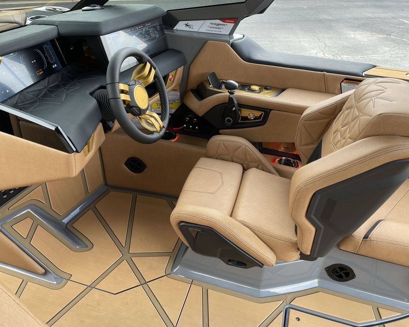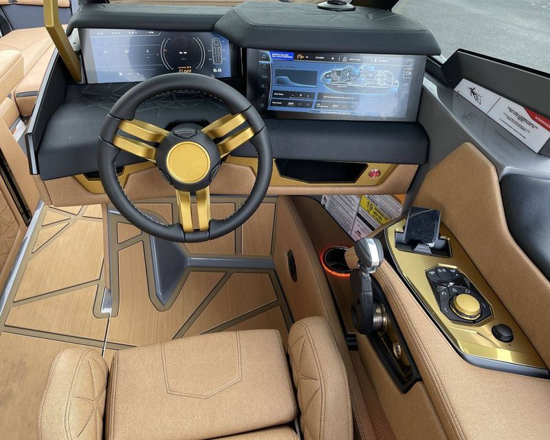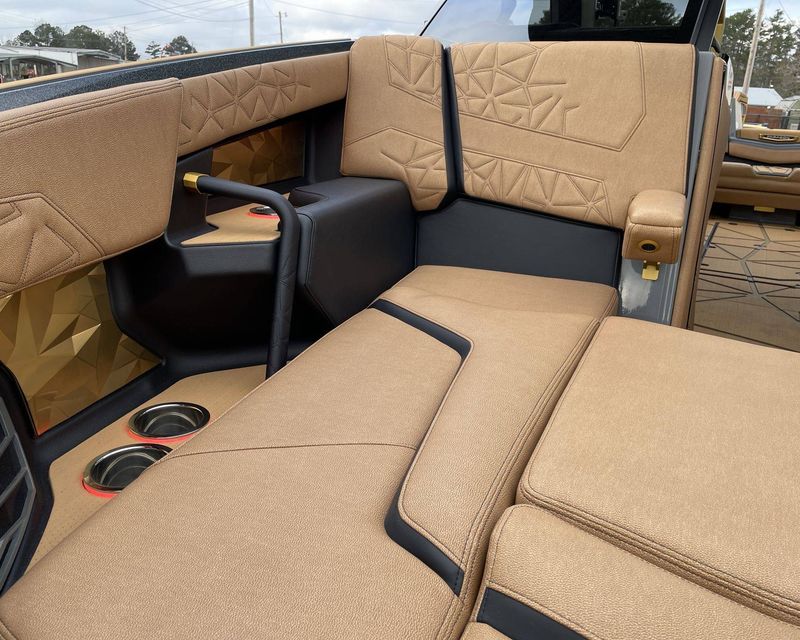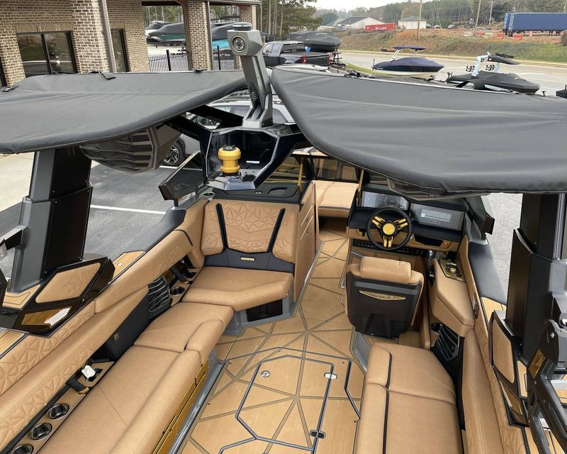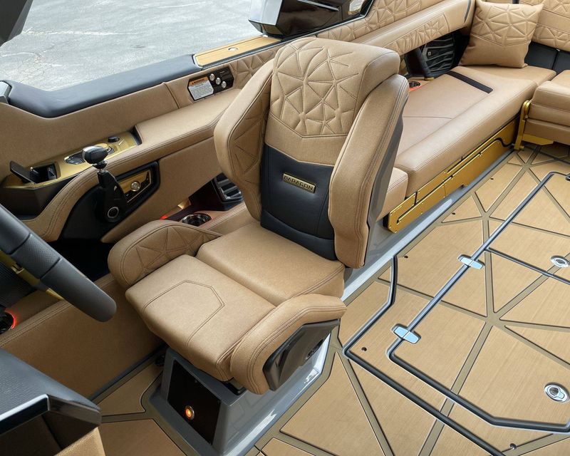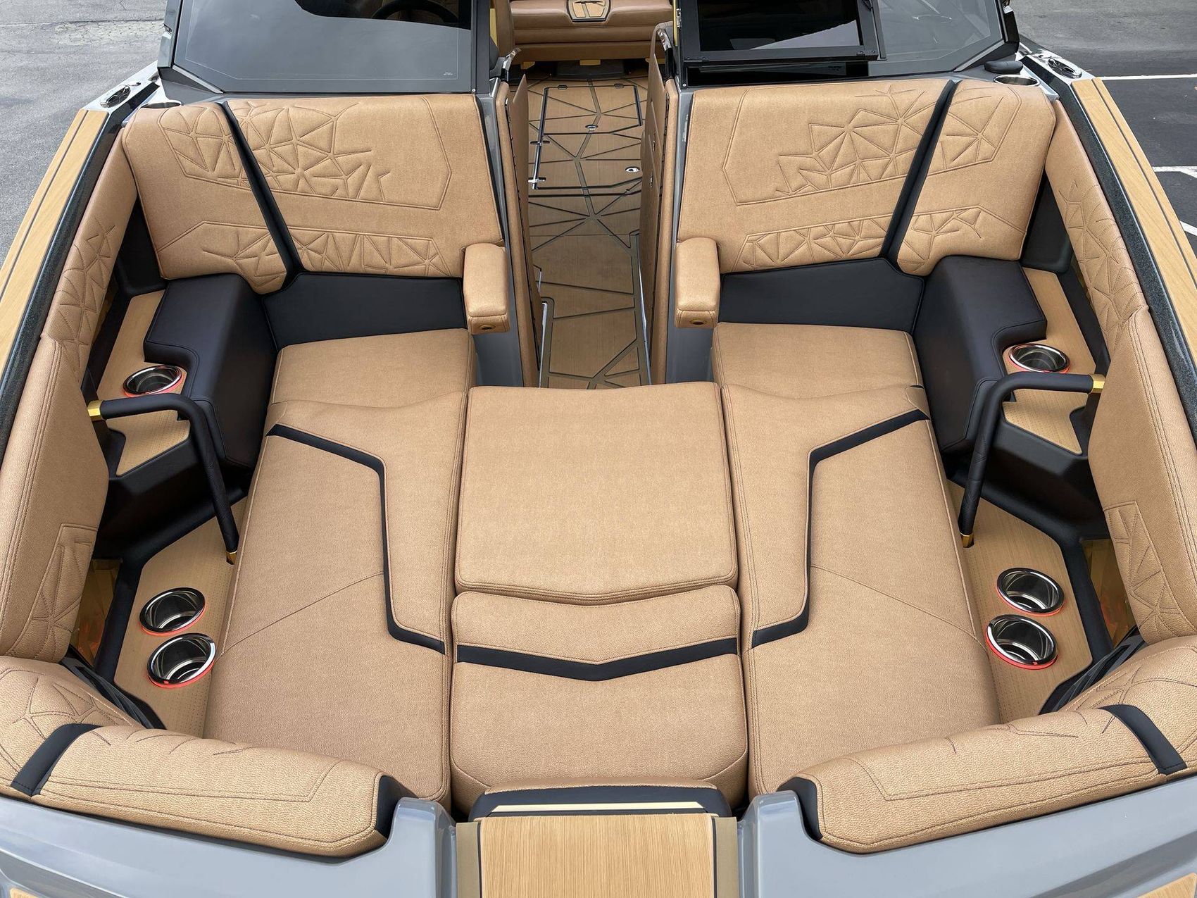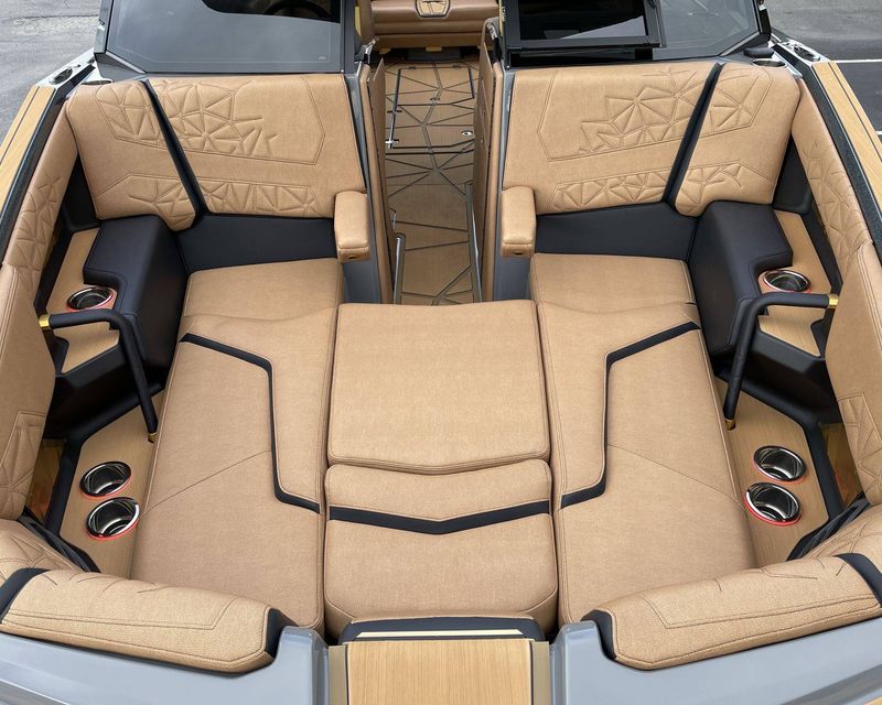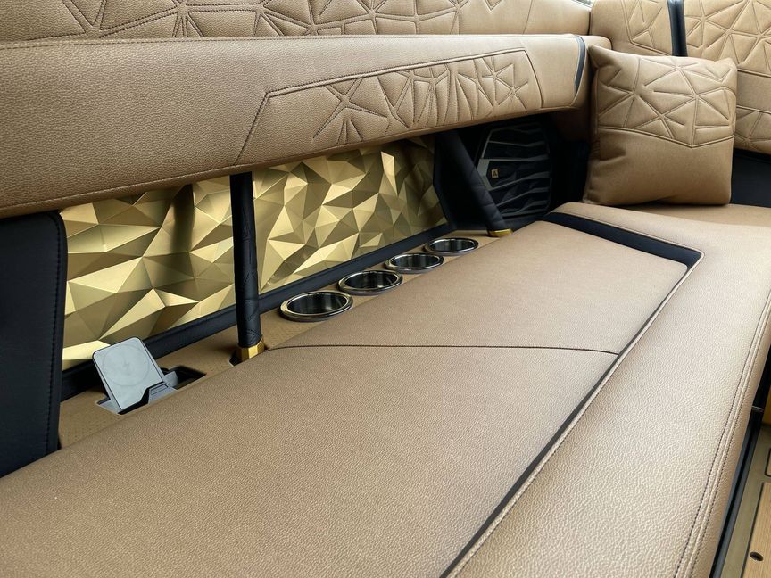 Keeping comfort and convenience at the forefront, we have included an Air Pump Inflator System and additional 1,200 lbs Ballast for superior balance and stability. For those chilly trips, benefit from our defroster-equipped heater facility. Maximizing the user experience, we have also integrated LINC Panoray - Navionics Maps, Surf Select with Surf Switch technology. The bespoke interior includes an exquisite set of pillows, heated driver's and loveseat, and selectable seating arrangements including a Bow Filler Cushion.