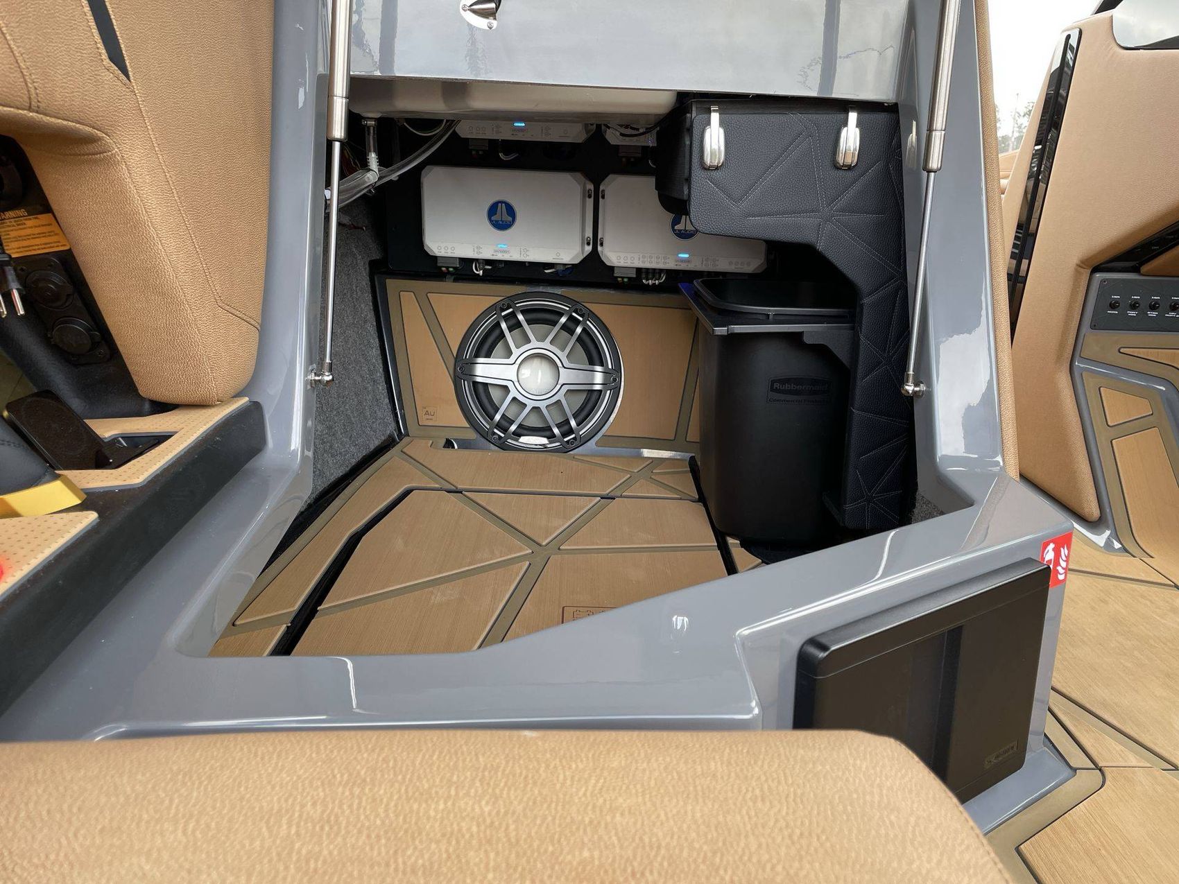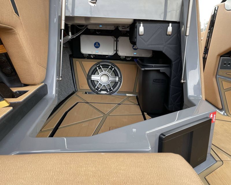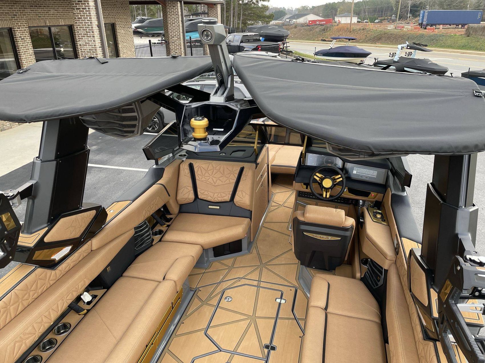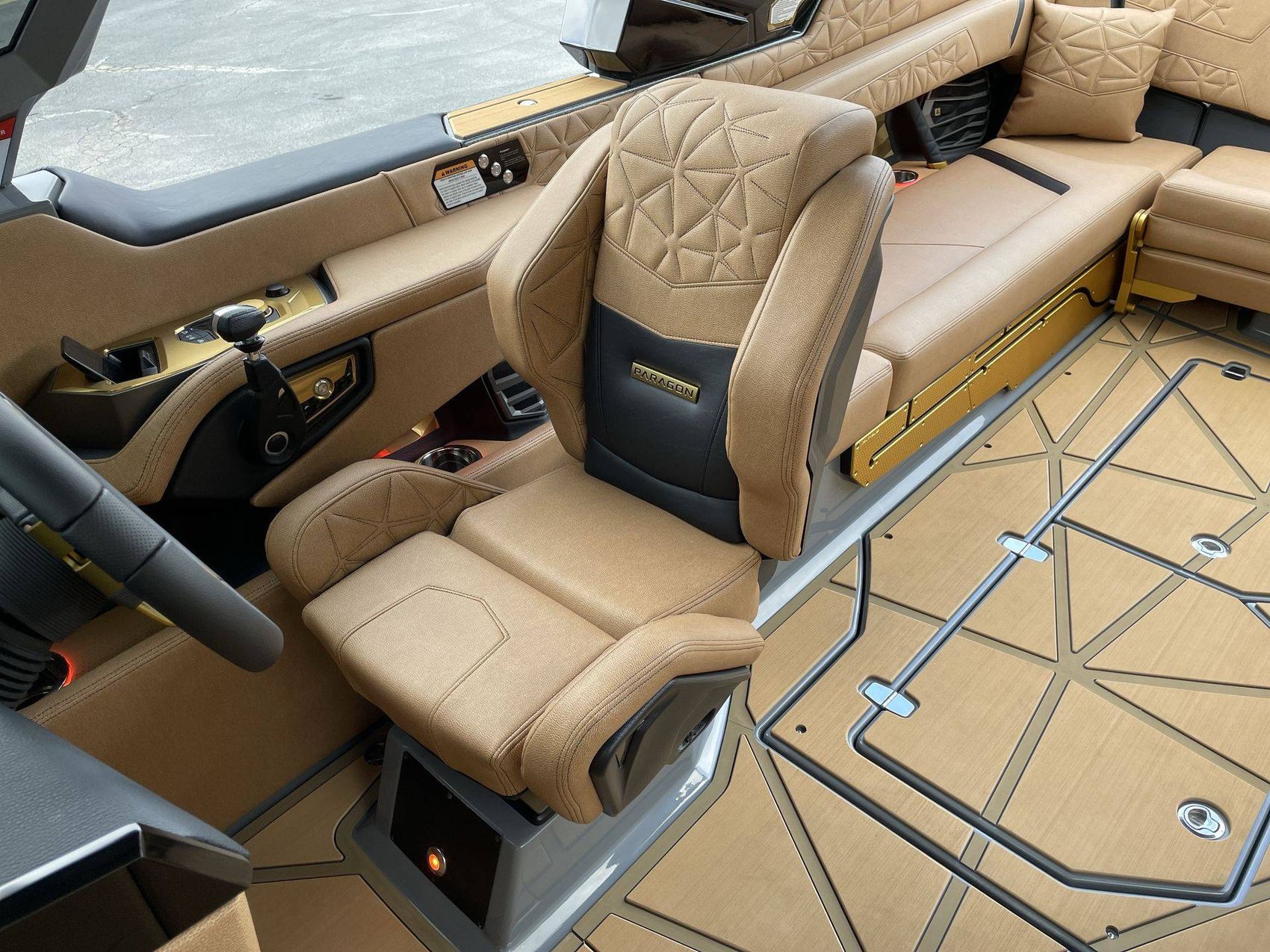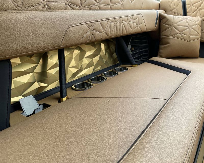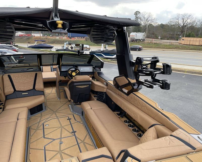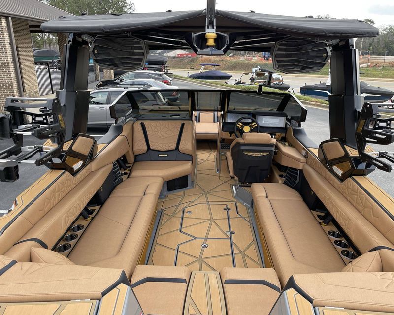 Keeping comfort and convenience at the forefront, we have included an Air Pump Inflator System and additional 1,200 lbs Ballast for superior balance and stability. For those chilly trips, benefit from our defroster-equipped heater facility. Maximizing the user experience, we have also integrated LINC Panoray - Navionics Maps, Surf Select with Surf Switch technology. The bespoke interior includes an exquisite set of pillows, heated driver's and loveseat, and selectable seating arrangements including a Bow Filler Cushion.