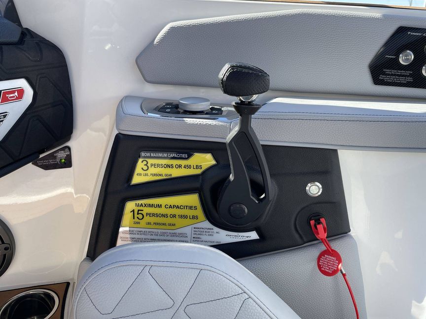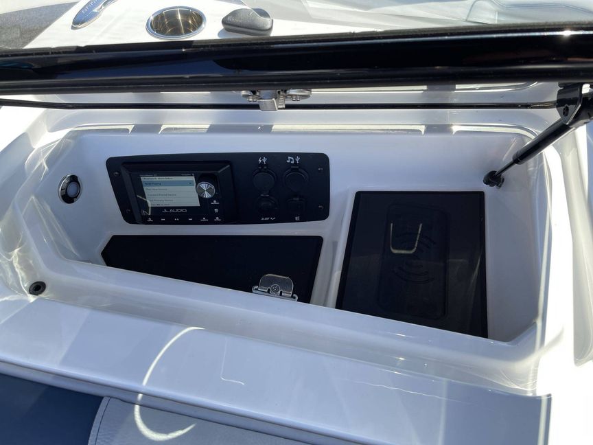 The boat comes with a full US-Canada Map card, a complete Dual Battery Maintenance System 110 with integrated charger, convenient Air Pump Inflator System, Supplemental Ballast providing an additional 500 LBS, a comforting Heater with Defroster, and a platform access Ladder. Let's not forget the functional docking, daytime running lights, and underwater lights which provide great visibility