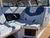 The Super Air Nautique GS22 features a beautiful chromax badging in Bright Chrome Finish with Illusion Frost. It sports a Mystic white interior deck and main stripe color with a Admiral blue metal flake accent striping. The hull bottom, FCT color, FCT secondary color, platform color, and NSS covers all boast the same Mystic white which creates a cohesive and eye-catching appearance. Tee interior is lined with Haze grey and Admiral blue, combined with Mystic white seat boxing. The non-skid color is Mocha Brown, giving a chic touch to the overall design.