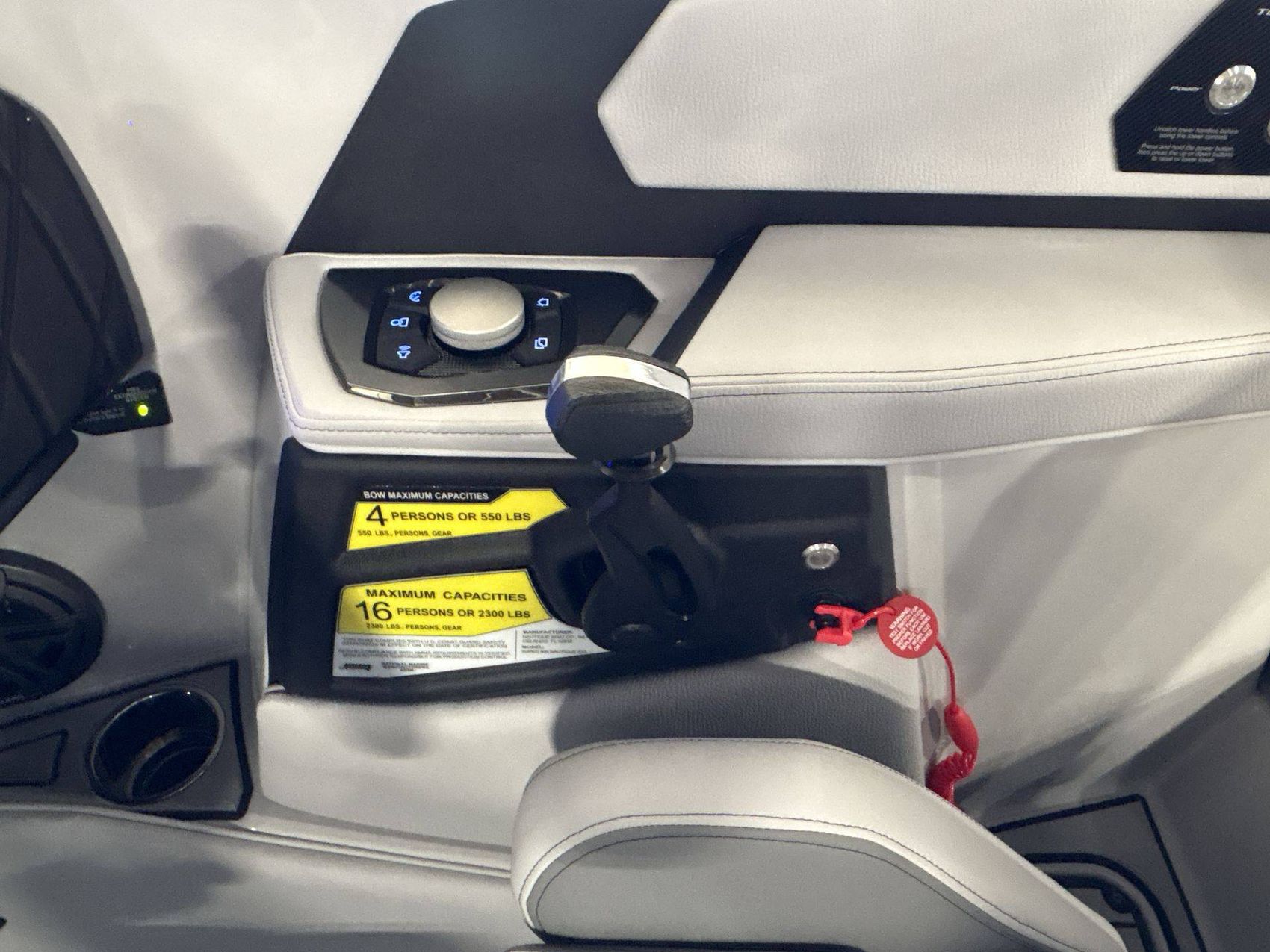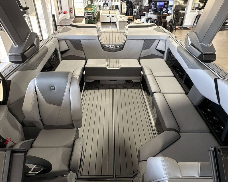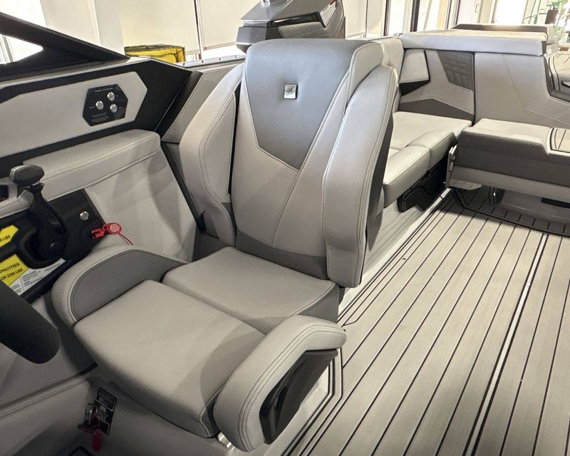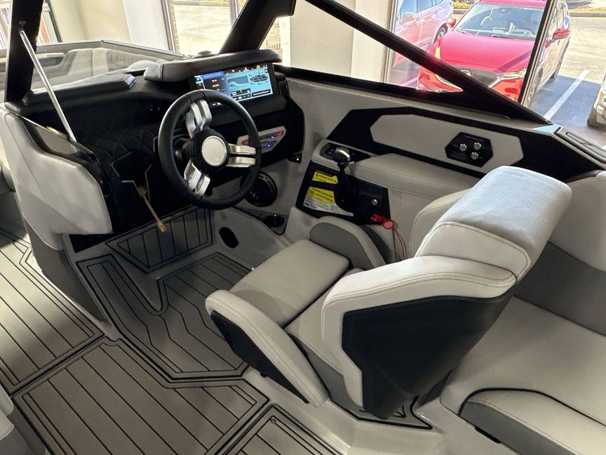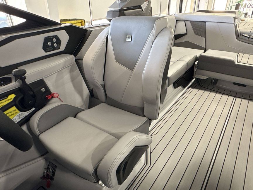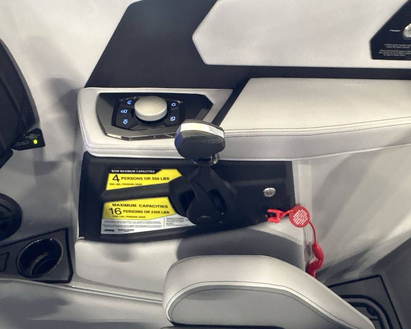 Our yacht comes with several additional features such as Ballast - Supplemental (Additional 500 LBS), a Heater with Defroster, Docking/Daytime Running Lights, and Underwater Lights for that extra convenience and safety. Take total control with special features like Nautique Steering Assist, Tandem Spoke Leather Steering Wheel, and Wireless Charging.