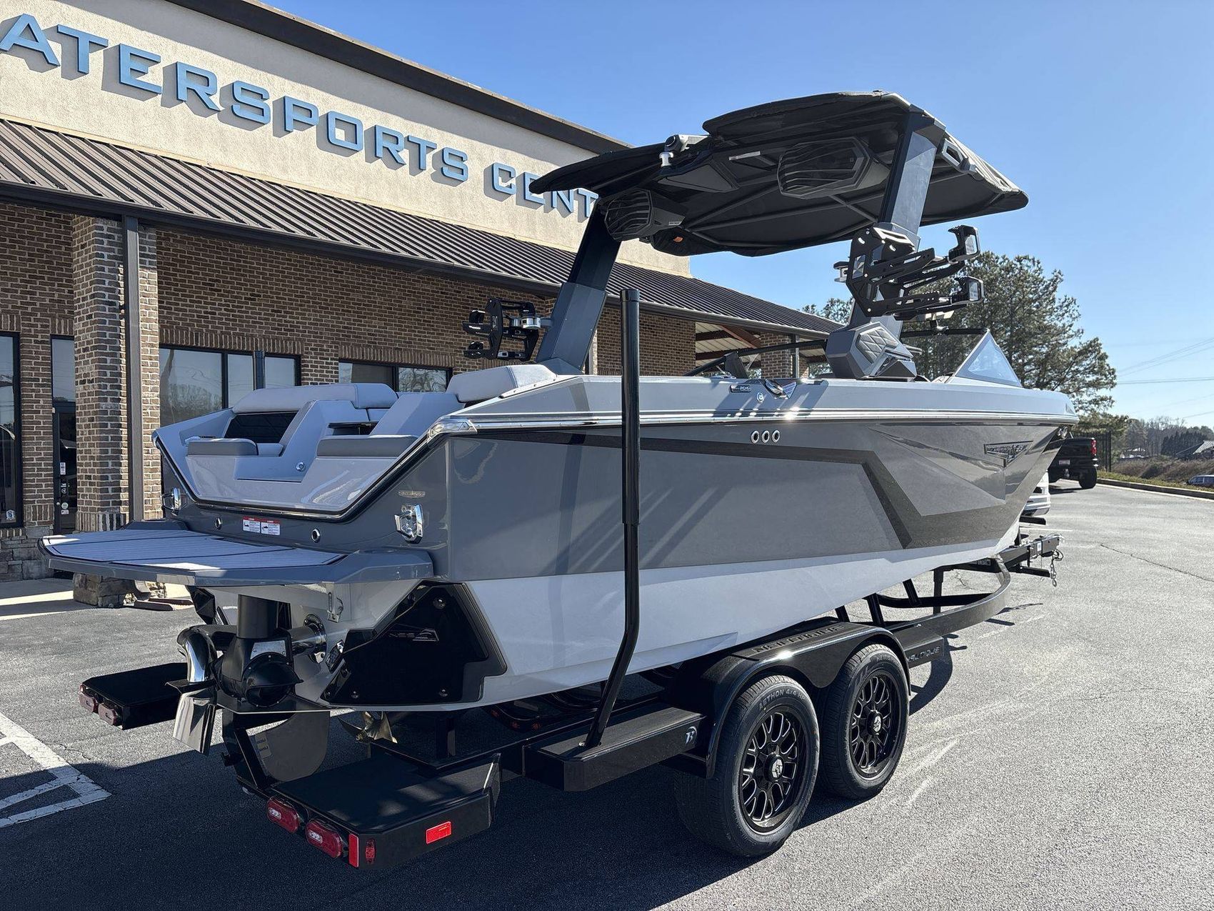 The 2026 Super Air Nautique S23 comes with a telescoping Flight Control Tower System and a Tower Prep Kit featuring JL Audio M Series Elite(Pre-Wired 4 Channel Amp) to optimize your on-water adventures like never before.
