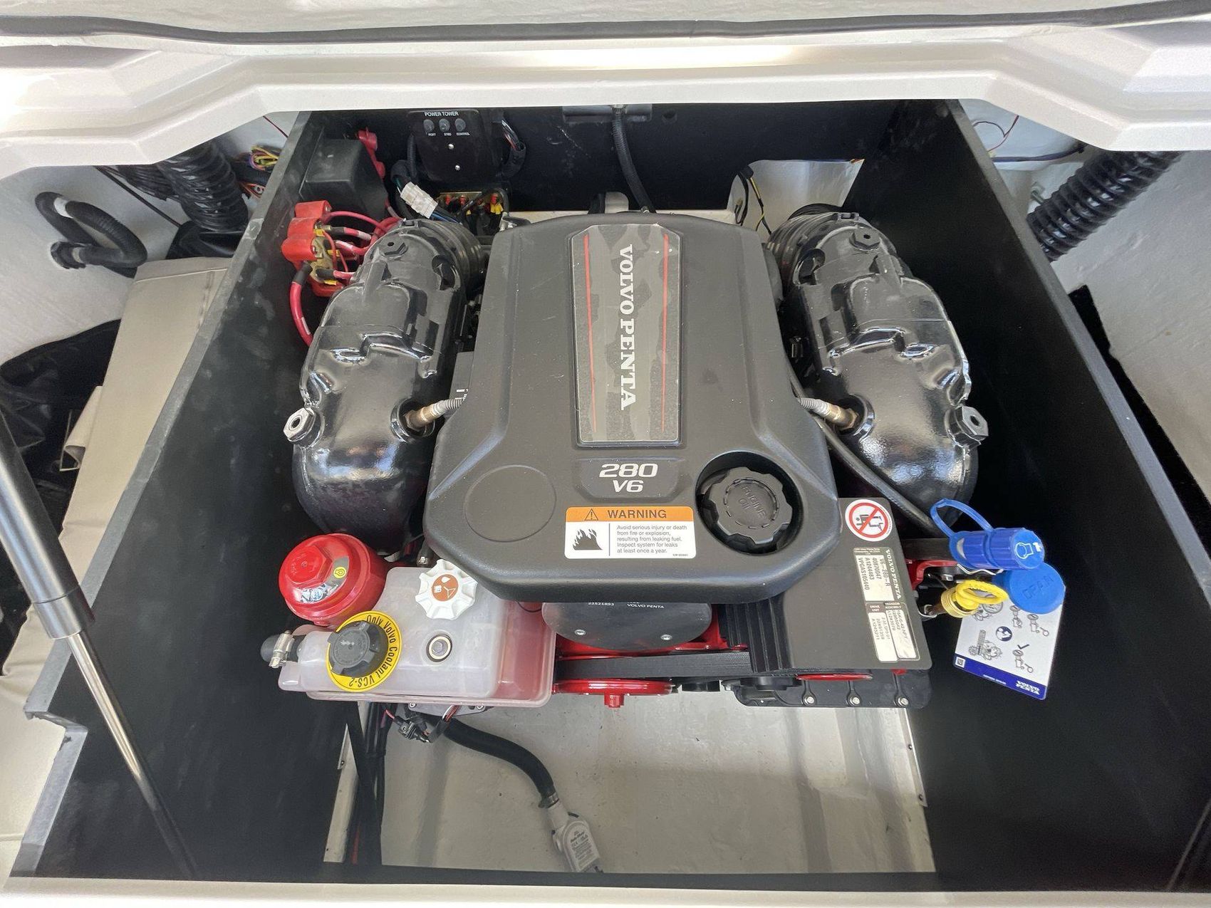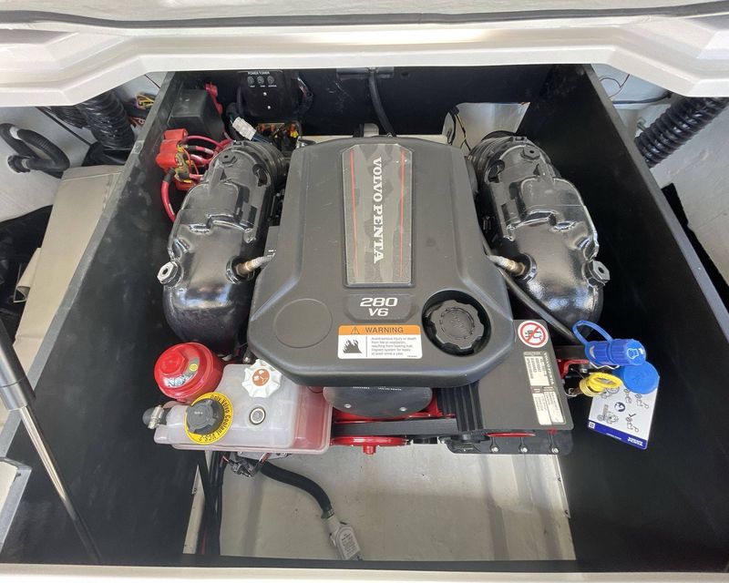 At the heart of this beast is a powerful Volvo V6 280 G5 DP engine that offers outstanding performance without sacrificing fuel efficiency. This robust engine ensures every nautical adventure is backed by raw power, reliability and effortless sailing.
