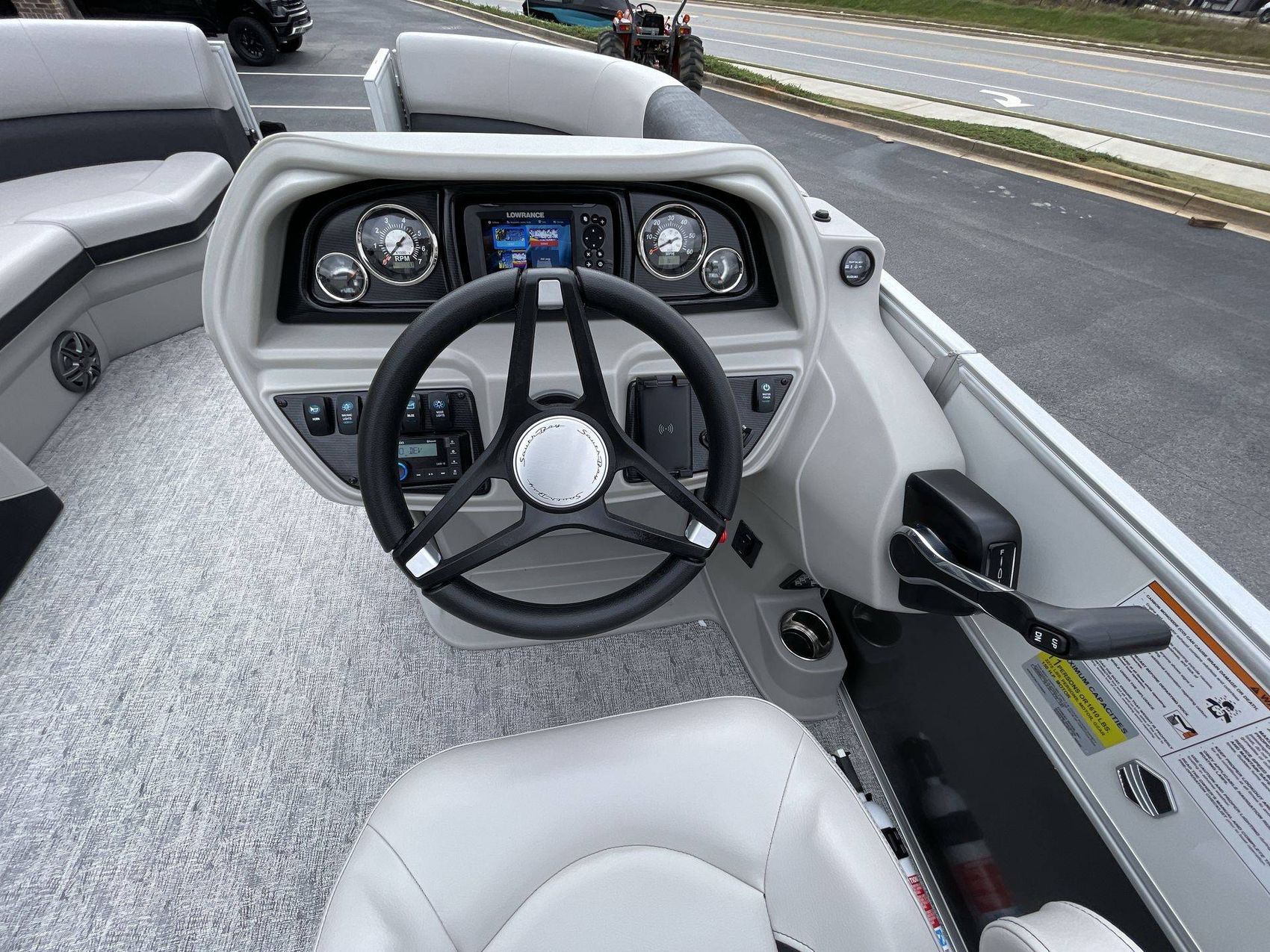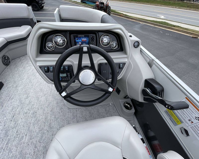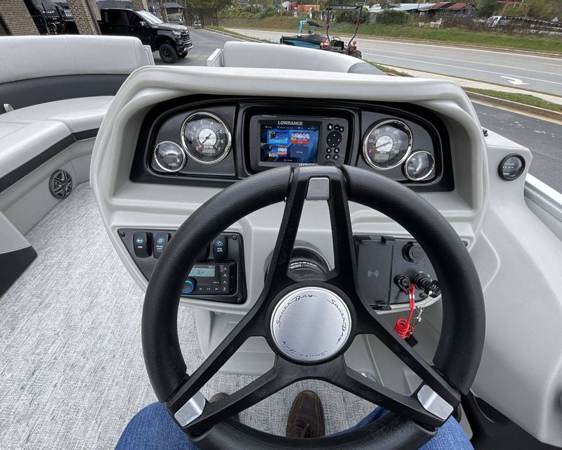 Experience an enhanced boating experience with the Premium Polymer Helm Station that exhibits a Lowrance Hook 5 Display. The boat includes a heavy-duty folding table for your convenience and an additional table base (LE). Not to forget a SS Ski Tow Bar, ready for thrilling water sports.
