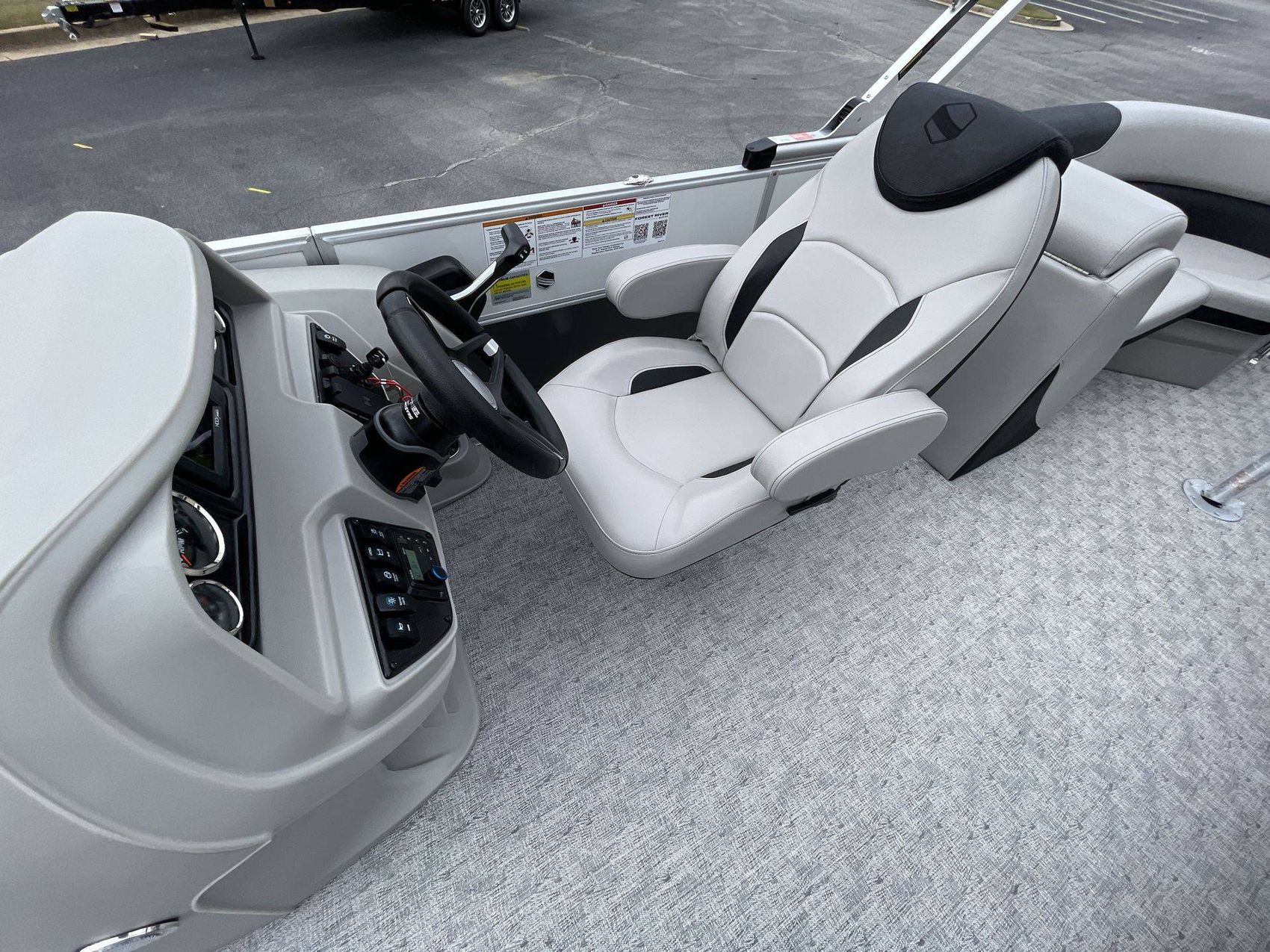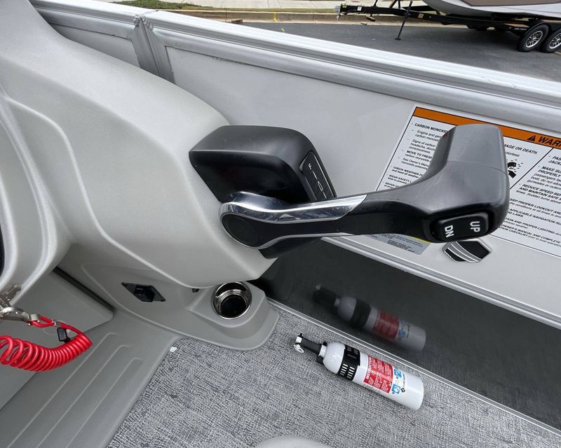 The STD 20" Shaft Transom and Coastal Concrete Standard highlight the boat's functional features. Further adding to its list of features is a Power Electric Bimini Top Standard, coupled with a Black Canvas Color Mooring Cover. This boat is also pre-equipped with a Mooring Cover Coal and a Suzuki Mechanical Pre-Rig.