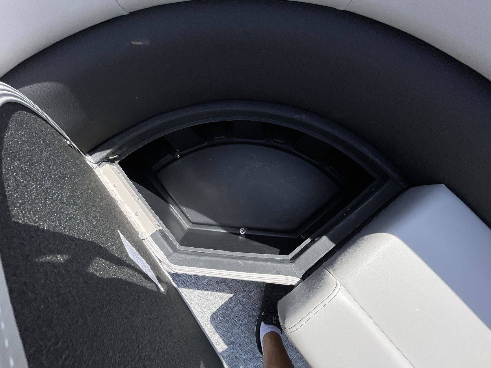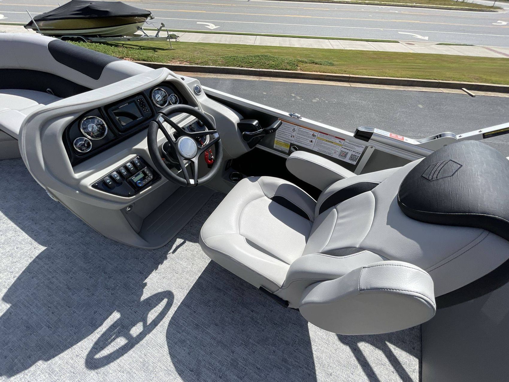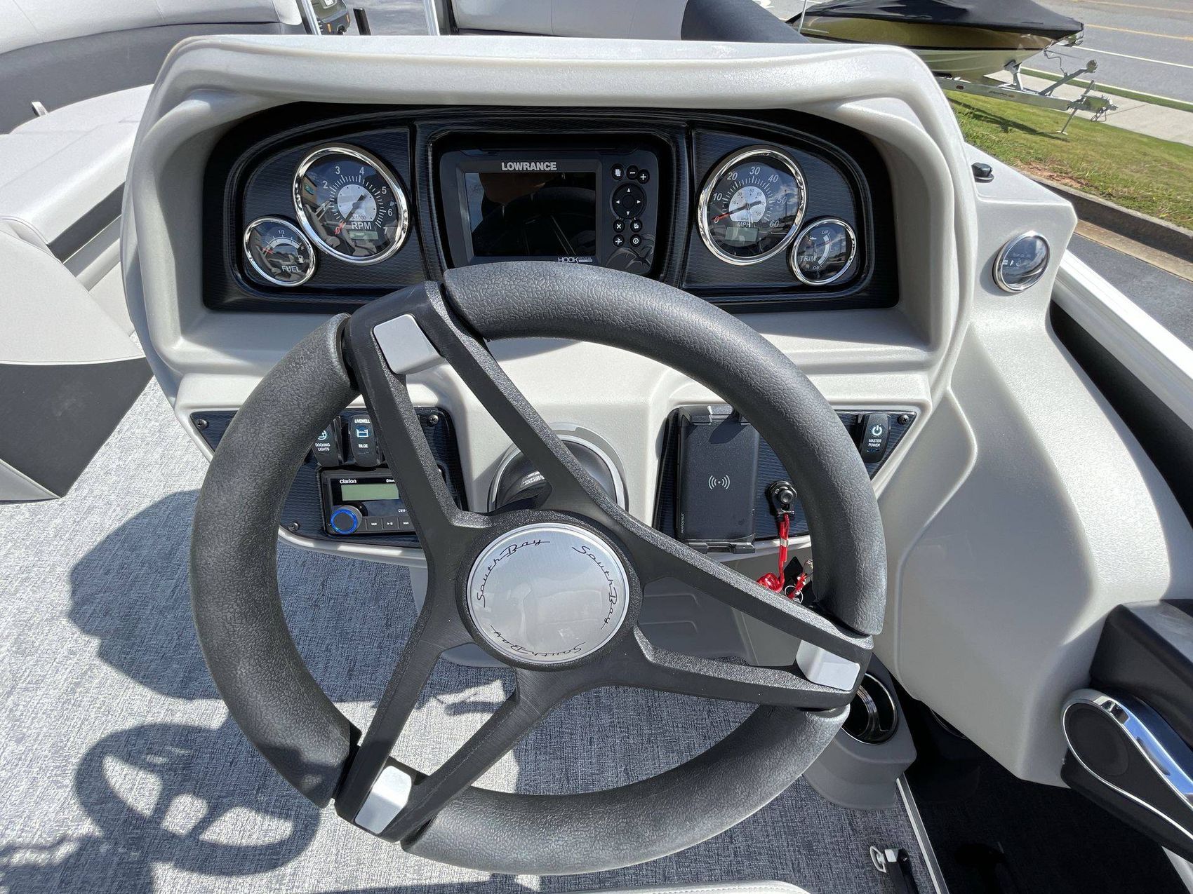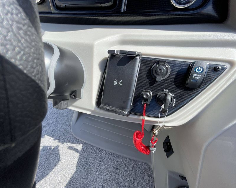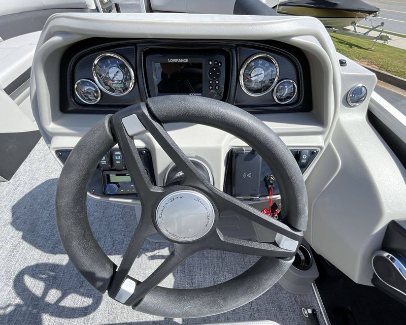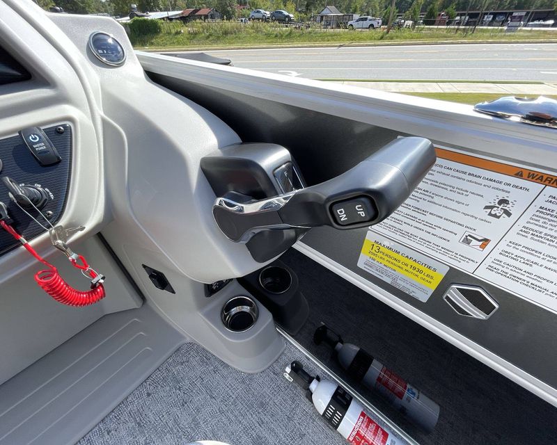 Your experience is further enhanced with a Premium Polymer Helm, remarkable for its strength and stability. Stay informed and in control with the Lowrance Hook 5 Display, an incredible asset for navigation and monitoring. For your leisure needs, the boat includes an HD Folding Table with an Additional Table Base (LE) - ideal for meals, drinks or relaxation on the open water. Lastly, the SS Ski Tow Bar Standard is perfect for fun towed water sports.