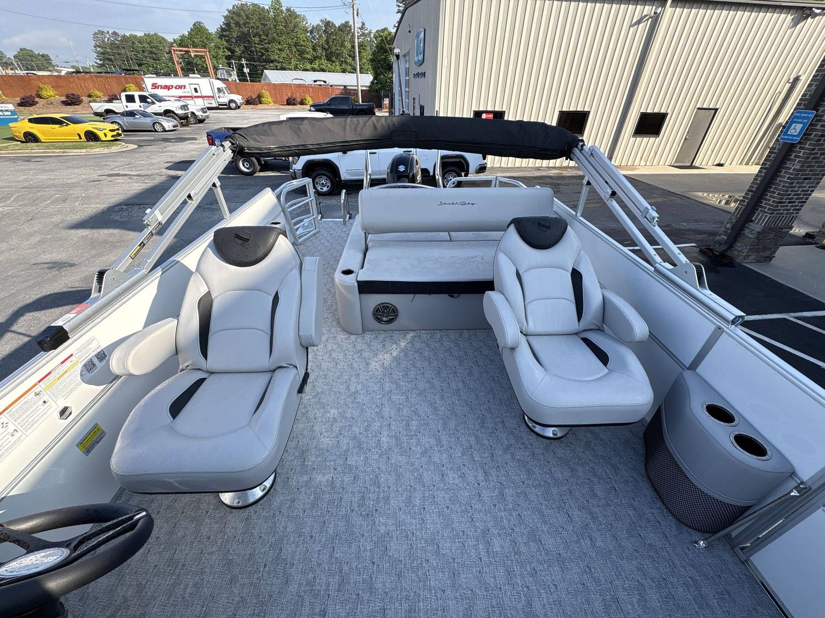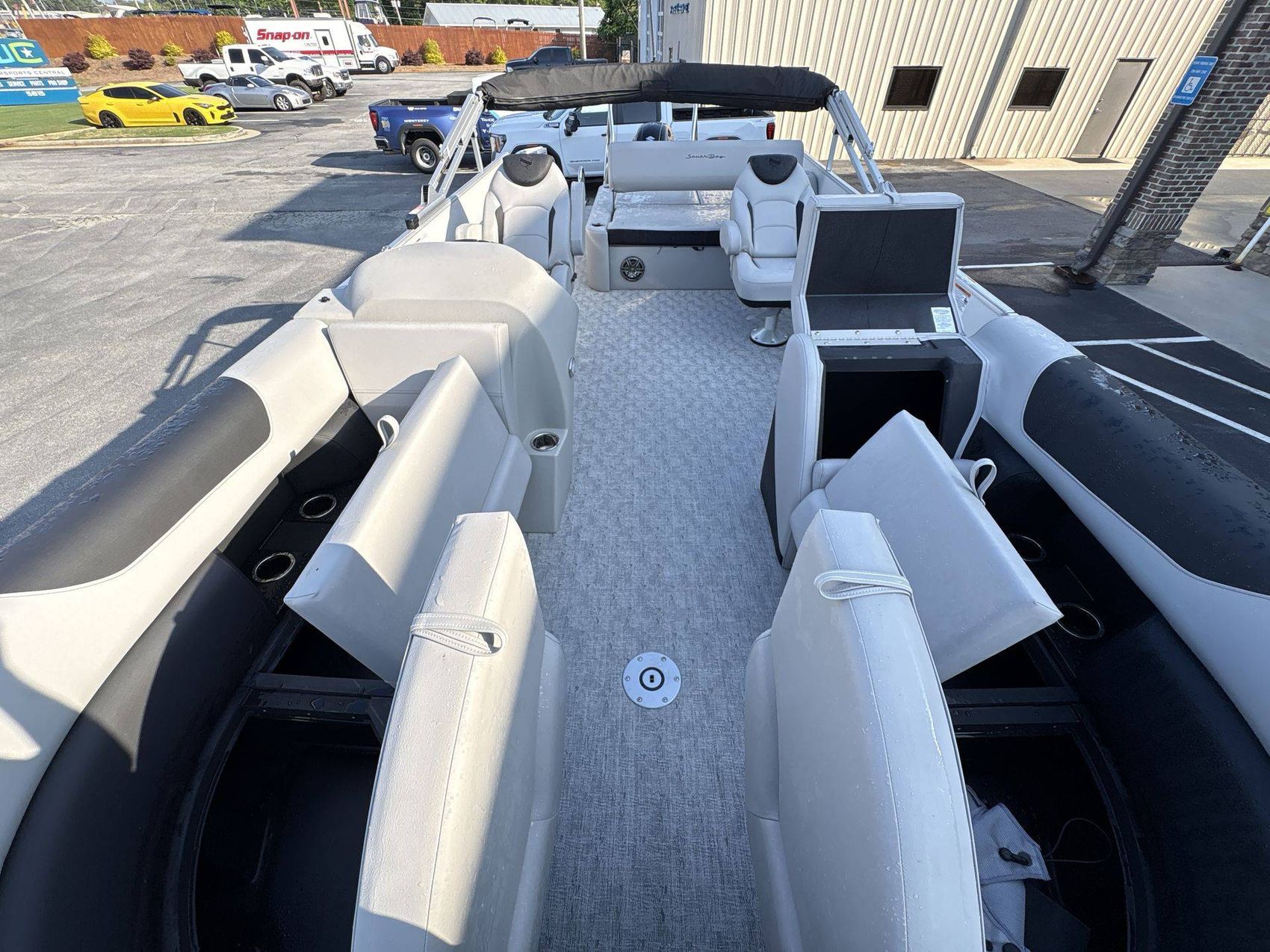 For your safety, the boat is equipped with a Stainless Steel Ski Tow Bar. For your comfort, it boasts a stylish Mooring Cover with a coal color, complemented perfectly by the striking Black Canvas Color.