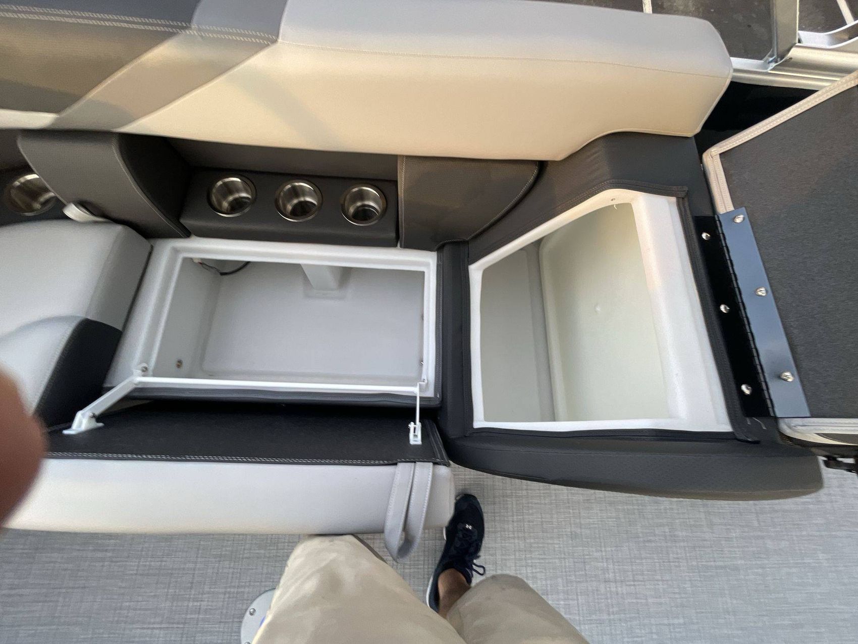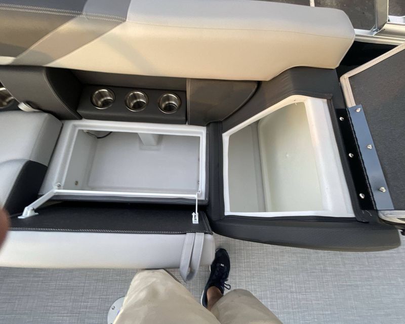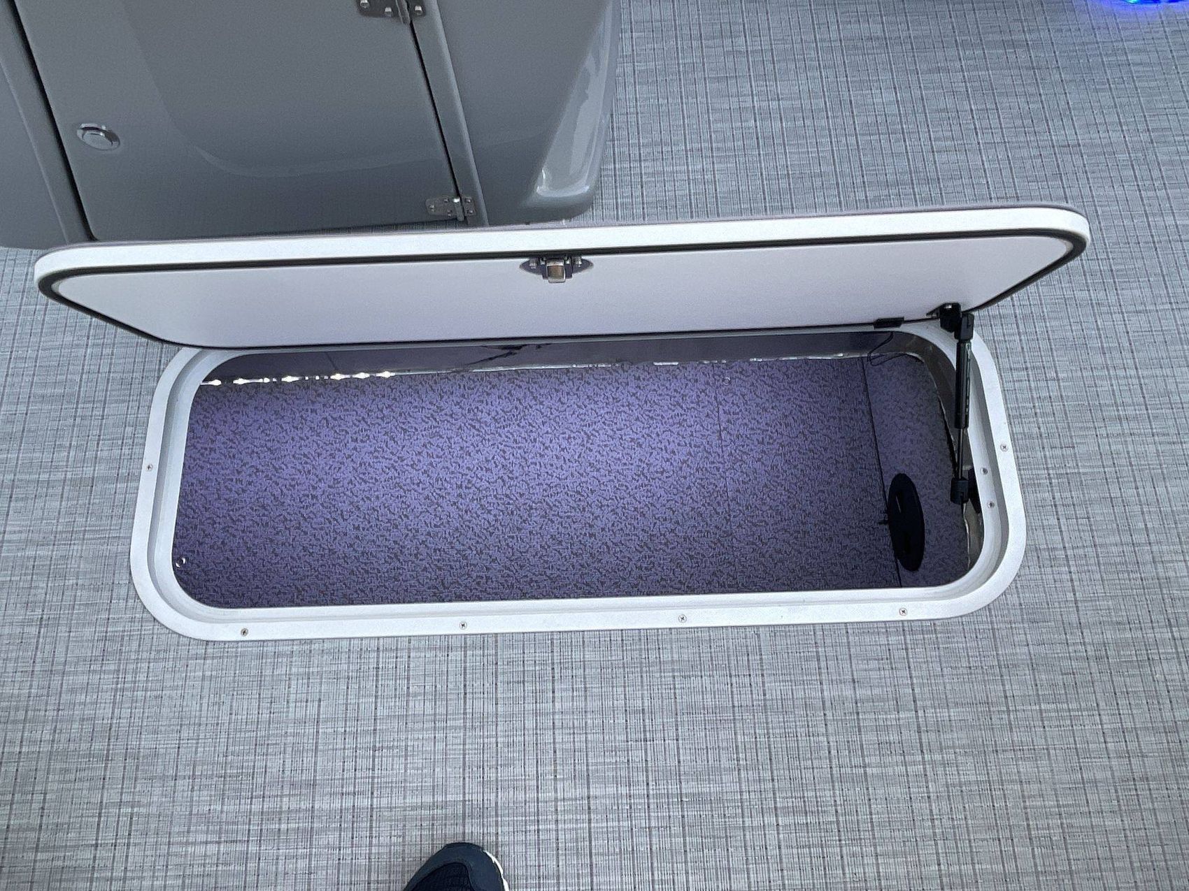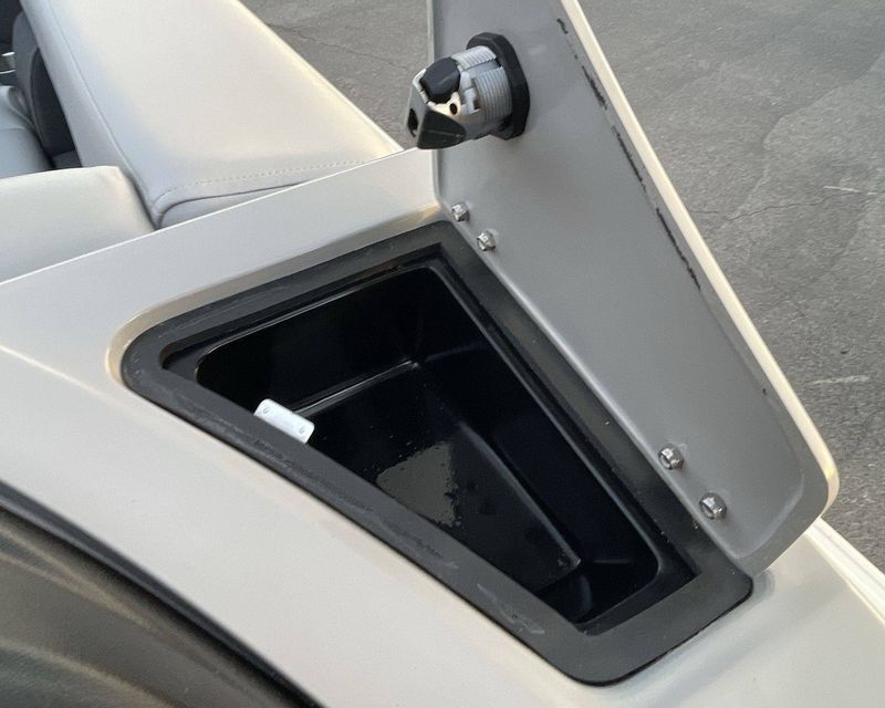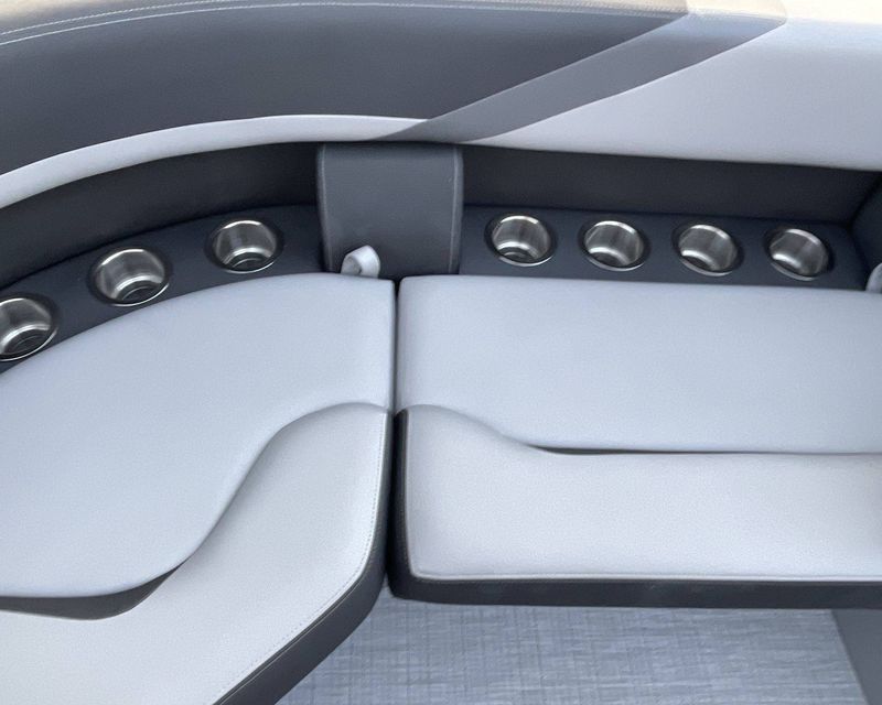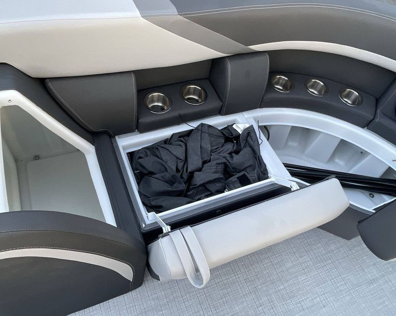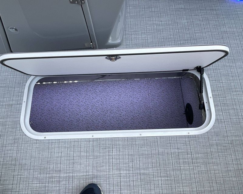 For additional storage, the boat has spacious In-Floor Storage measuring 24"W 79"L. The flooring is a stylish Titanium Standard.