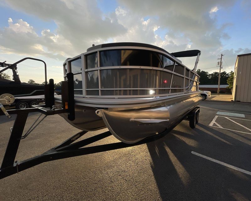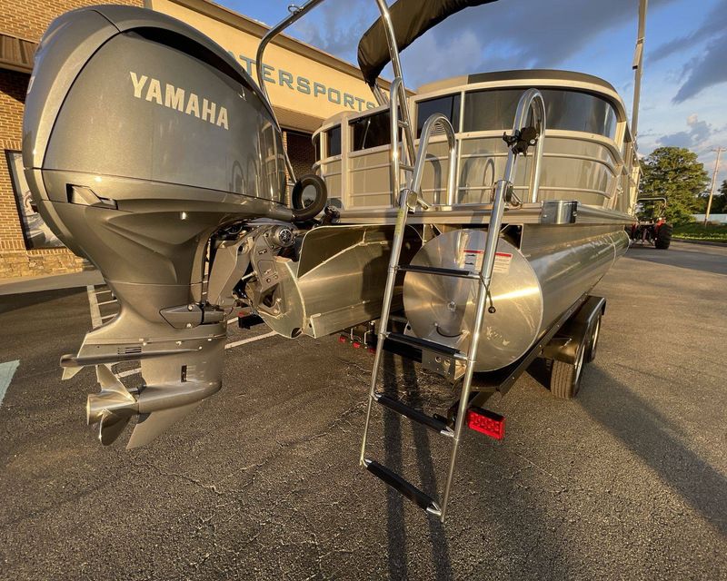 Designed with precision, the boat sports an elegant Silver Rail Std. The panels are creatively crafted with Panel 1 featuring a Black Onyx color, and Panel 2 decorated in Slate. It comes with a classy Smoke TT furniture base and a complementary furniture accent in Black Onyx. The boat also includes a standard 20" Shaft Transom.