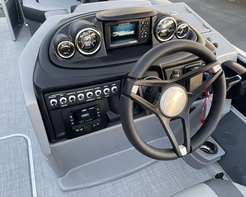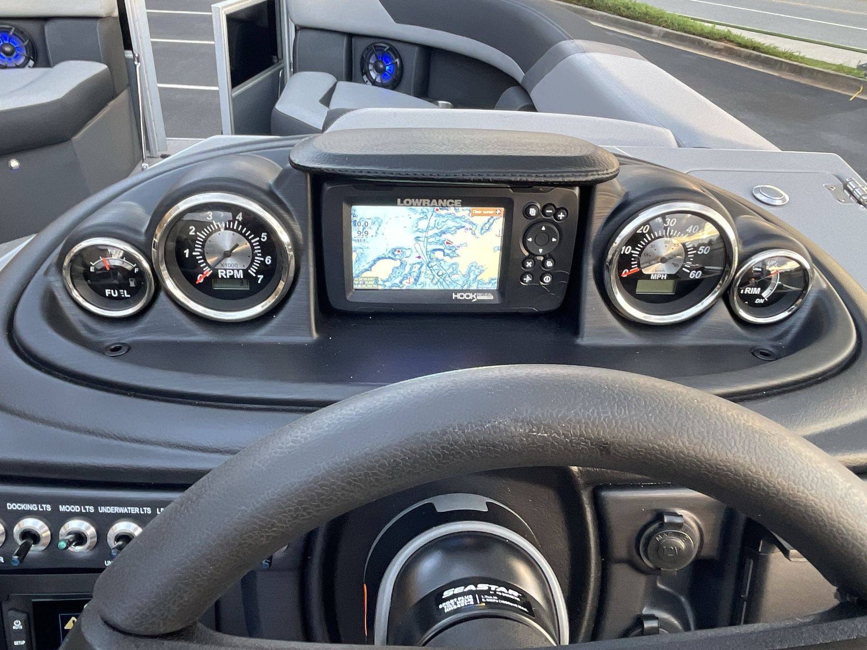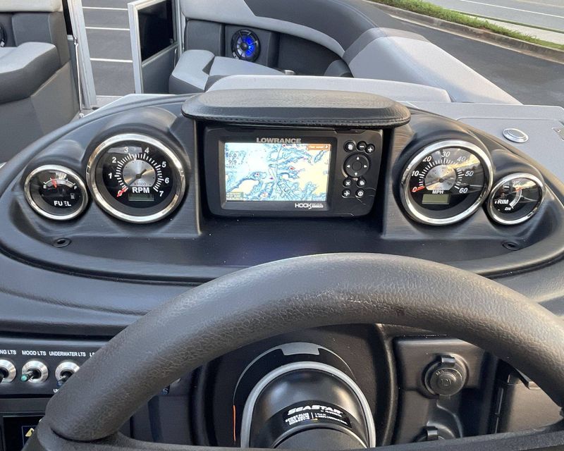 To assist in navigation, the boat features a Lowrance Hook 5 Display.