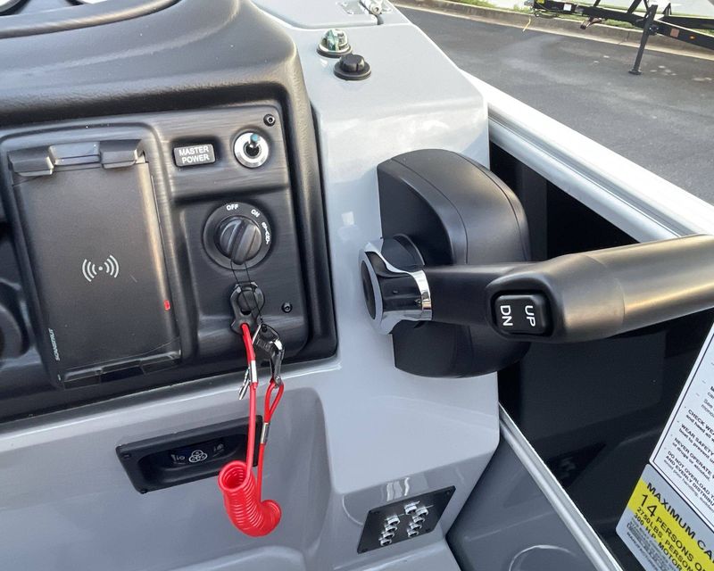 The boat comes equipped with 25" Tubes Full Center Tube, Aluminum Underdeck, and Large Lifting Strakes on both the center tube and the inside of the outer tubes. It also features the Seastar Hydraulic Steering for smooth navigation and a generous 37 Gallon Fuel Tank.