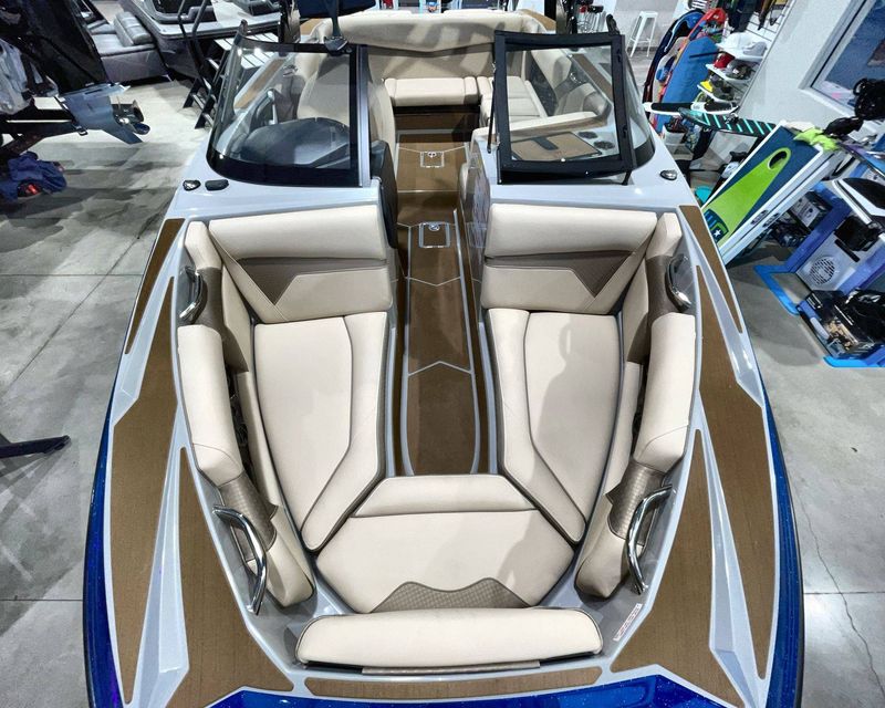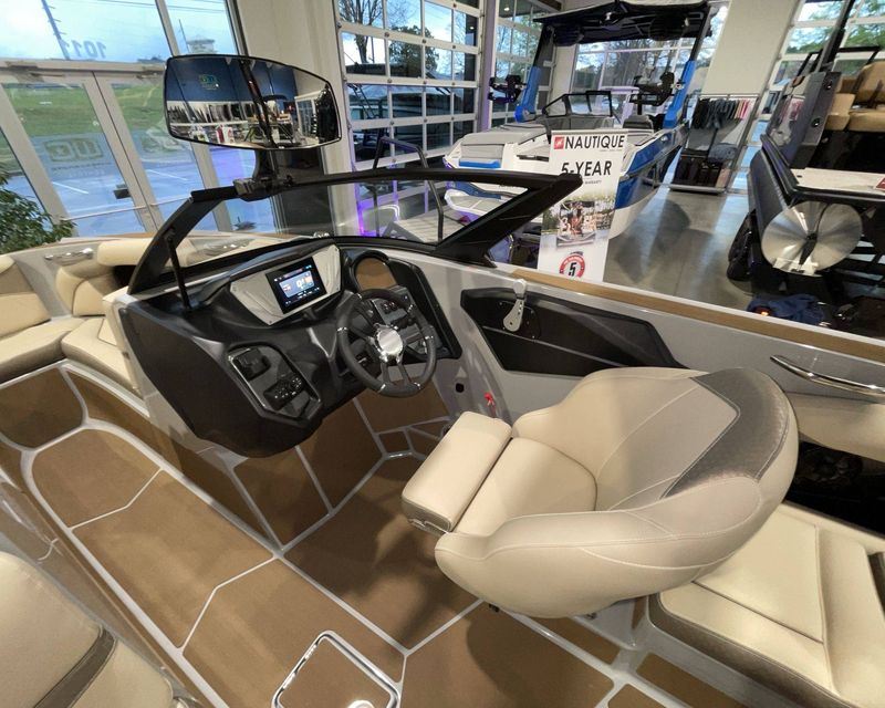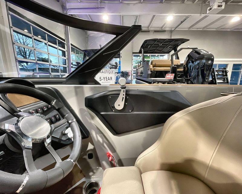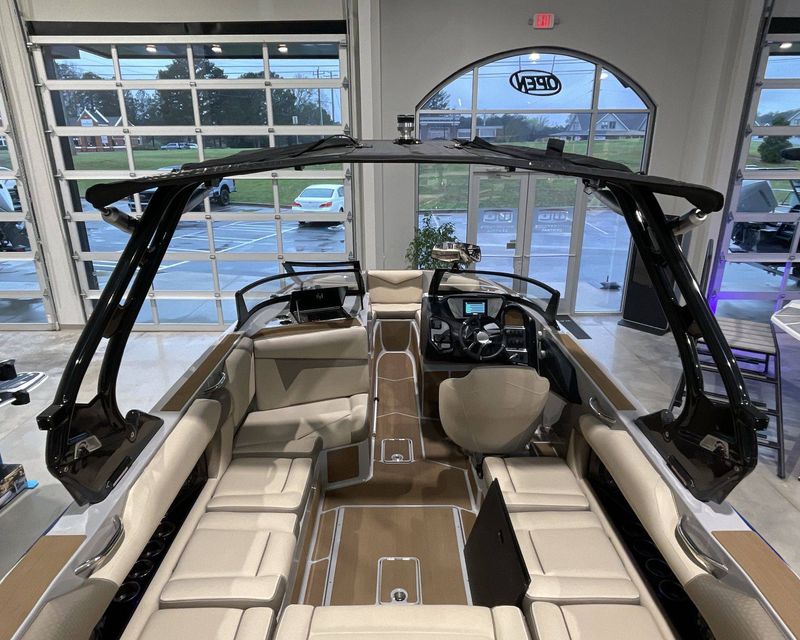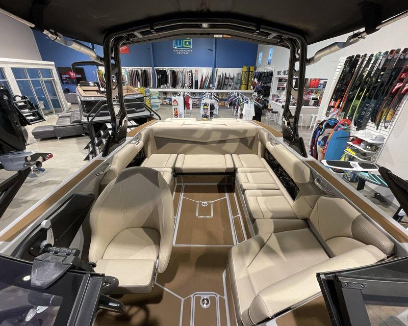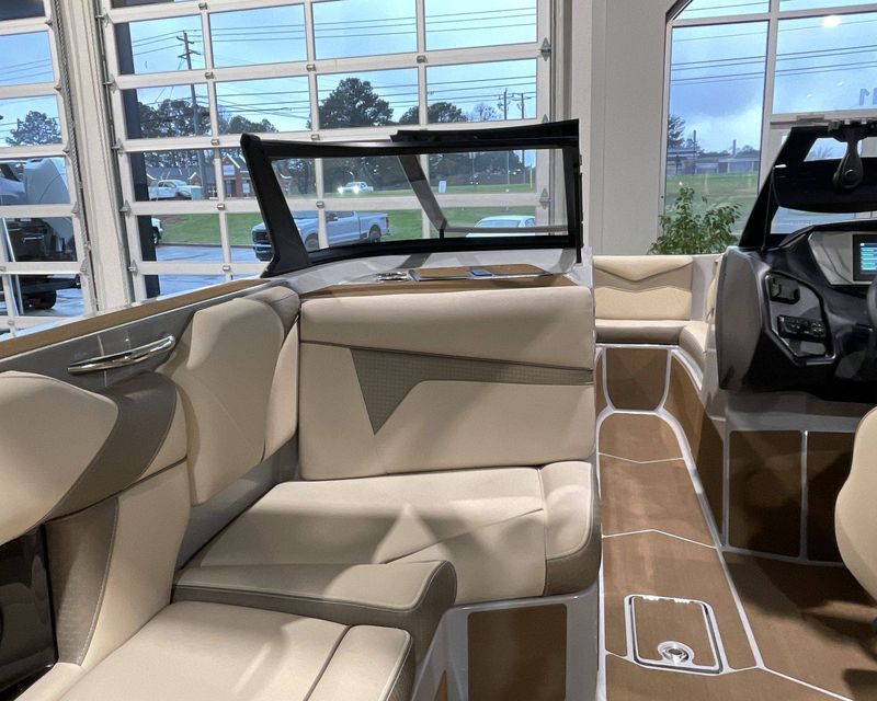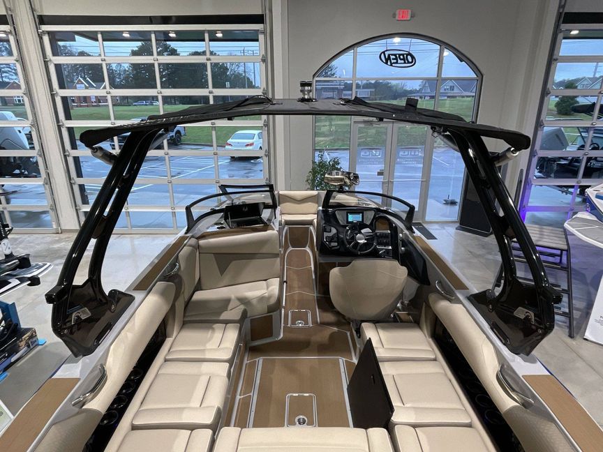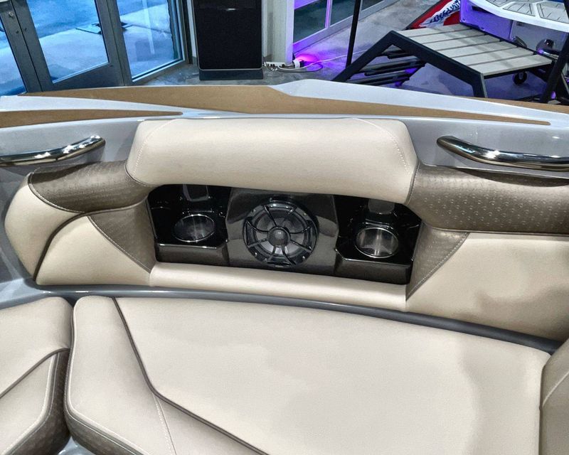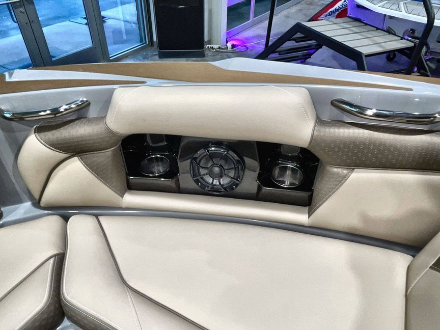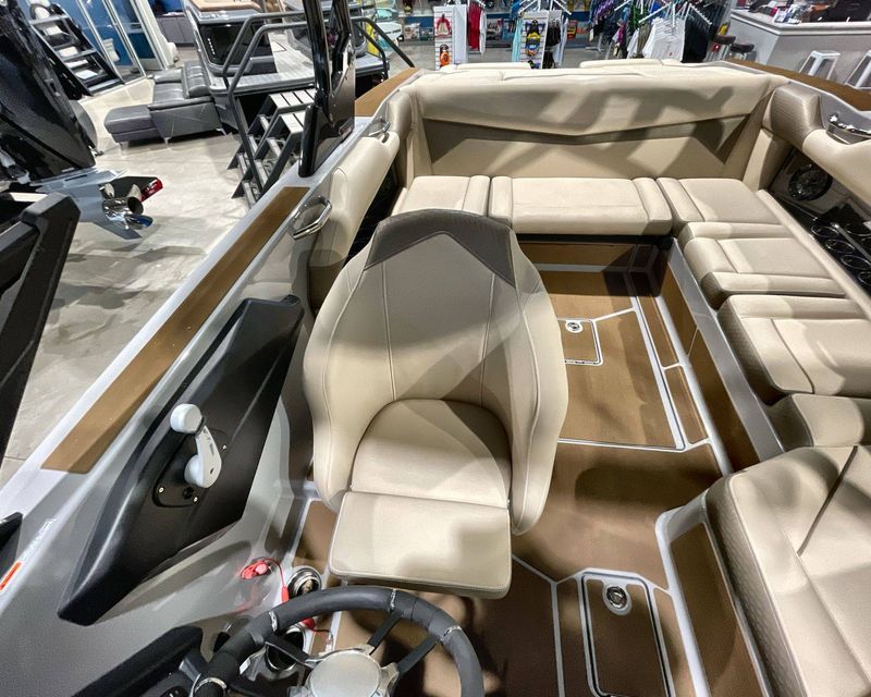 Emphasizing comfort, the boat touts Tan Upholstery Main and Base with a Mocha Upholstery Accent, creating a vibe of elegance.