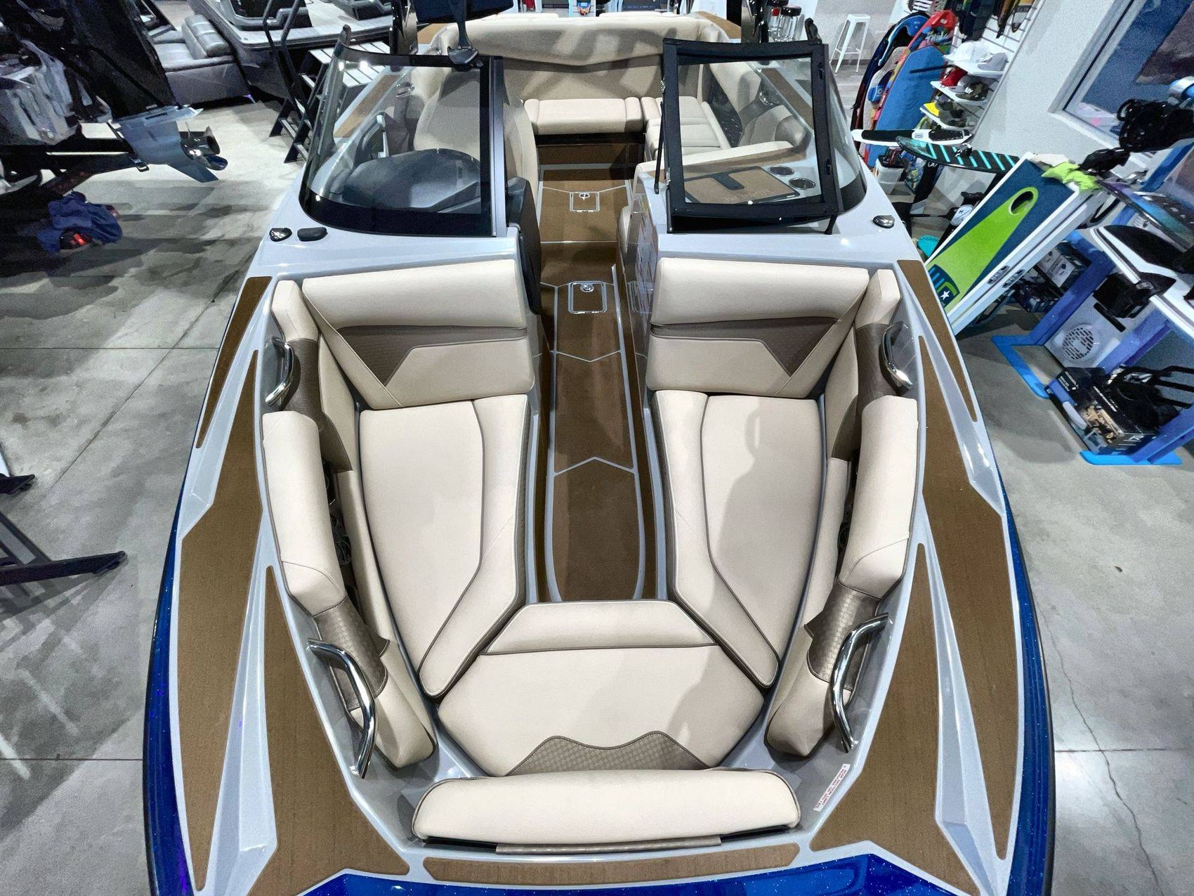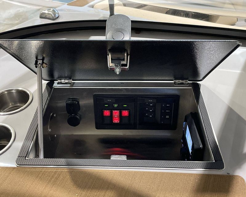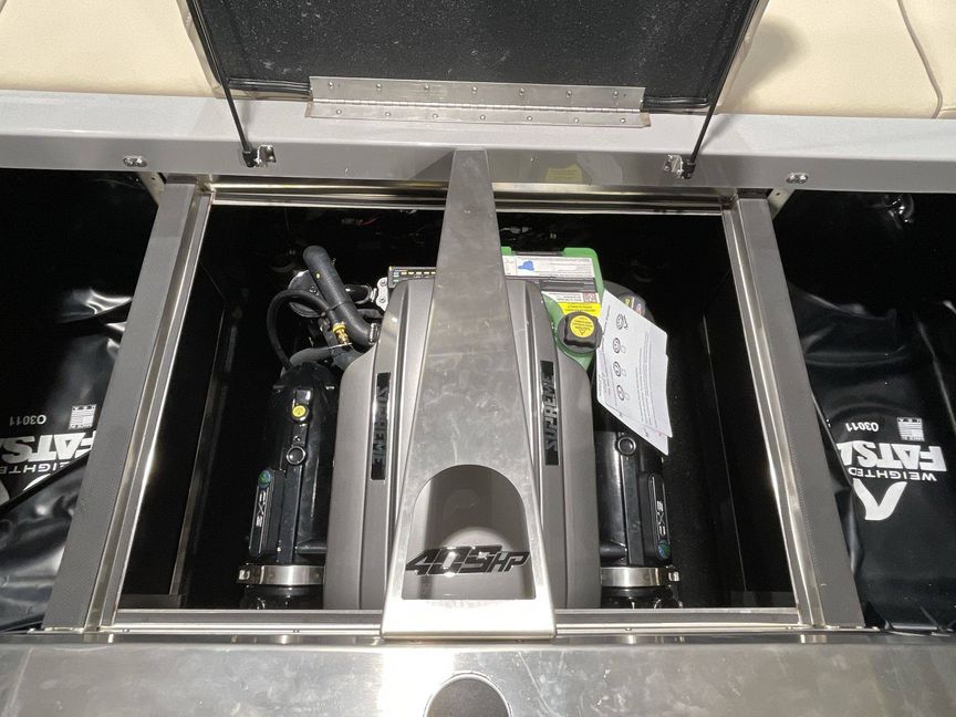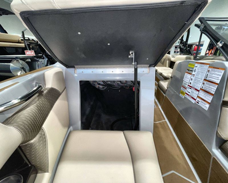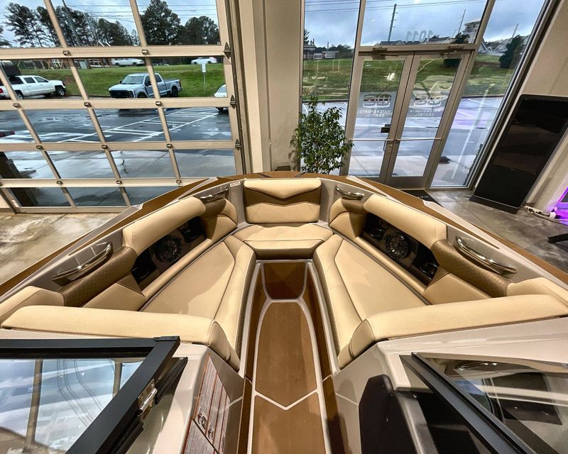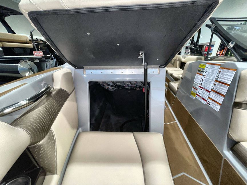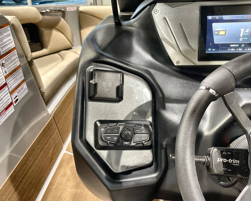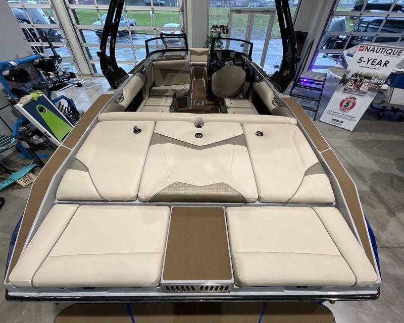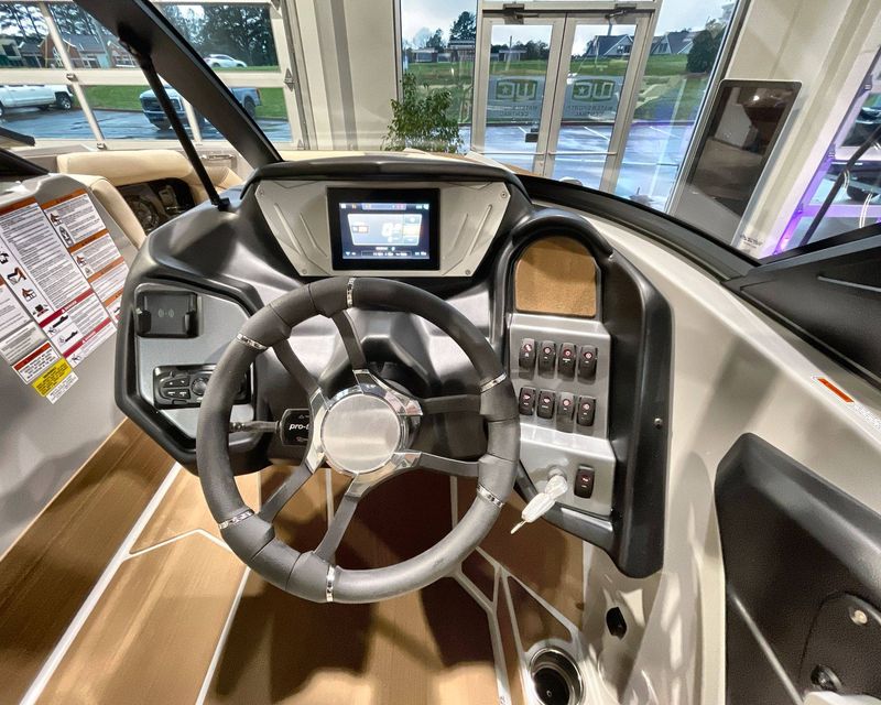 Emphasizing comfort, the boat touts Tan Upholstery Main and Base with a Mocha Upholstery Accent, creating a vibe of elegance.