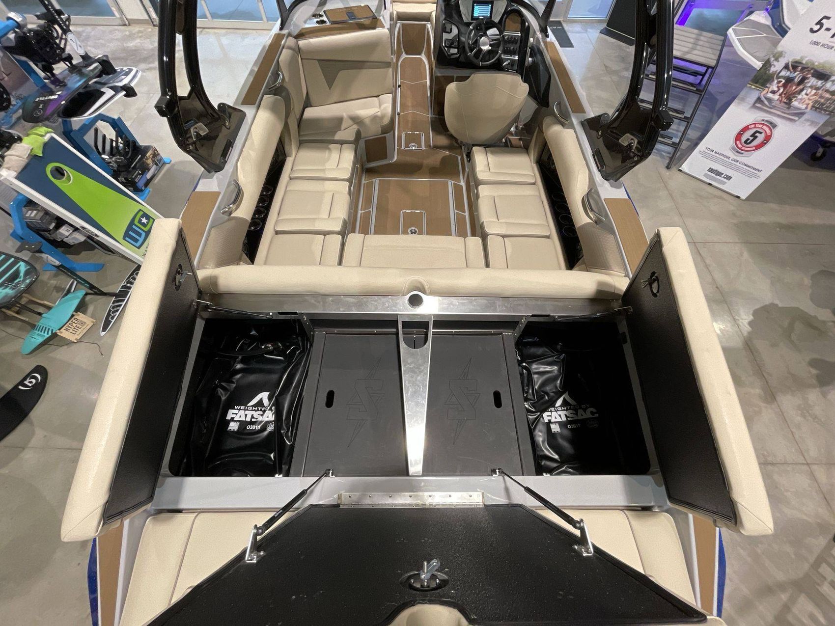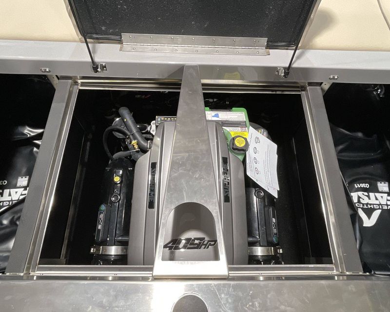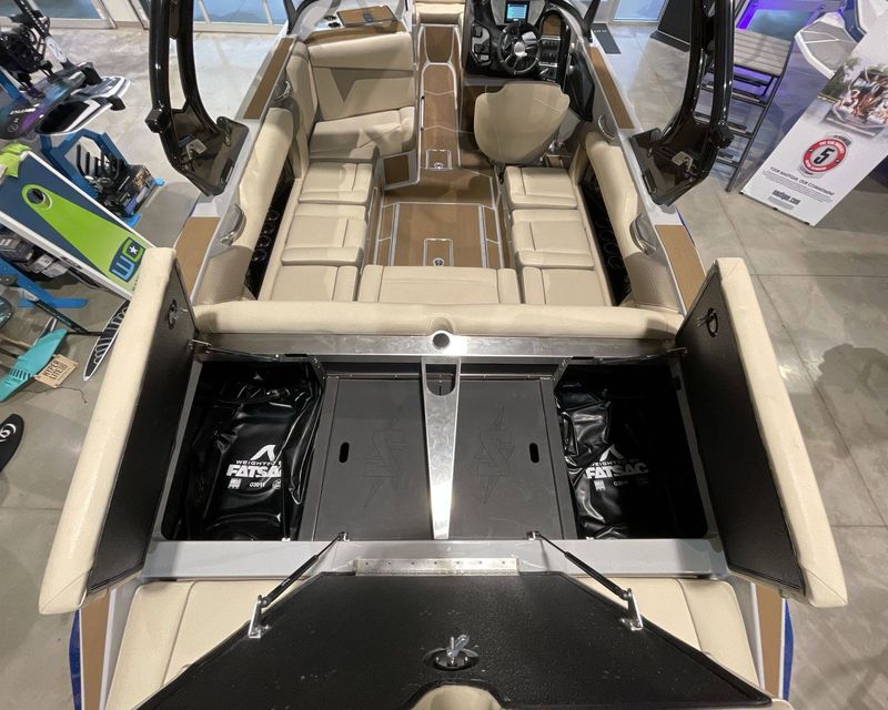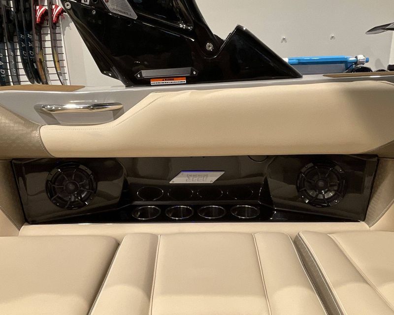 This top-tier boat features a Bow Ballast Bag System, Supreme Plug-N-Play Rear Surf Ballast (With 2 Bags in boat), and a Supreme Quick Surf System, offering ample options for wake sports enthusiasts.