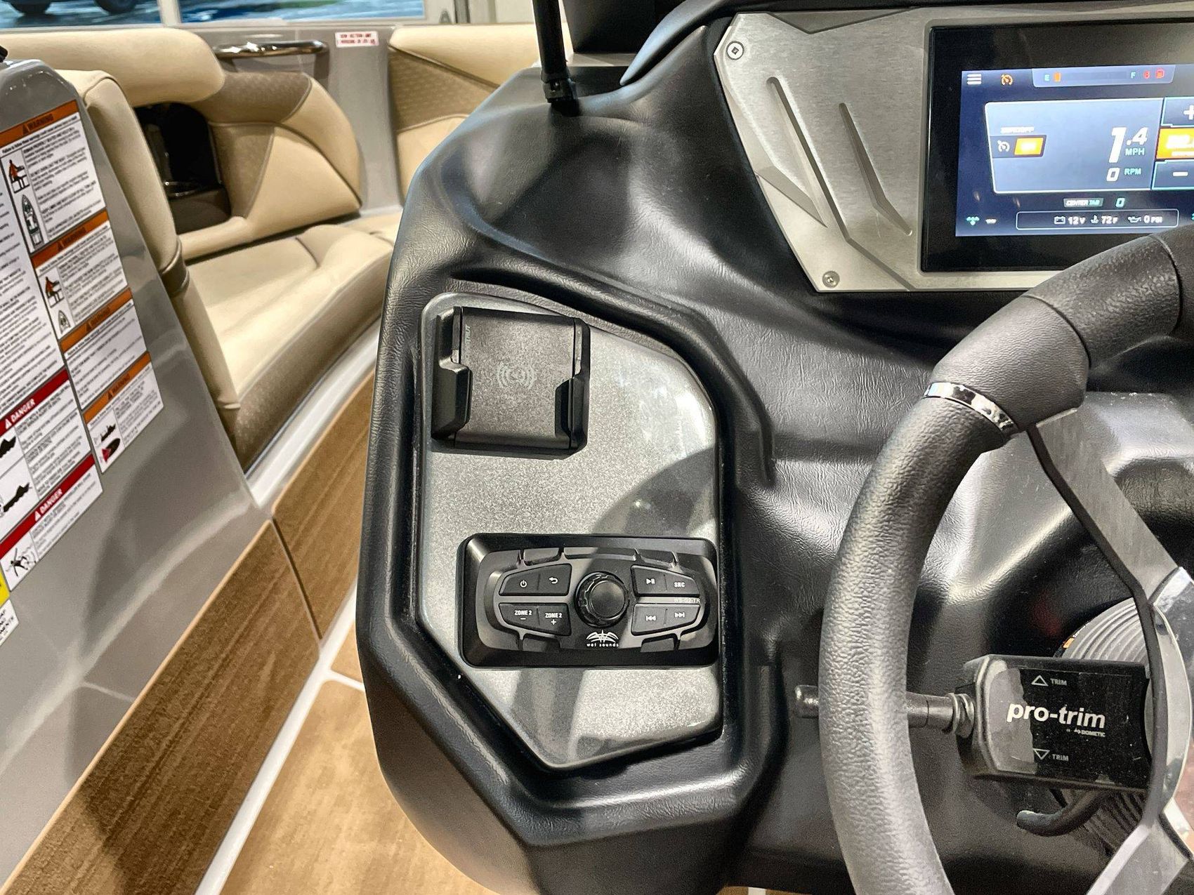 Equipped with a Wet Sounds Back Bone Eco System, including features such as AM/FM, Bluetooth, USB input, and powerful 6.5” black speakers amplified with a 4-channel OEM Amplifier.
