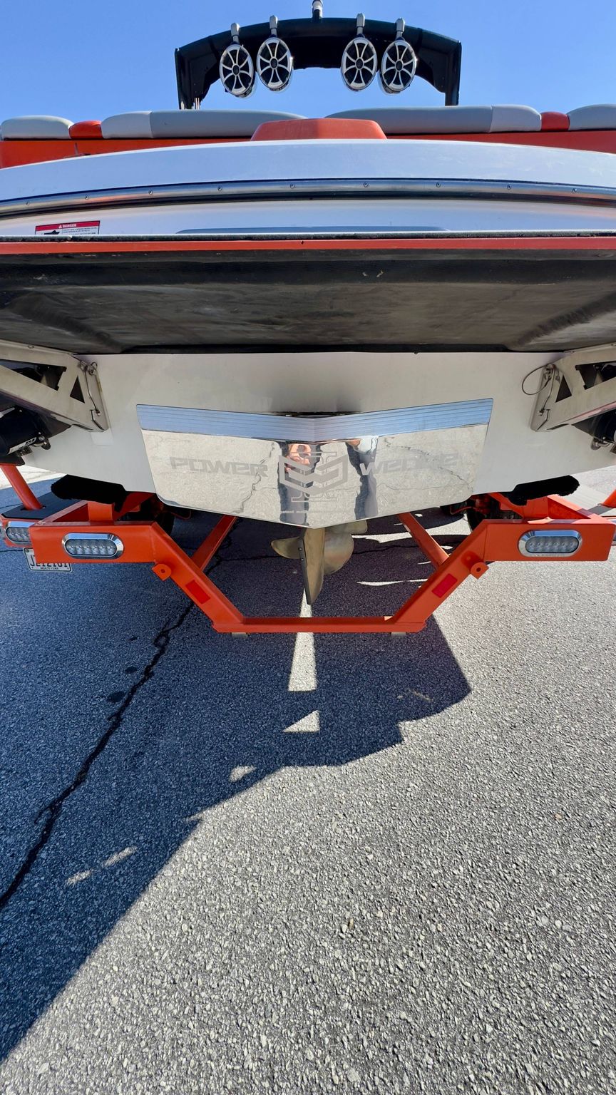 • Power Wedge: This feature adjusts the boat's wake to suit every boater's preference. It also increases the water displacement capacity, resulting in bigger, cleaner wakes. Ideal for wake boarding or surfing.