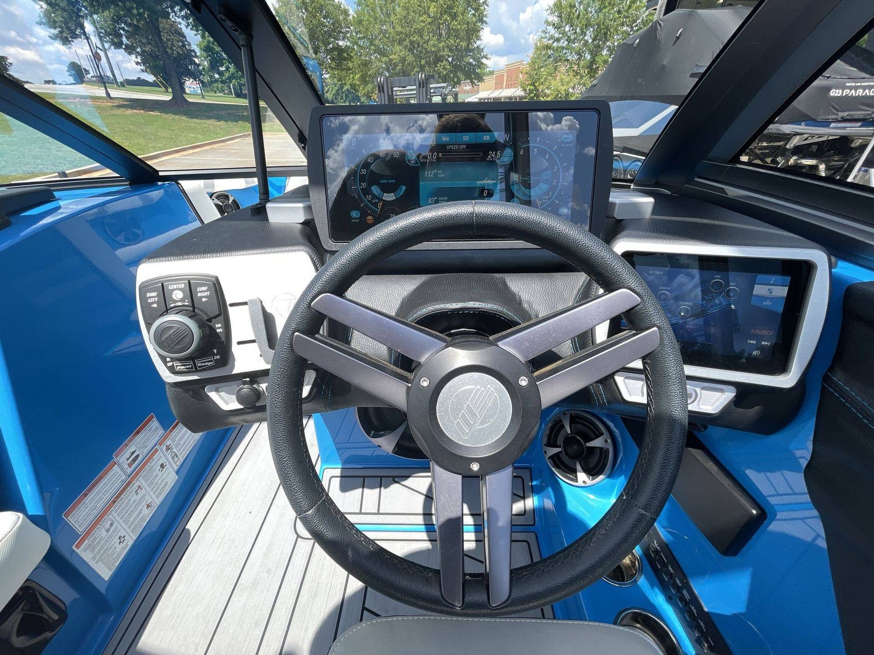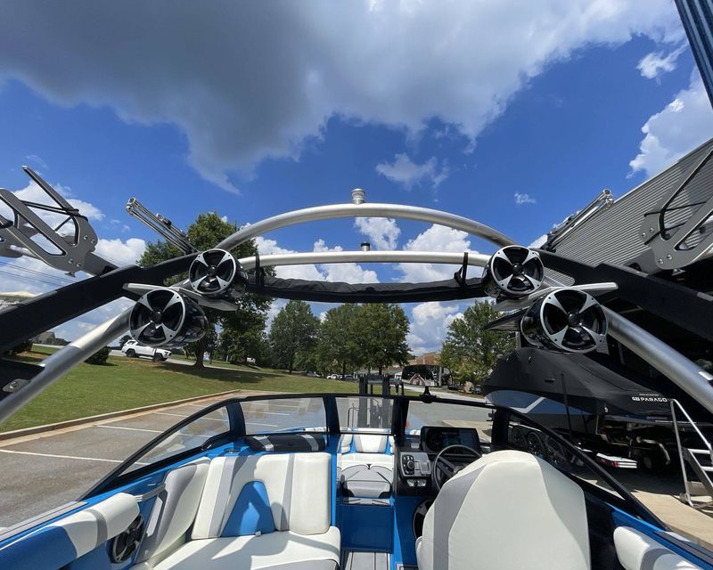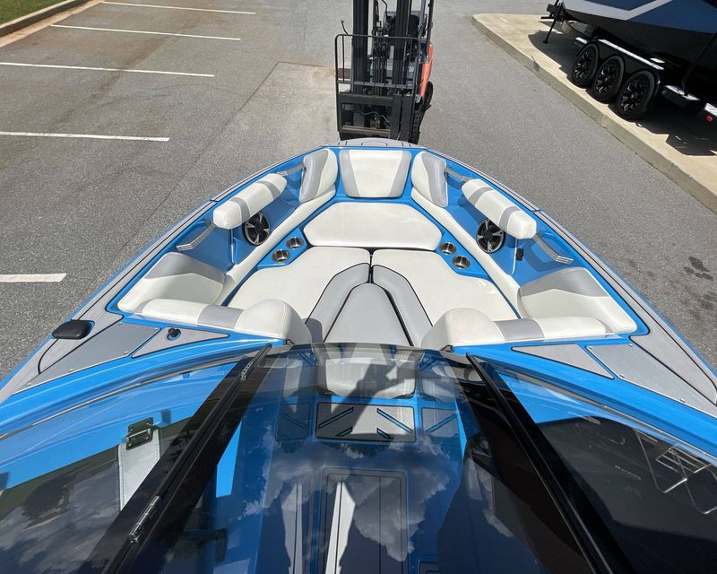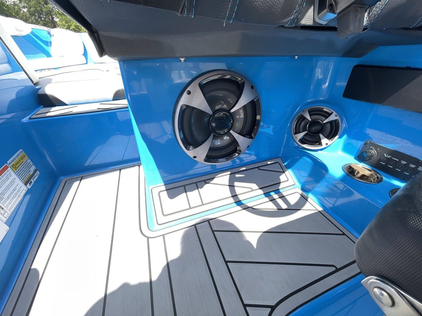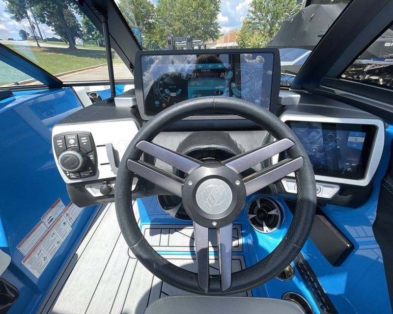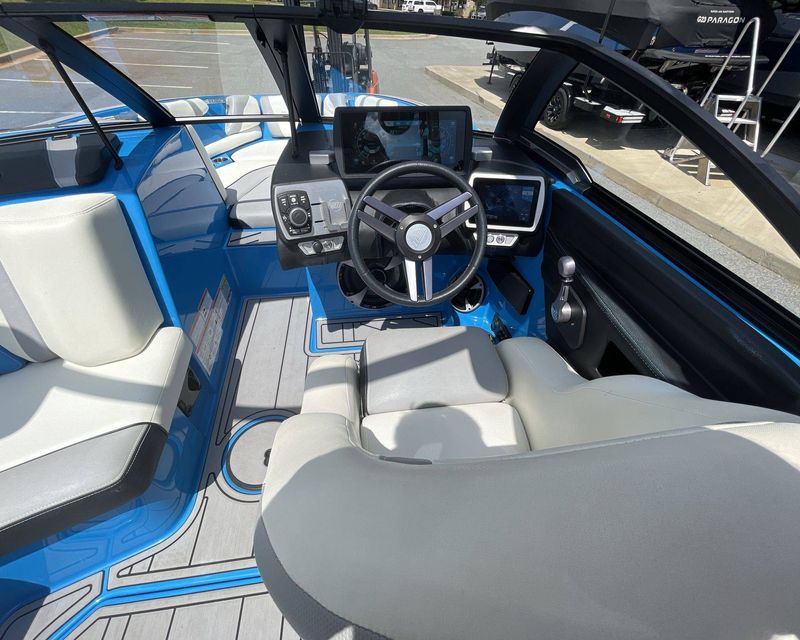 Powered by a robust engine, the boat is easy to maneuver, and its high-speed capabilities excel in the realm of water sports. It further features an impressive audio system, advanced navigation tools, and top-tier safety features for an exceptional boating experience.