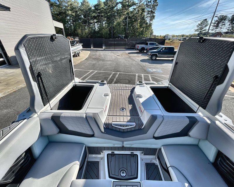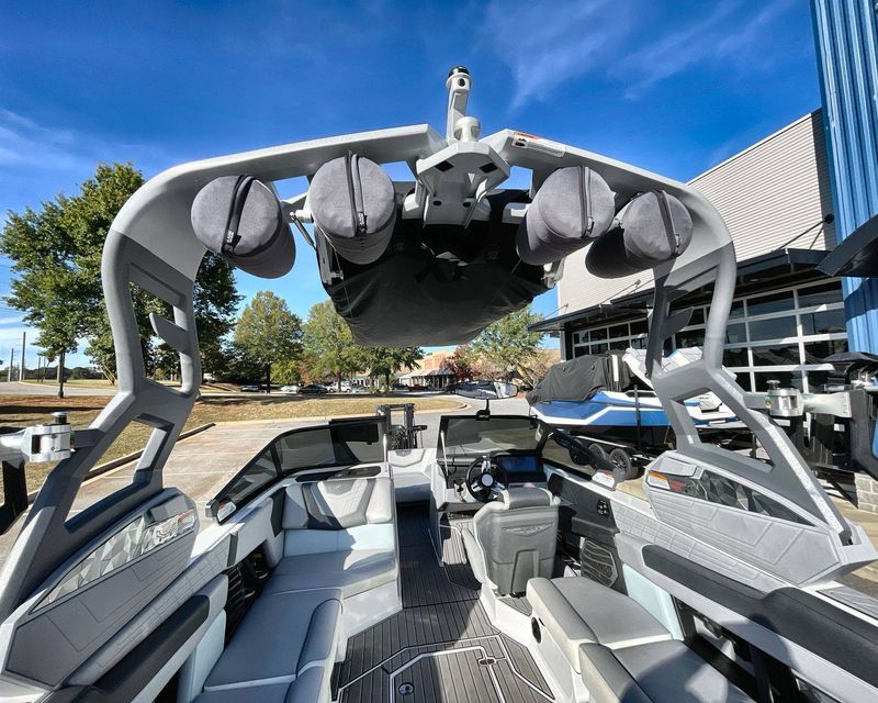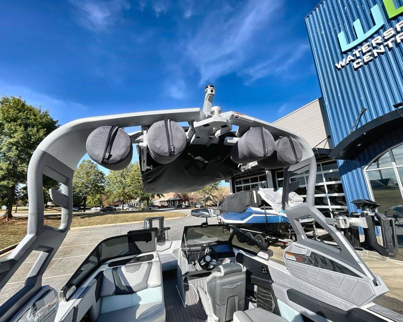 It also comes with premium tower accessories, including a Bimini for the Actuated Tower, offering sun protection, surf pockets, and an Extended Sun Shade at both front and rear areas for maximum comfort.